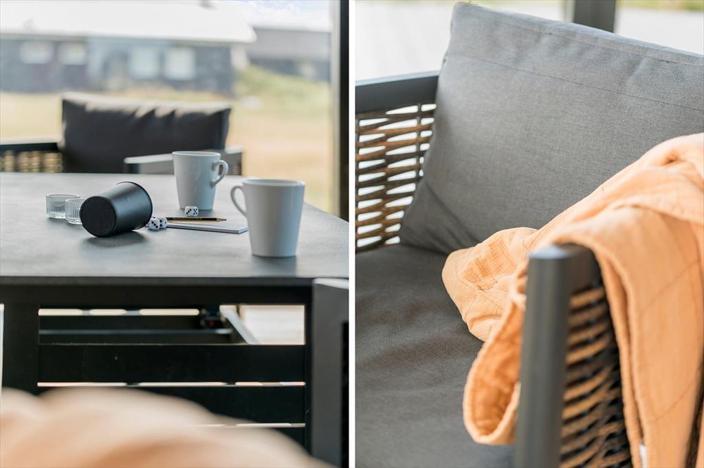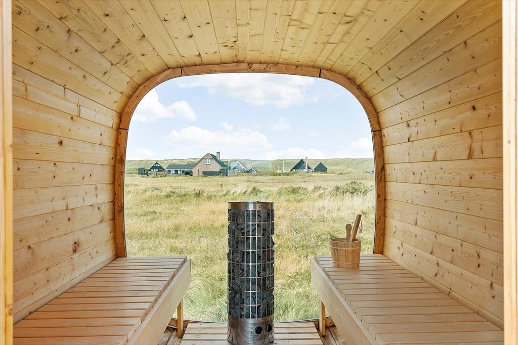 Lige så indbydende som huset er indvendigt, lige så meget får du lyst til at være udenfor. Den store terrasse, som delvist er overdækket, giver mulighed for at nyde både solrige eftermiddage og lange sommeraftener under åben himmel – eller under tag, hvis det danske vejr driller lidt. Spaen udenfor gør det muligt at sidde under stjernerne med damp omkring skuldrene, mens den udendørs sauna og bruser inviterer til ægte wellness-stemning i det fri. En frisk dukkert efterfulgt af en tur i saunaen – det er ferie på højt niveau. Her er plads til, at både børn, voksne og hunde kan nyde udelivet, hvad enten det er med boldspil på græsset, en god bog i liggestolen eller fælles måltider omkring havebordet. Den fredelige stemning i området omkring Alkajavej giver ekstra plus på afslapningskontoen – og i den lune aftensol føles verden pludselig langt væk.