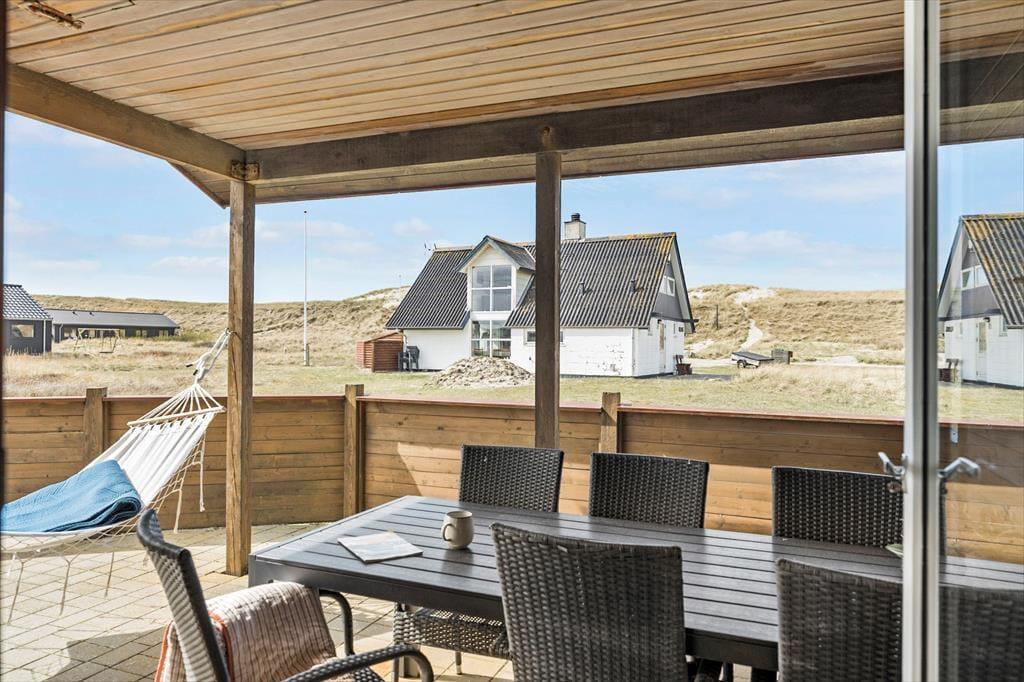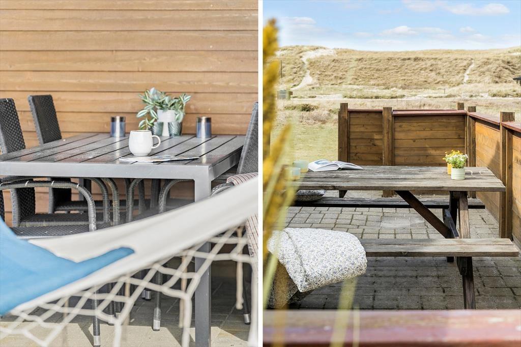 Udelivet omkring huset får optimale betingelser på de to terrasser, hvoraf den ene er placeret mod syd og har læhegn, der giver både privatliv og ly for vinden. Her kan du slå dig ned med en kop kaffe, nyde frokosten under åben himmel eller læse en god bog i en liggestol. Klitgrunden giver fornemmelsen af at være ét med naturen, og med blot 100 meter til Vrist Strand, er det oplagt at lade hver dag begynde eller ende med en tur til vandet – måske barfodet gennem klitterne. Det er også muligt at finde lækroge eller solrige pladser dagen lang, så du kan følge solen fra morgen til aften i dine helt egne, fredelige omgivelser.