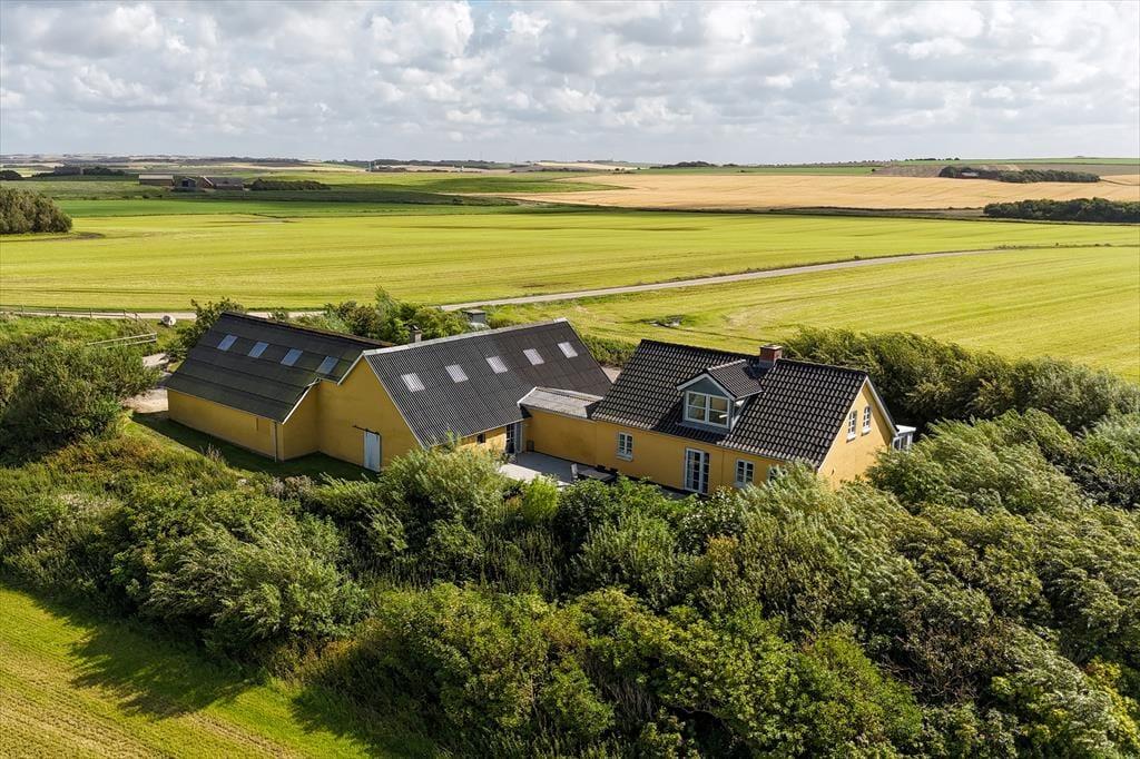 På Klostervej 39 i Vrist finder du sommerhuset ”Simonsbjerg” – en sjælden perle for dig, der drømmer om en ferie med masser af plads, fred og smuk natur lige uden for døren. Her er det ikke klitterne, men det åbne landskab og den betagende udsigt til vandet, der sætter stemningen. Den 2.500 m² store grund skaber en privat og afslappet ramme om ferien, og med både aktivitetsrum, brændeovn og tilladelse til hund er huset velegnet til både familier og vennegrupper, der ønsker at nyde Vesterhavet og Vrist i deres helt eget tempo.