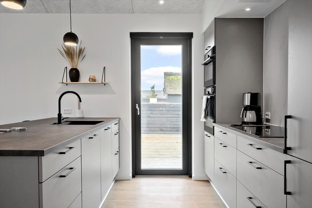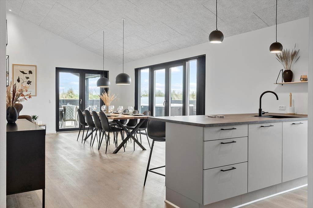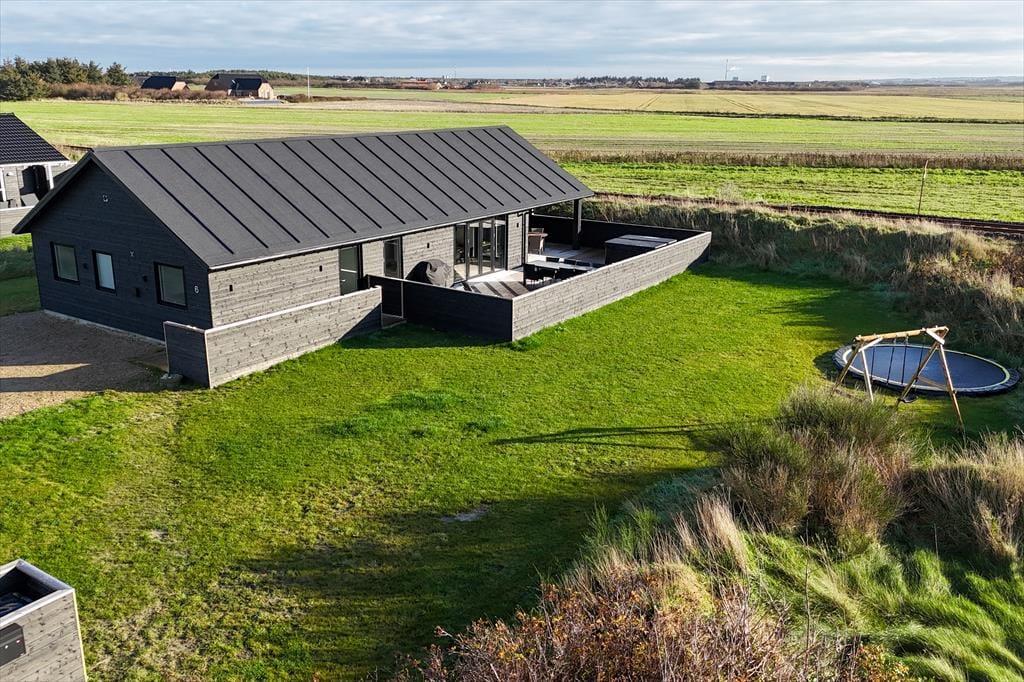 Moderne sommerhus med spabad og trampolin