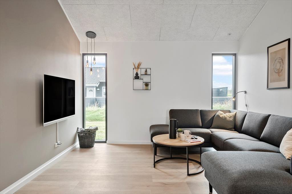 Sommerhus i Vrist, Vestjylland, med plads til 8 voksne og 2 husdyr. Der er en hyggelig indretning, og du finder desuden vaskemaskine, opvaskemaskine og tørretumbler i boligen.