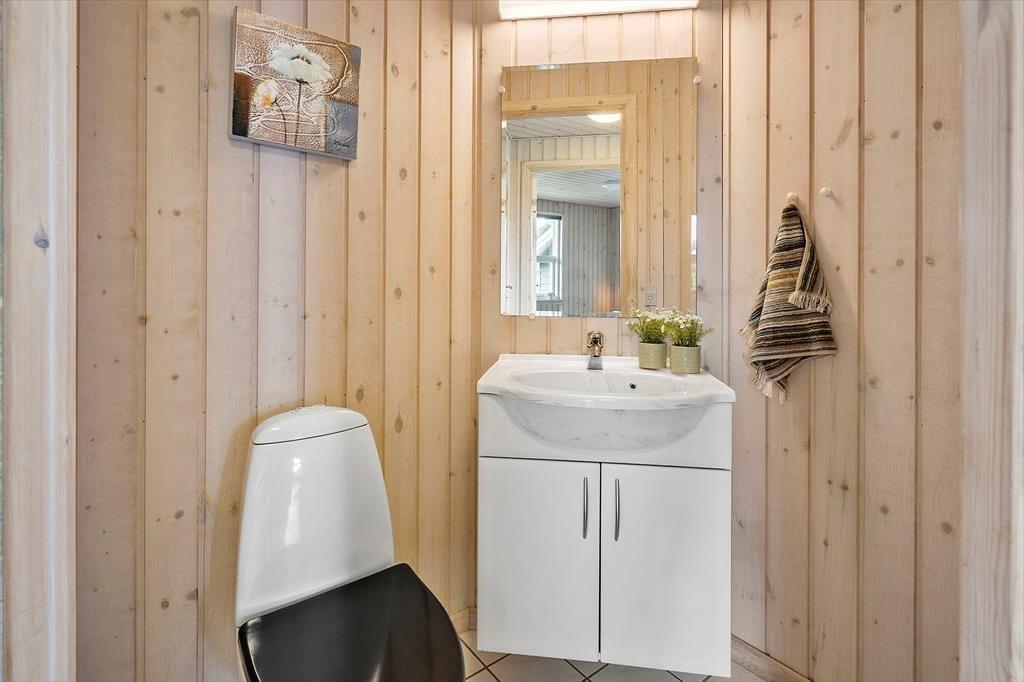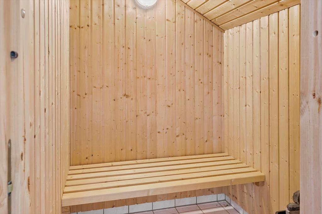 Det lyse og velindrettede sommerhus inviterer dig indenfor til en afslappet ferieatmosfære. Huset er indrettet i en klassisk og hyggelig stil, hvor brændeovnen i stuen sørger for varme og stemning på kølige dage. Opholdsrummet samler stue og køkken i ét, så hele familien kan være sammen, mens der laves mad, spilles spil eller hygges i sofaen. Når du vil forkæle dig selv lidt ekstra, kan du tage en tur i husets indendørs spa eller nyde roen i saunaen – to faciliteter, der giver feriedagene en ekstra luksuspræget kant. En hyggelig hems fungerer som et ekstra frirum – måske til afslapning med en god bog eller til børn, der gerne vil have deres egen lille hule. Her får du et sommerhus, der skaber gode rammer for både nærvær, ro og feriehygge.