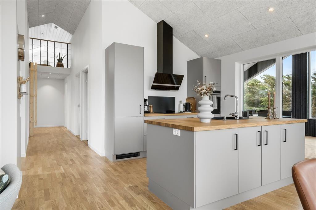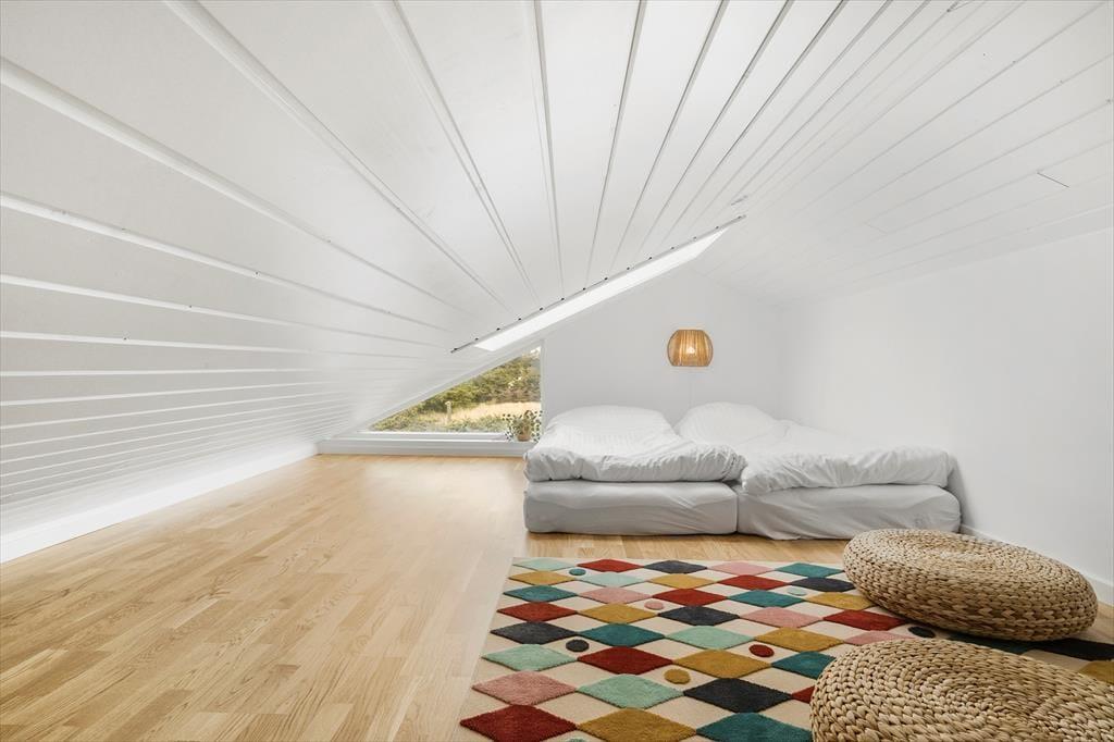 Når du træder ind i sommerhuset på Gloryvej 14 A, møder du et lyst og velindrettet hjem, hvor alt er placeret med omtanke. Indretningen er moderne og stilfuld, uden at gå på kompromis med hyggen – og der er masser af plads til både nærvær og ro. Køkken og stue ligger i åben forbindelse og udgør det naturlige samlingspunkt, hvor ferien leves med god mad, brætspil og afslappende stunder i sofaen. Uanset årstid er det skønt at kunne tænde op i brændeovnen og mærke varmen brede sig i rummet. Sommerhuset rummer også en hems, der hurtigt bliver børnenes favoritsted – en hyggelig lille oase til leg og læsning. Alt i alt får du her en feriebolig, hvor det er nemt at lande og føle sig hjemme.