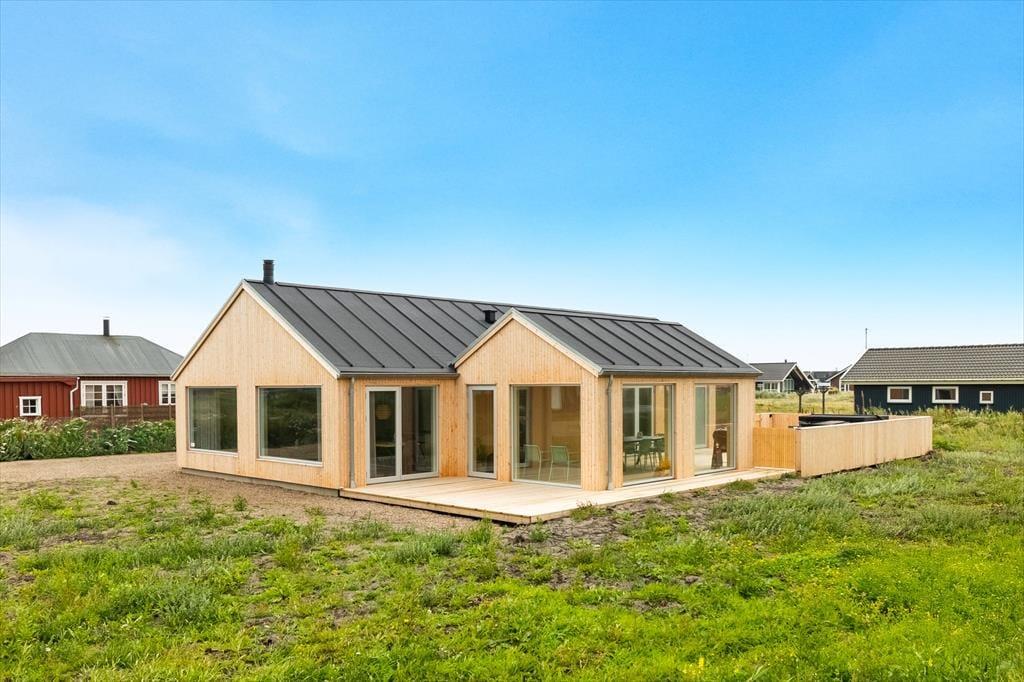 Fra 3. maj 2025 kan du holde ferie i dette nyopførte sommerhus på Charlottevej 11 A i Vejlby Klit. Med sin placering i 2. klitrække er du tæt på både det betagende klitlandskab og det brusende Vesterhav – en perfekt base for afslappende og naturrige feriedage.