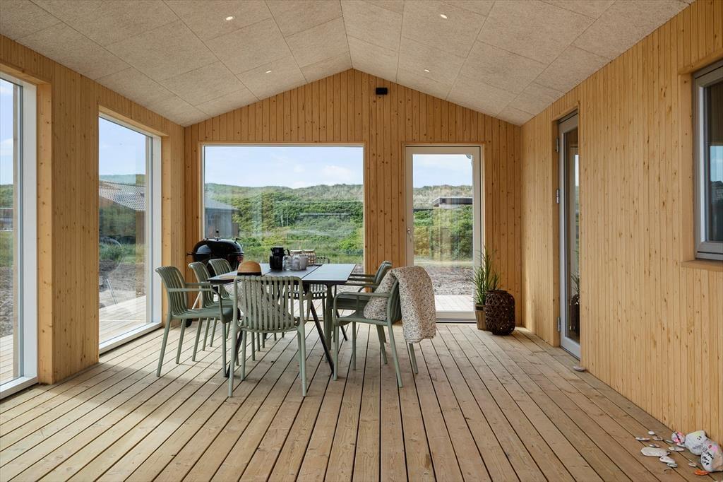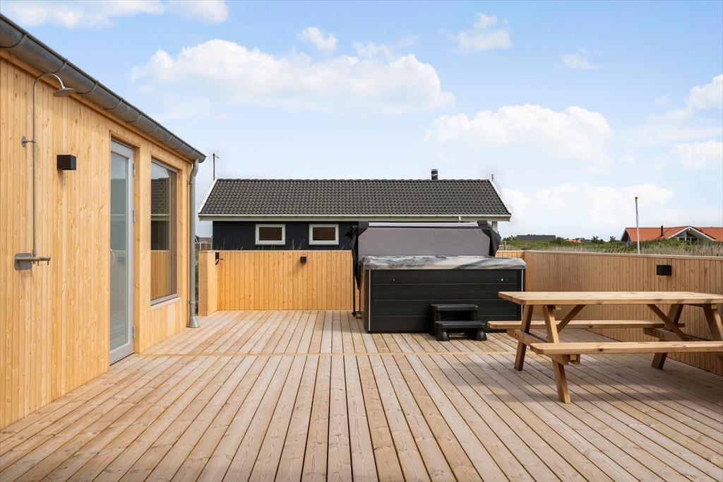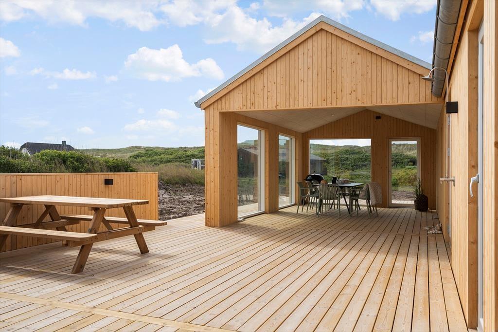 Udenfor byder sommerhuset på en fantastisk terrasse, der er ideel til at nyde solen og den friske havluft. Fra terrassen kan du høre bølgerne bruse og mærke havets nærhed, mens du nyder en kop kaffe eller et lækkert måltid under åben himmel. Den velholdte grund giver plads til leg og aktiviteter, mens havets sus skaber en beroligende baggrund. Med sin placering tæt på stranden og klitterne har du mulighed for at bruge masser af tid udendørs – uanset om du er til gåture i klitterne, strandhygge eller bare afslapning på terrassen.