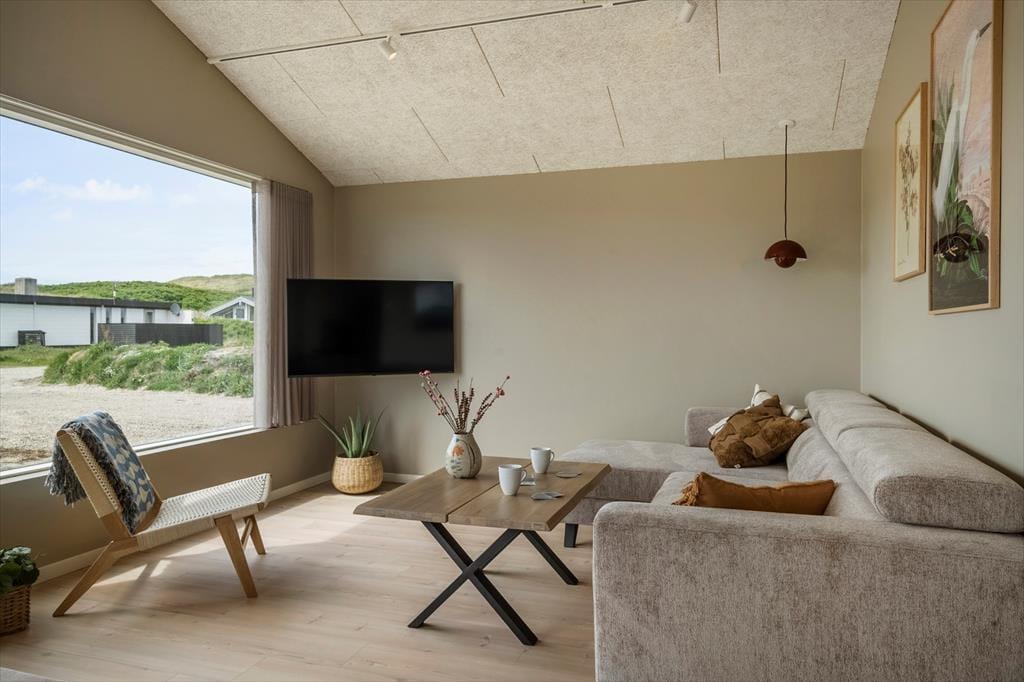 Sommerhusets moderne indretning skaber en lys og indbydende atmosfære, der straks får dig til at føle dig hjemme. Stue og køkken er elegant integreret og danner rammen om hyggelige stunder med familien eller vennerne. Forestil dig at samle hele selskabet til brætspil, madlavning eller en god film foran fjernsynet, mens solen skinner ind gennem de store vinduespartier. Sommerhusets soveværelser er ligeledes velindrettede, og med deres komfortable senge sikrer de en god nats søvn efter en dag fyldt med oplevelser. Badeværelset har et stilrent design og indbyder til afslapning – måske efter en tur langs stranden eller i de nærliggende klitter.