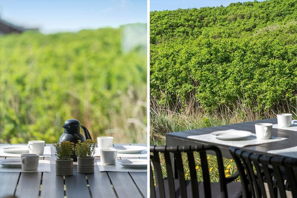 Sommerhusets beliggenhed i første klitrække gør det til en sand perle for dig, der elsker at være i naturen. Fra terrassen er der en lille sti, der fører dig direkte over klitterne og ned til stranden – så du kan begynde morgenen med en gåtur i vandkanten eller slutte dagen med solnedgang over Vesterhavet. Når solen skinner, og vinden er mild, er terrassen det perfekte sted at læne sig tilbage med en bog, et glas vin eller måske et godt måltid under åben himmel, samtidig med at du har havets brusen i baggrunden – som en konstant påmindelse om, at du er på ferie i et af Danmarks smukkeste kystområder.