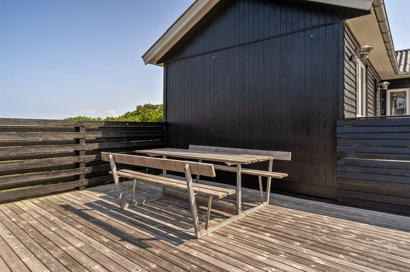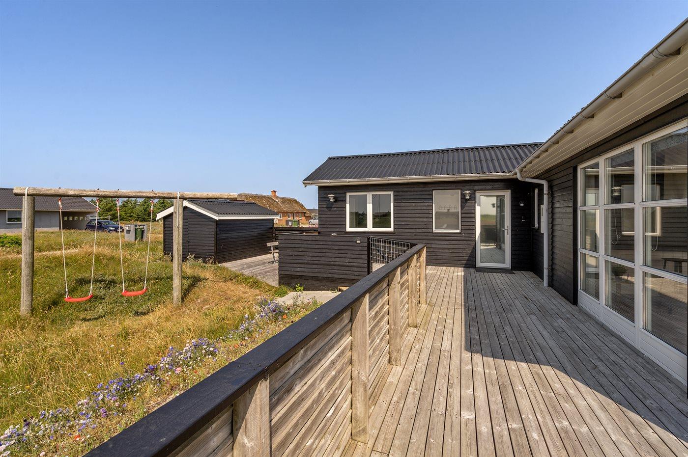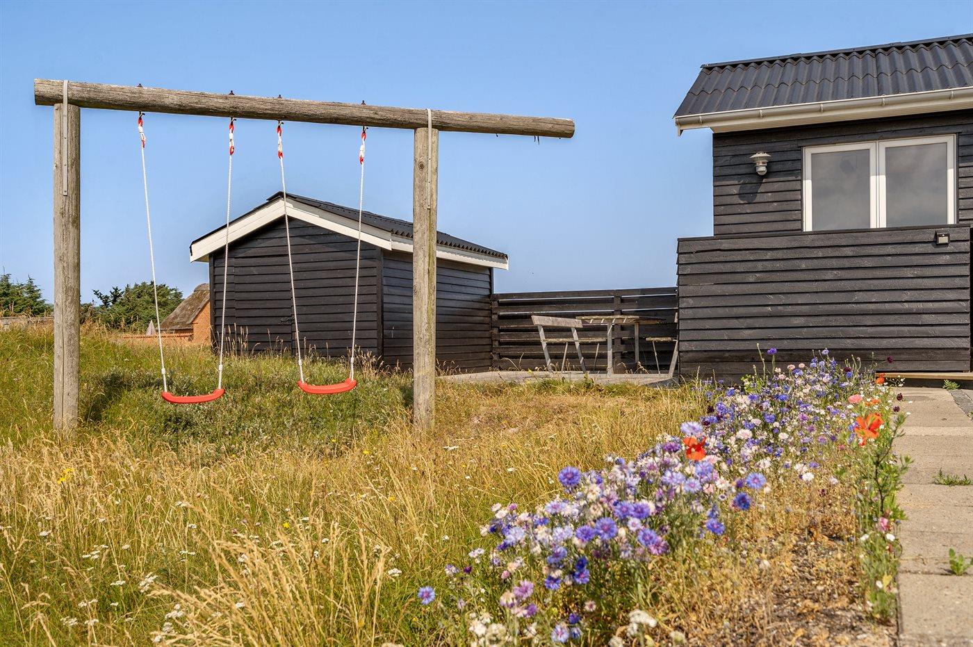Ferieboligen er beliggende på en 2570 m² stor naturgrund. Der er 300 m til havet. Nærmeste forretning er beliggende i en afstand af 1000 m. Til ferieboligen hører 36 m² terrasseareal. Der er redskabsrum. Gynge. Parkering ved ferieboligen.