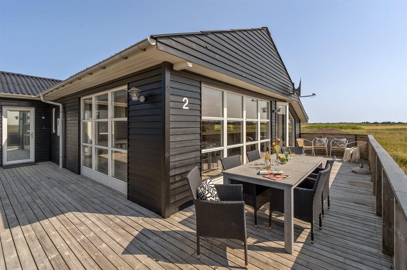 Charmerende sommerhus tæt på sandstrand med spa og stor naturgrund.