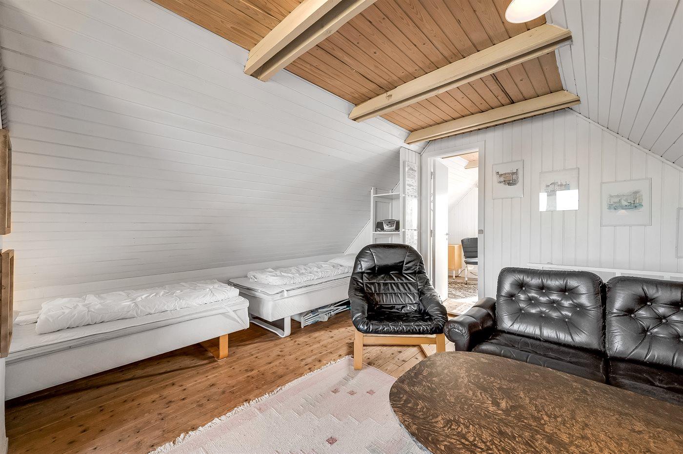 Der er i alt 3 soveværelser. Sovepladserne fordeler sig på: 4 sovepladser i dobbeltsenge. 2 sovepladser i køjeseng. Derudover er der 1 stk. barneseng.