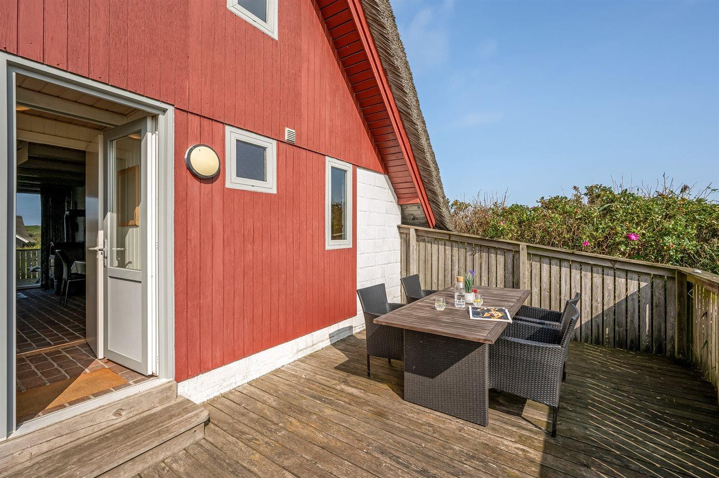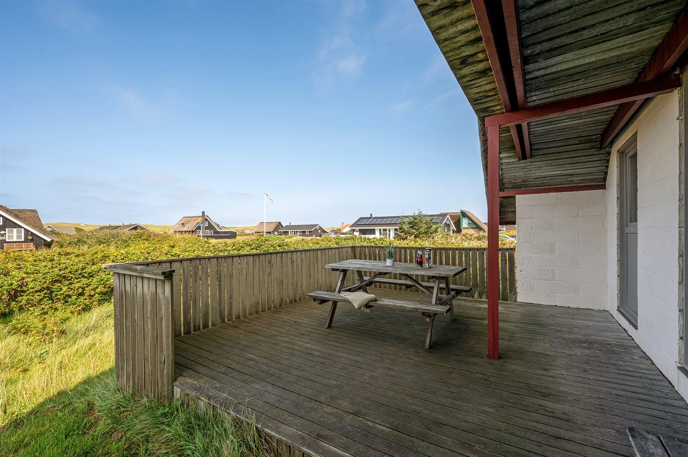Ferieboligen er beliggende på en 1200 m² stor naturgrund. Der er 200 m til havet. Nærmeste forretning er beliggende i en afstand af 1000 m. Til ferieboligen hører 15 m² terrasseareal. Desuden er der 6 m² overdækket terrasse. Udgang til altan. Der er redskabsrum. Parkering ved ferieboligen.