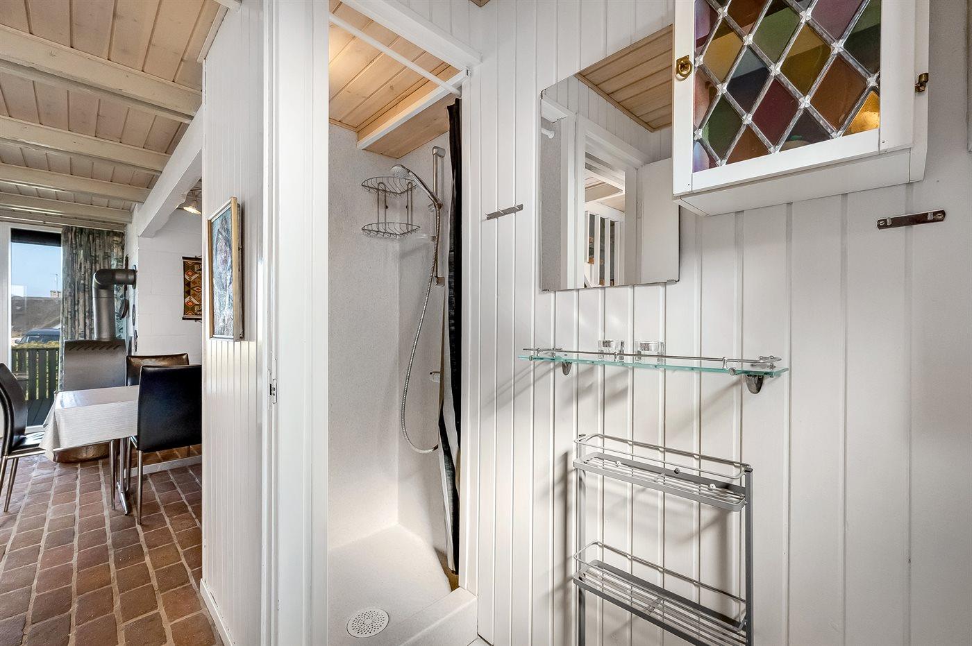 Der er 1 badeværelse med bruseniche og 1 toilet.
