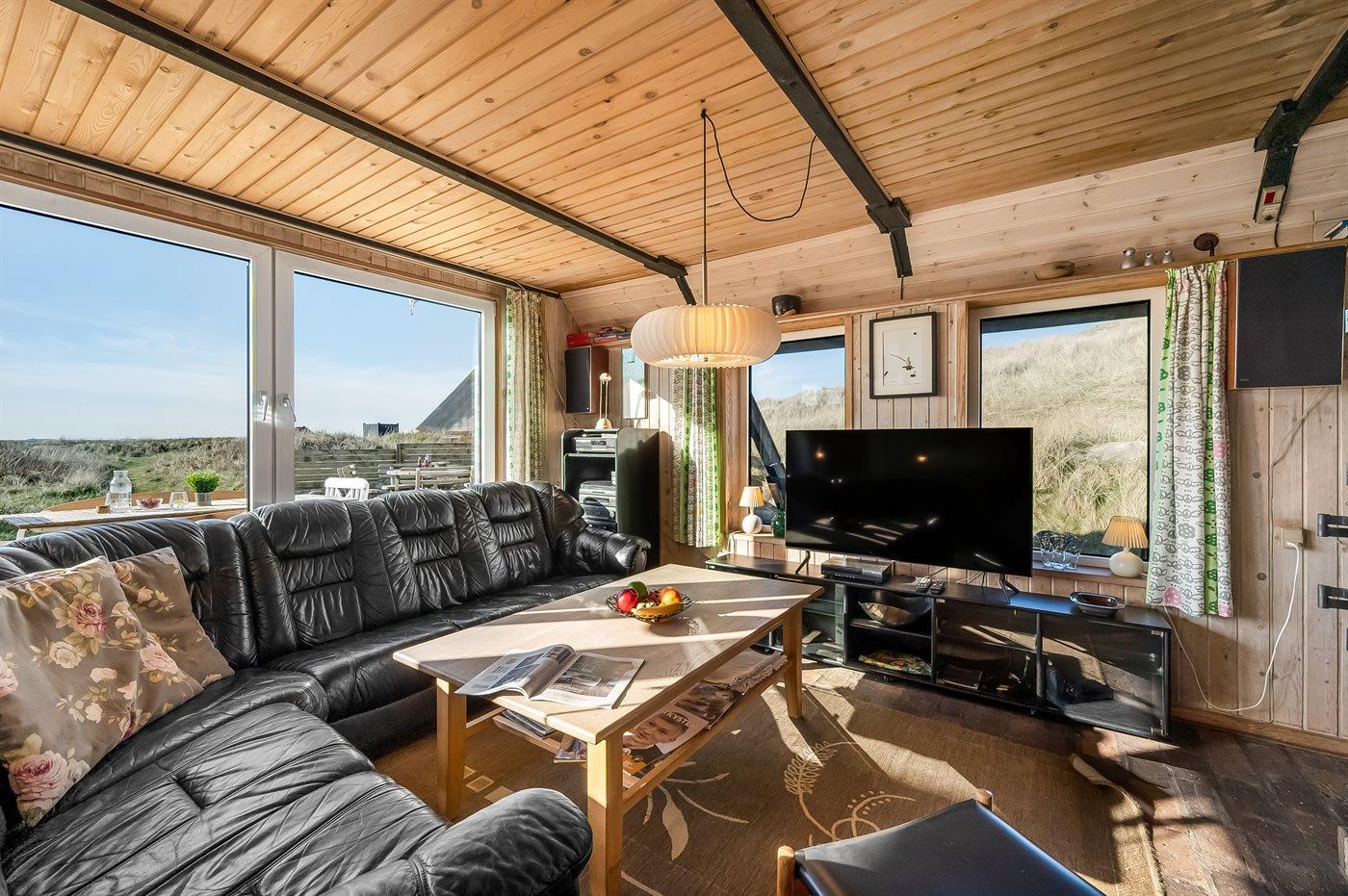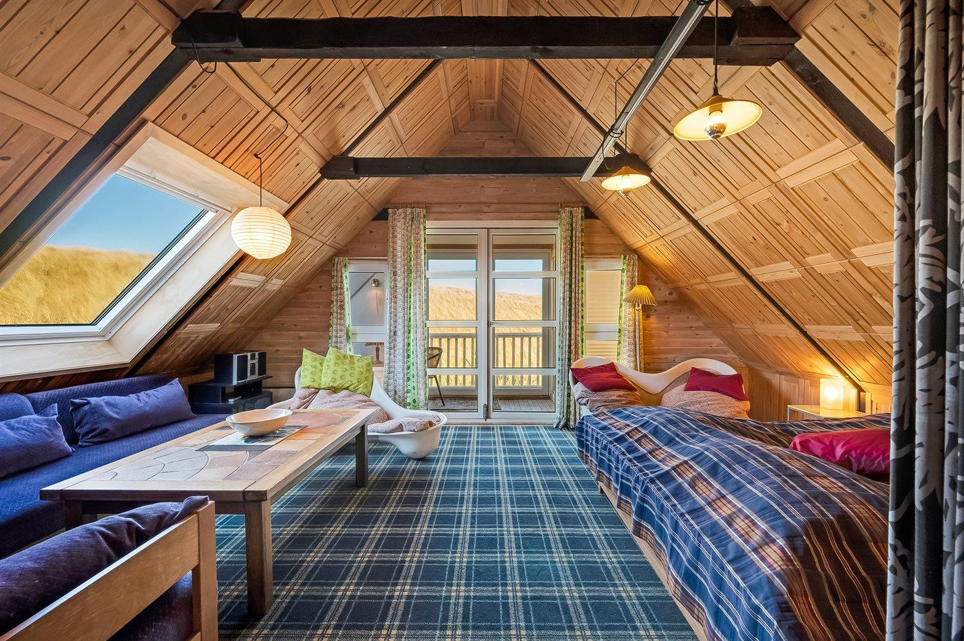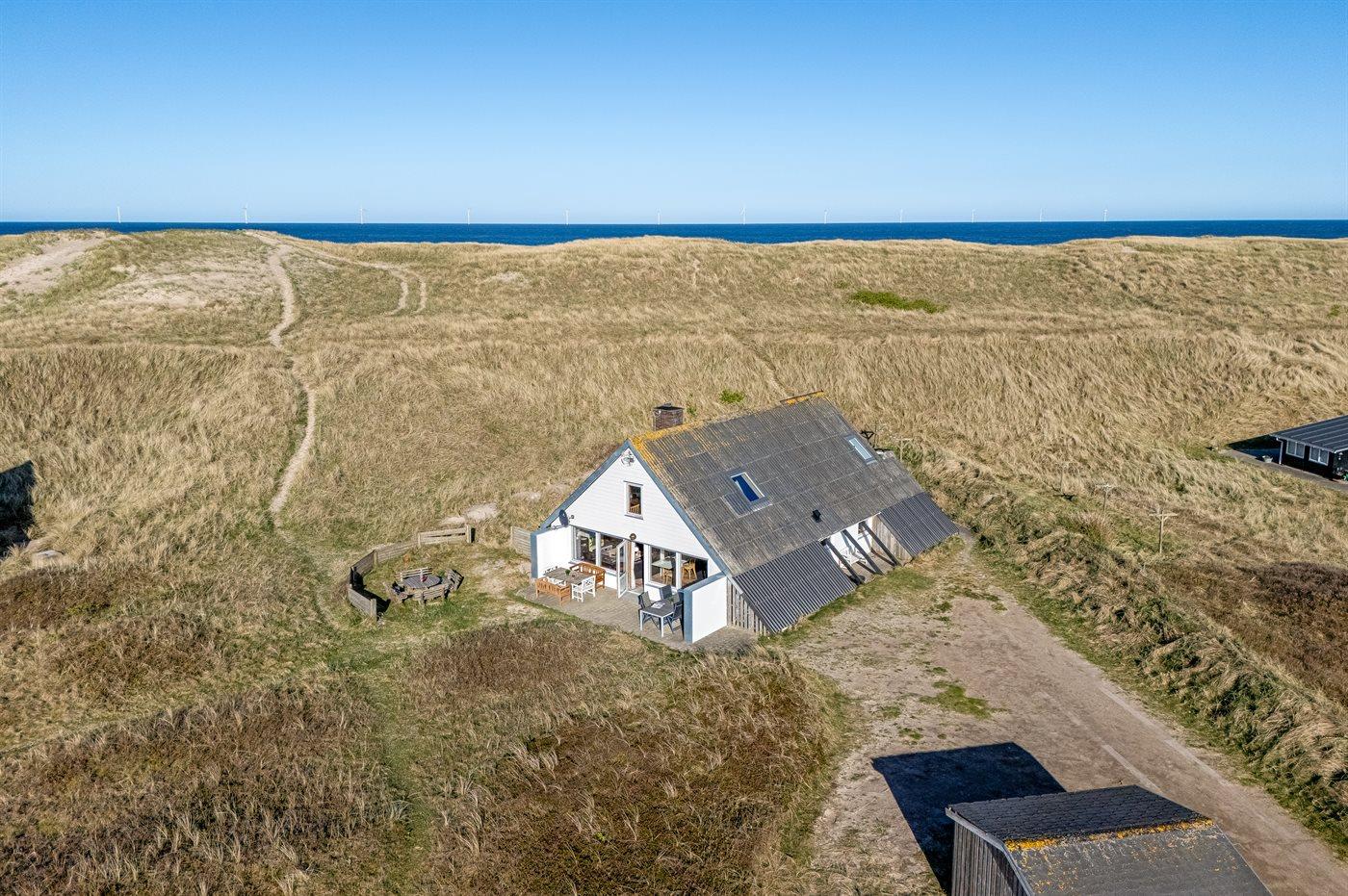 Enestående beliggenhed i forreste række - kun 75 m fra Vesterhavets bølger. Hør havets brusen, så snart du træder ud af døren og oplev en dejlig bilfri, bred strand, der ikke er et fluepapir. Her er dejligt, hvad enten man er 2 eller 10 personer.