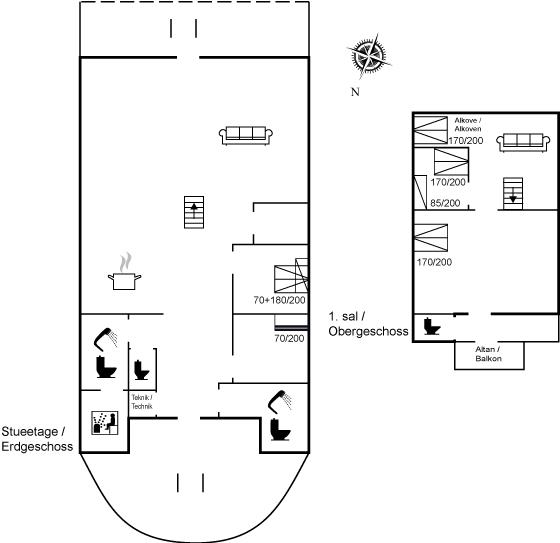 Der er i alt 4 soveværelser. Sovepladserne fordeler sig på: 6 sovepladser i dobbeltsenge. 1 soveplads i enkeltseng. 3 sovepladser i køjesenge. 2 sovepladser i alkove. Derudover er der 1 stk. barneseng.
