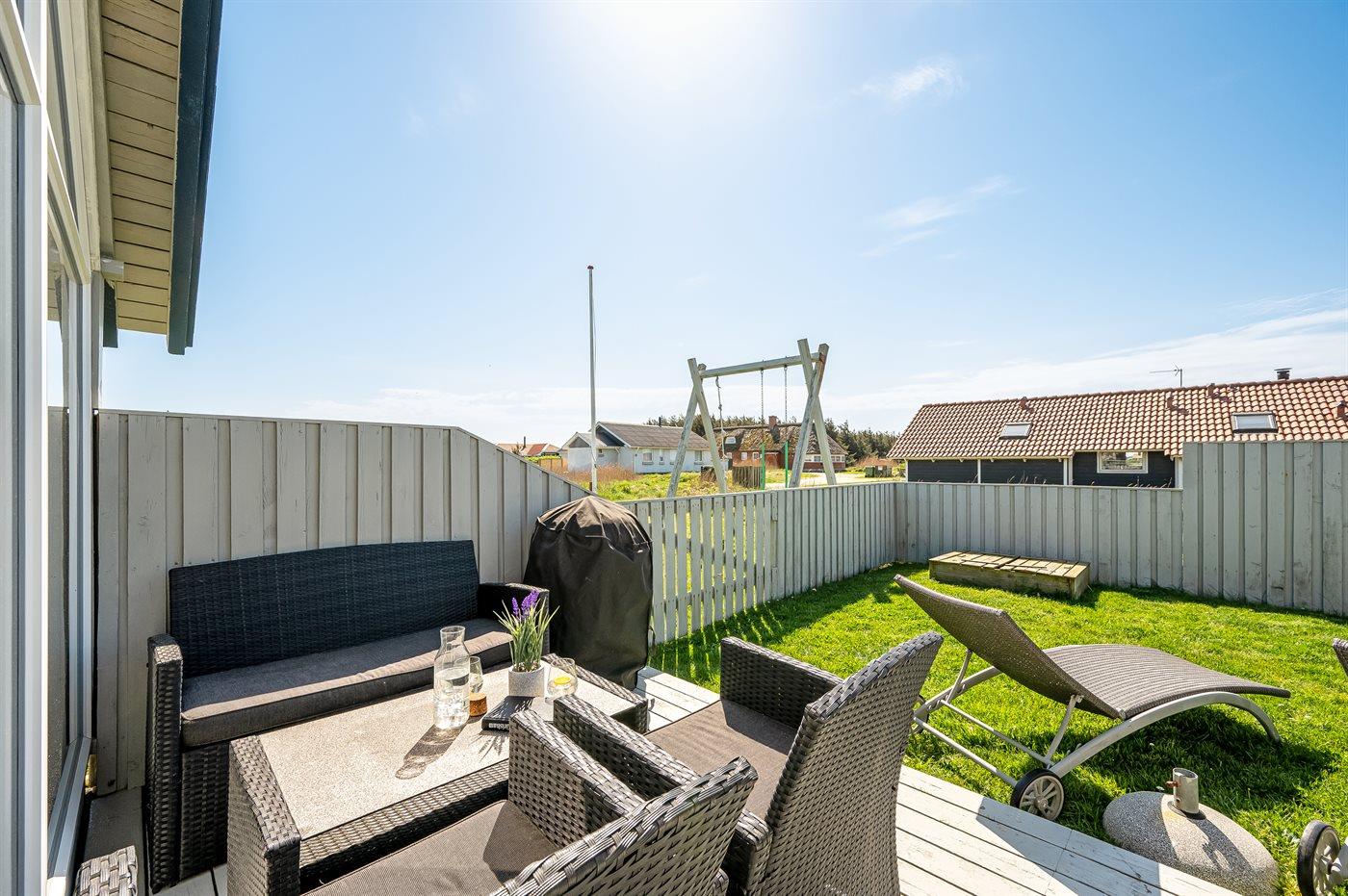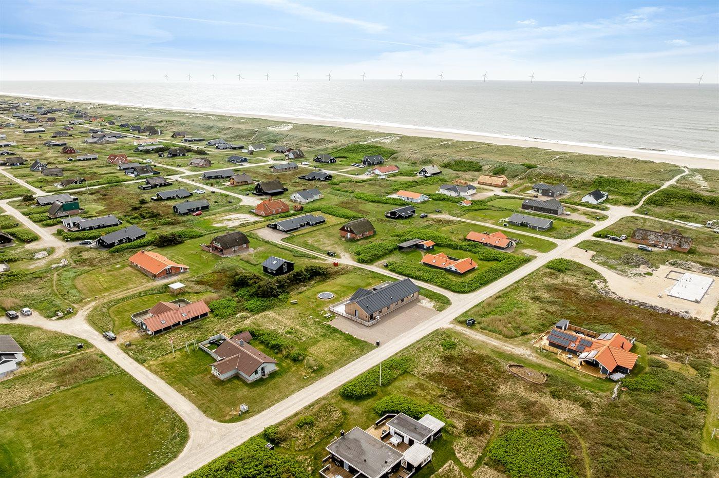 Ferieboligen er beliggende på en 1243 m² stor klitgrund. Der er 250 m til havet. Nærmeste forretning er beliggende i en afstand af 3000 m. Der er redskabsrum. Gynge. Sandkasse. Der ligger en legeplads i en afstand af 500 m. Parkering ved ferieboligen.