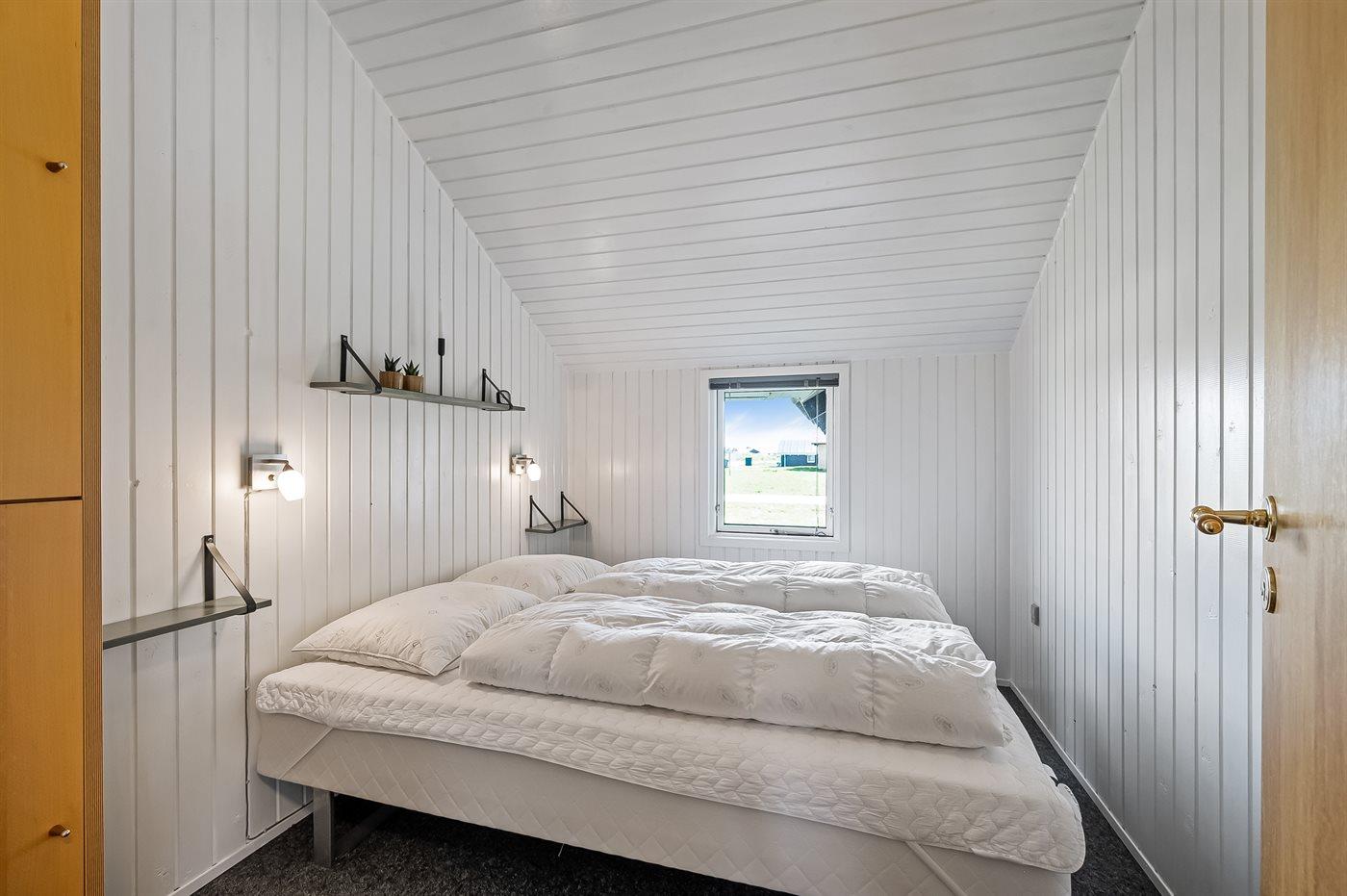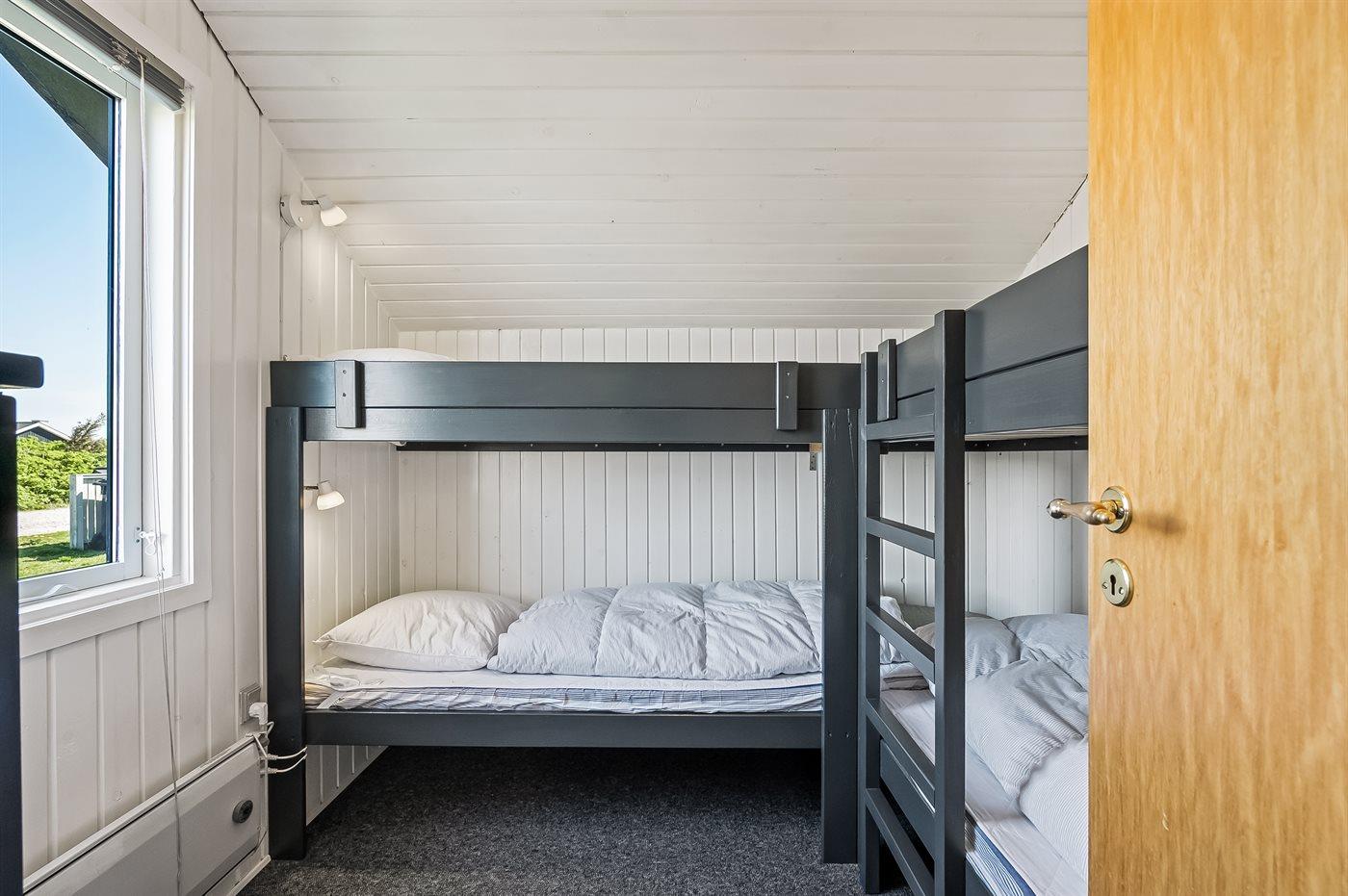 Der er i alt 2 soveværelser. Sovepladserne fordeler sig på: 2 sovepladser i dobbeltseng. 4 sovepladser i køjesenge. 2 sovepladser i sovesofa (enkelt). 2 af disse sovepladser befinder sig i stuen.