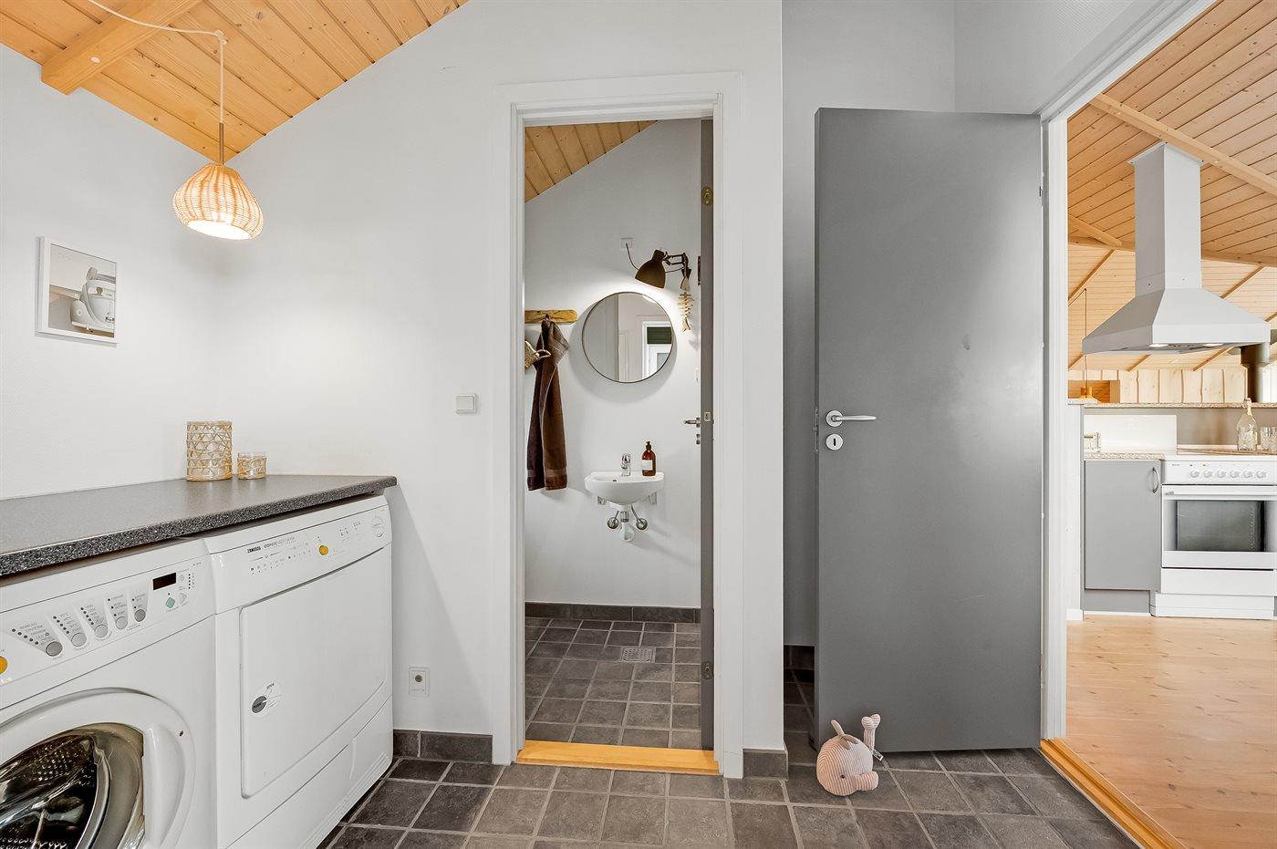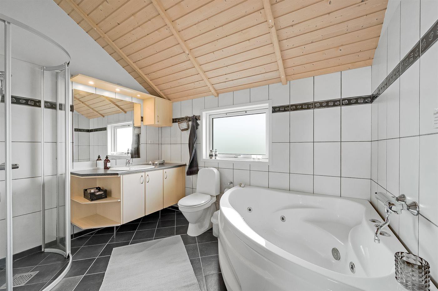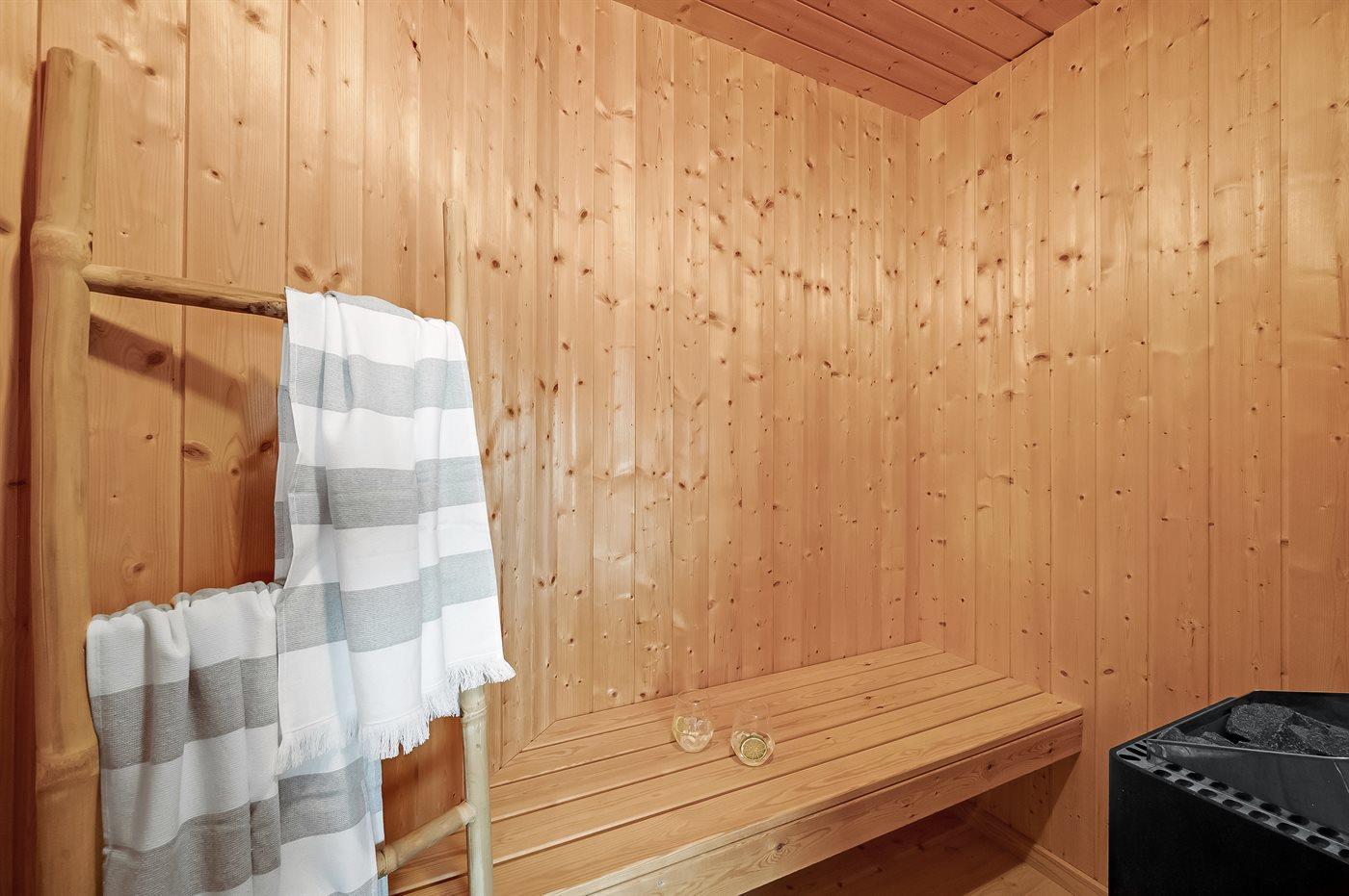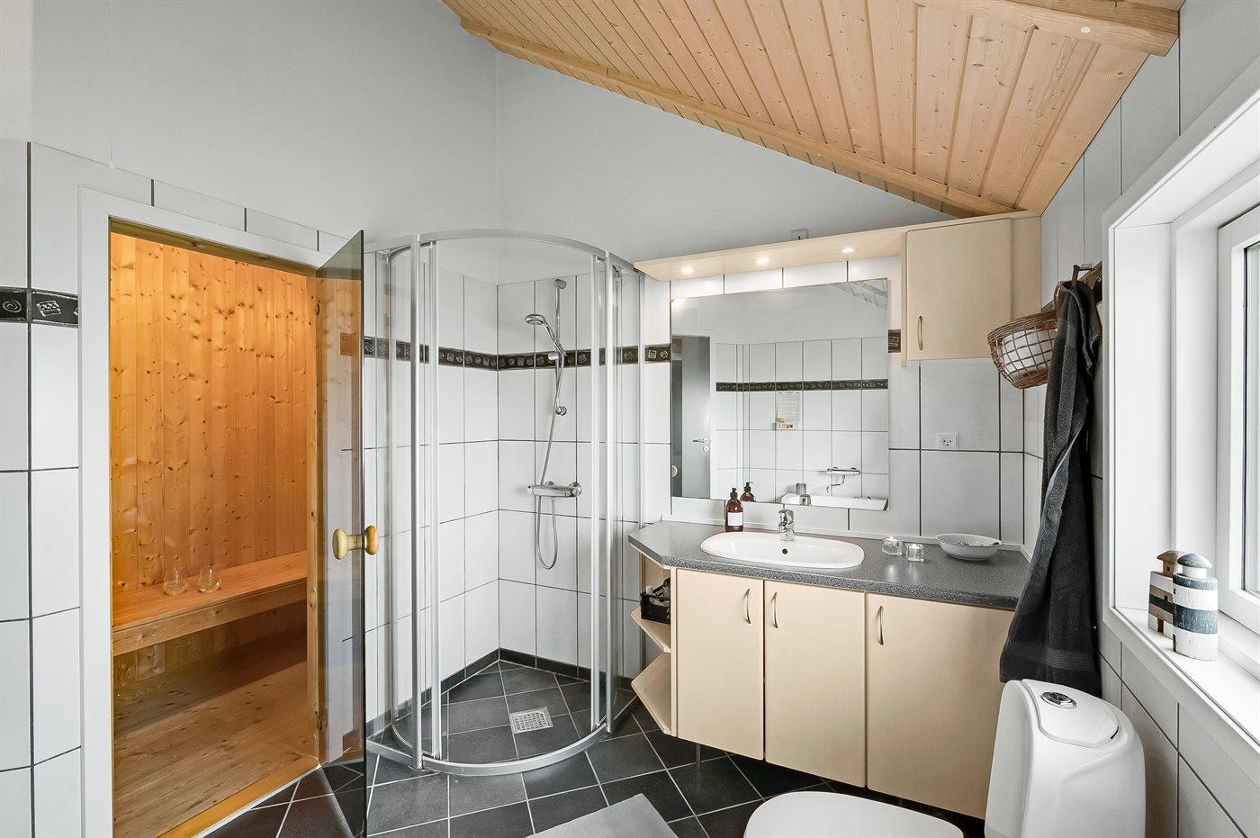Der er 1 badeværelse med bruseniche og 2 toiletter, heraf 1 gæstetoilet. Der er gulvvarme på 1 badeværelse. Der er gulvvarme på gæstetoilettet. I saunaen er der mulighed for afslapning.
