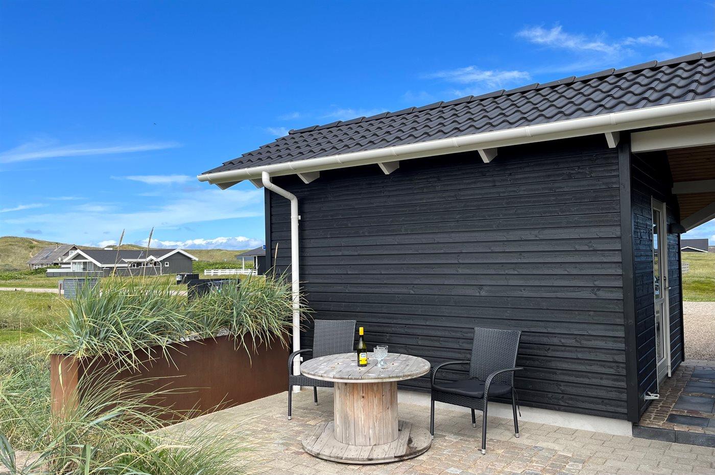 Ferieboligen er beliggende på en 1300 m² stor naturgrund. Der er 150 m til havet. Nærmeste forretning er beliggende i en afstand af 1500 m. Rundt om ferieboligen er der flere hyggelige terrasser. Der er redskabsrum. Kun 200 m fra huset ligger der en legeplads med gyngestativ, volleyballbane og fodboldbane. Parkering ved ferieboligen.