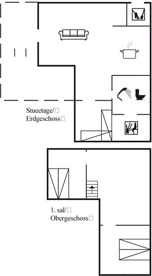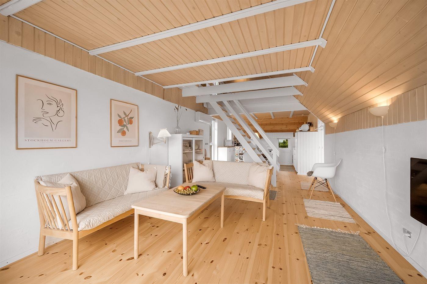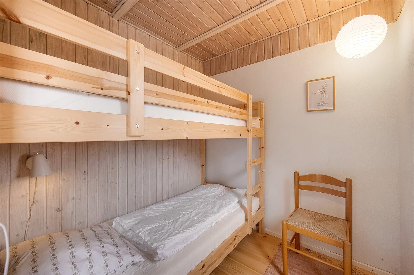 Der er i alt 3 soveværelser. Sovepladserne fordeler sig på: 4 sovepladser i dobbeltsenge. 2 sovepladser i enkeltsenge. Derudover er der 1 stk. barneseng.