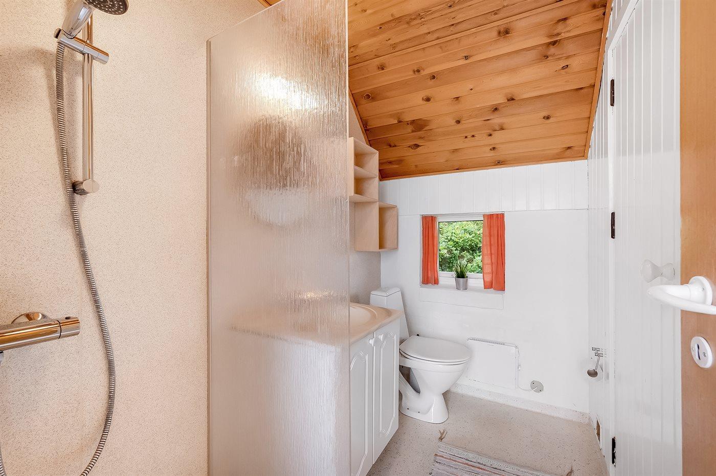 Der er 1 badeværelse med bruseniche og 1 toilet.