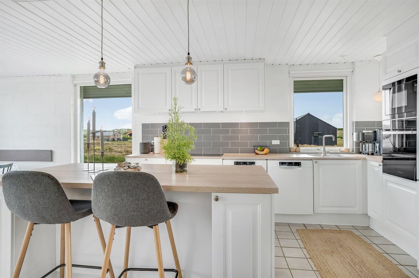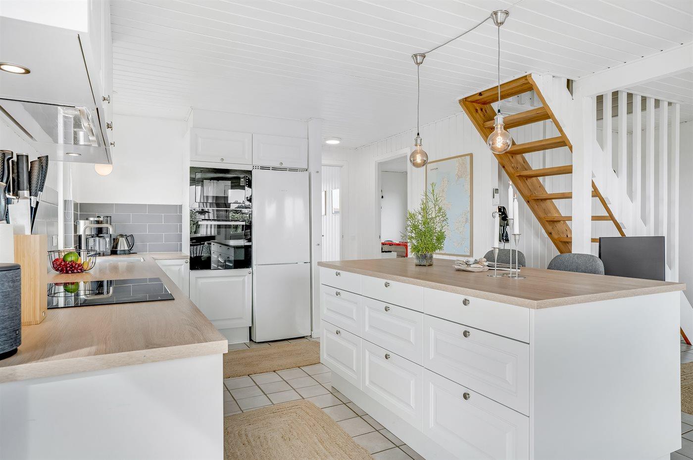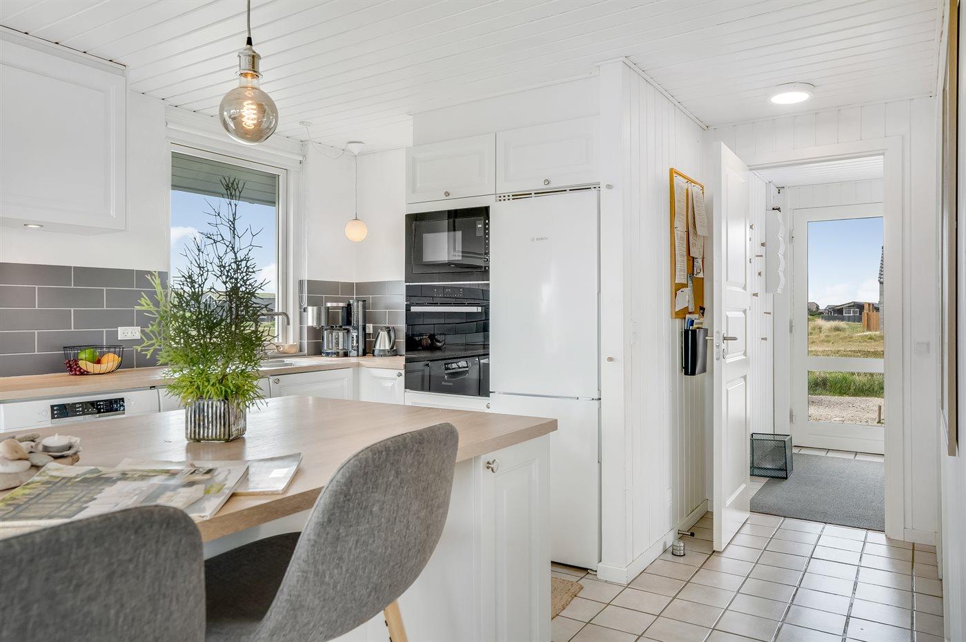 Fuldt udstyret køkken: køle/fryseskab (60L fryser), 4 induktionsplader, varmluftovn, mikroovn, 2 opvaskemaskiner
