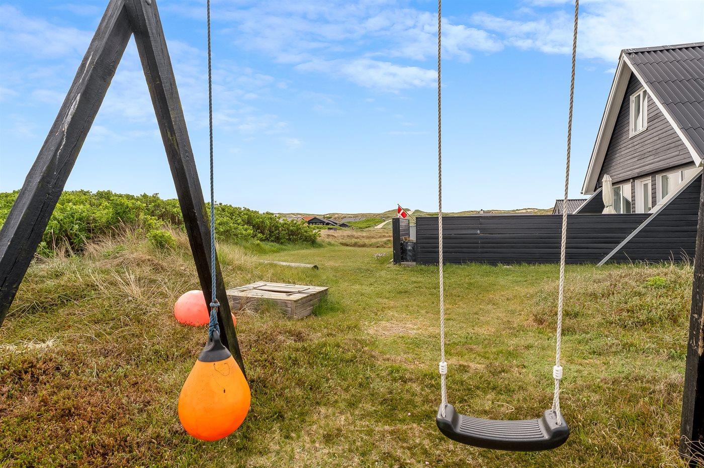 Til børnene: Gynge, sandkasse, legetøj, trækvogn, barneseng og pusleplads