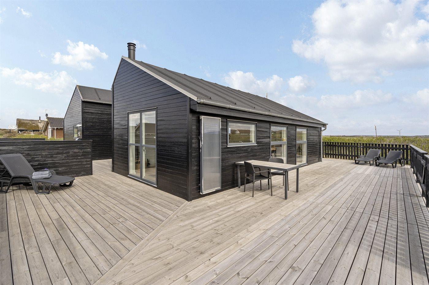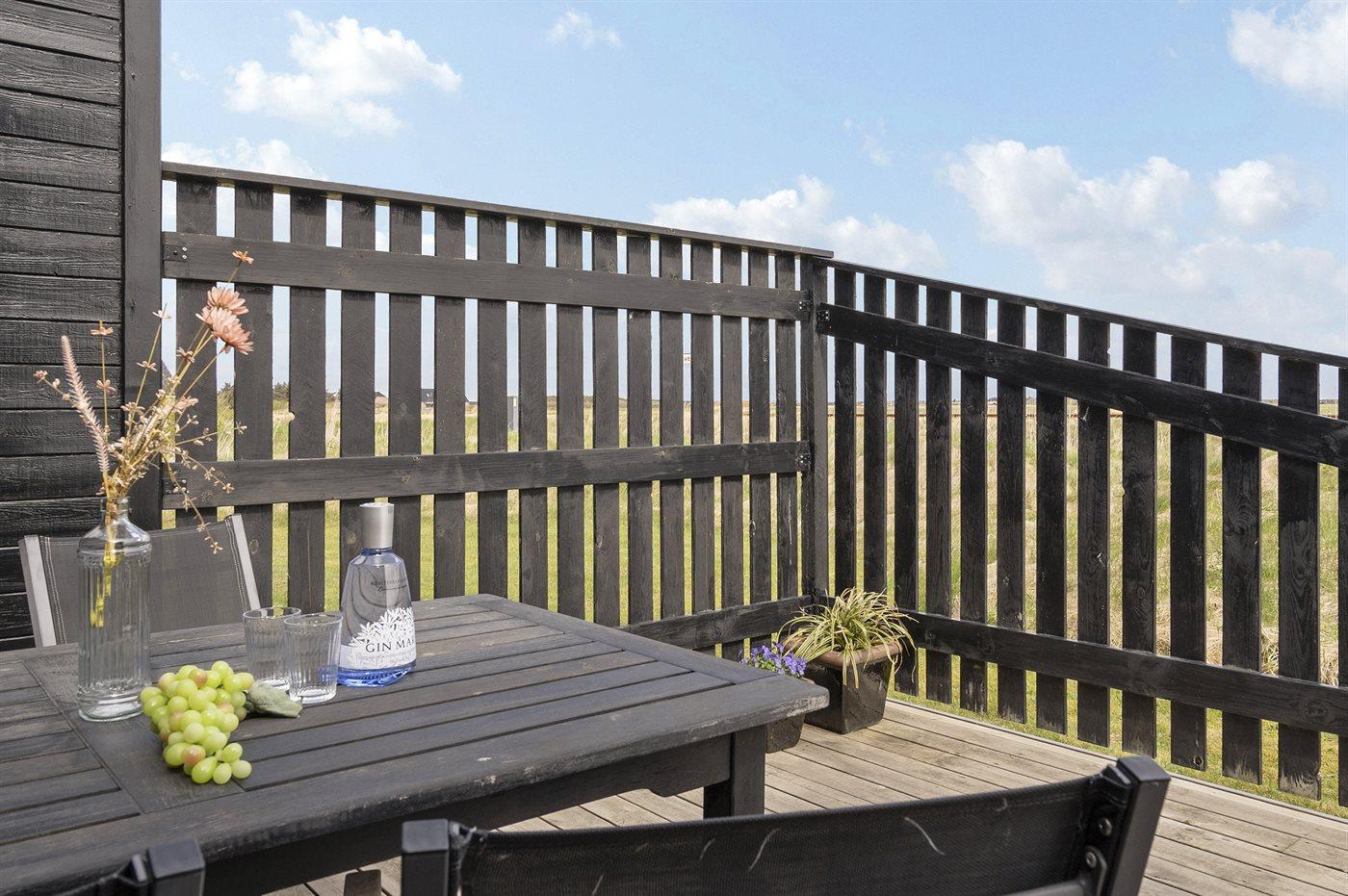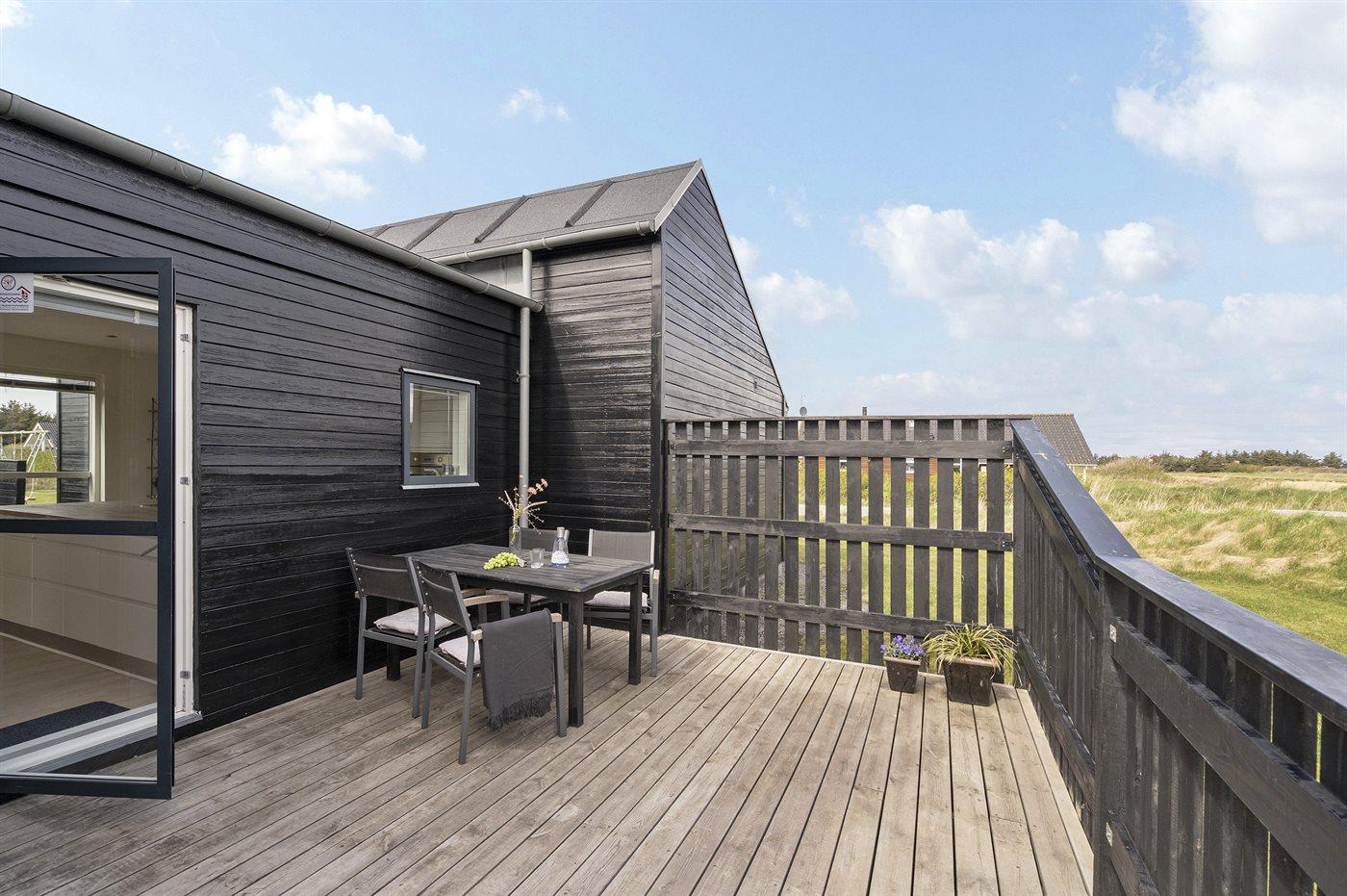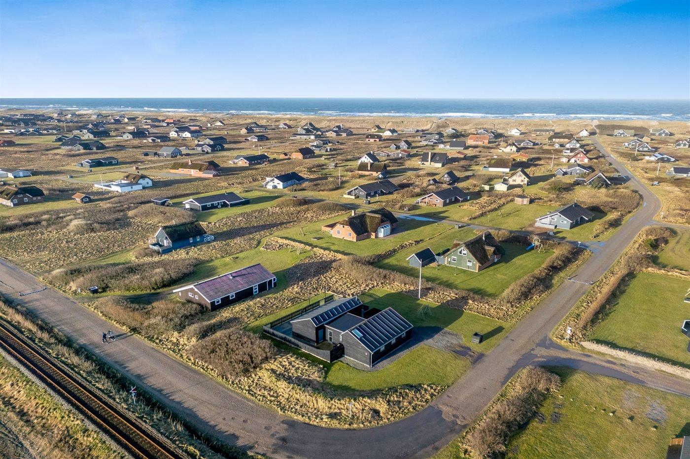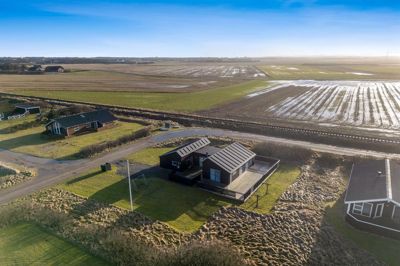 Ferieboligen er beliggende på en 1200 m² stor naturgrund. Der er 300 m til havet. Nærmeste forretning er beliggende i en afstand af 1000 m. Til ferieboligen hører 70 m² terrasseareal. Heraf i alt 70 m² lukket terrasse. Der er redskabsrum. Gynge. Parkering ved ferieboligen.