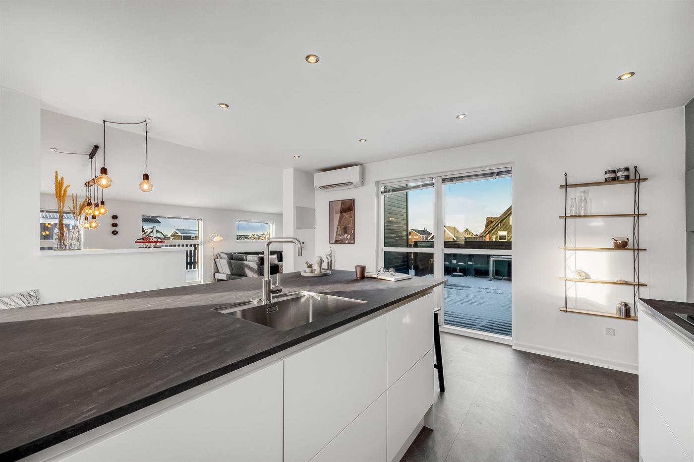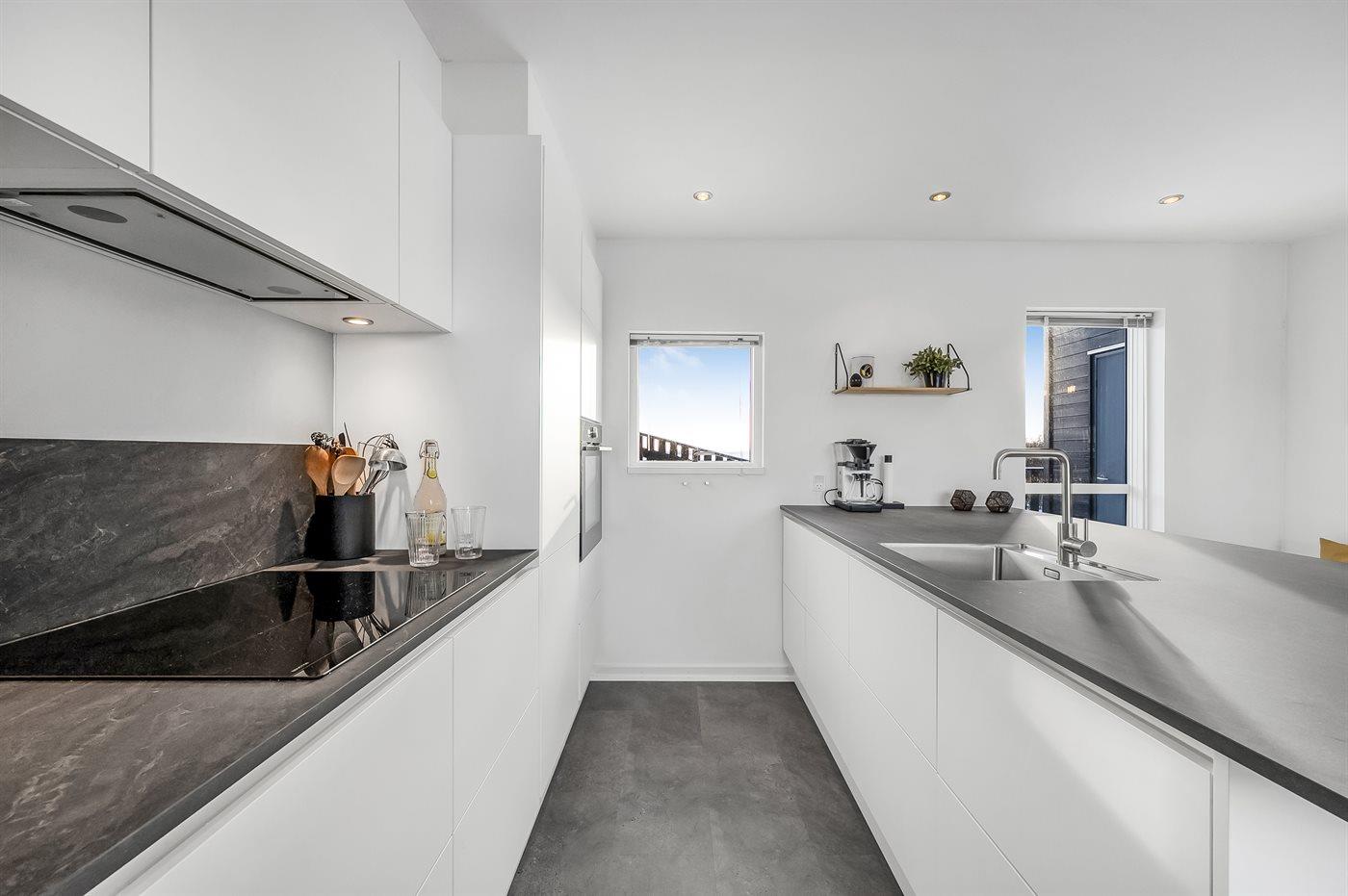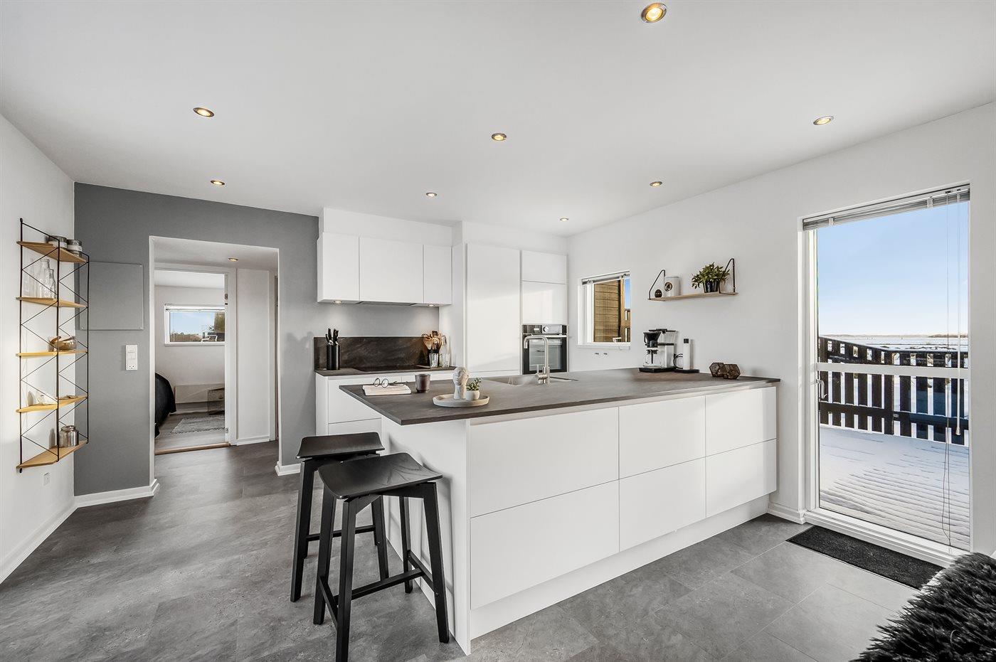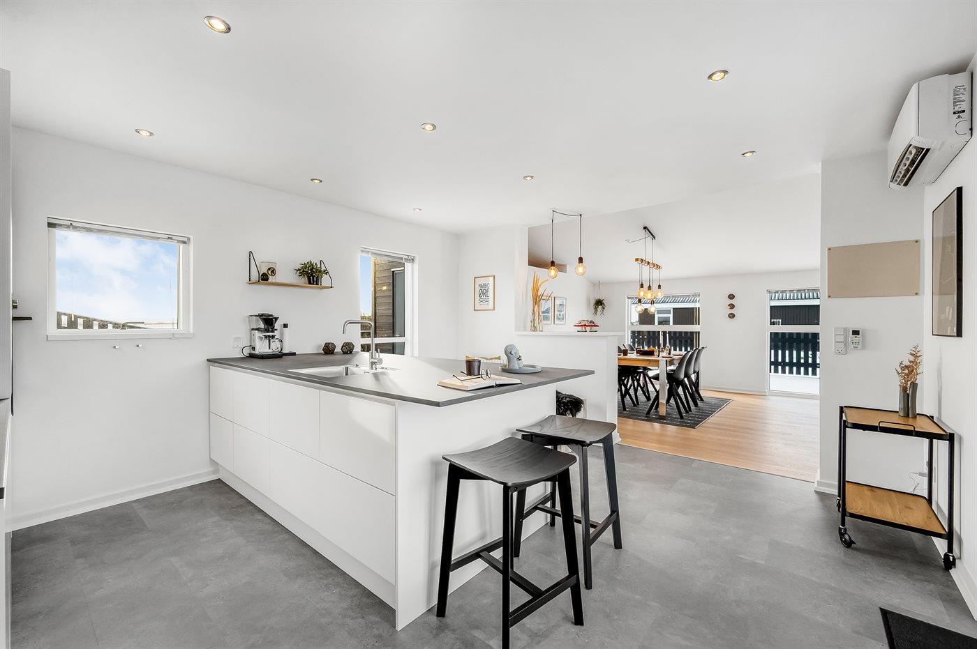 Køkkenet er udstyret med 1 køleskab. Der er 4 keramiske kogeplader, varmluftovn, mikrobølgeovn samt opvaskemaskine.