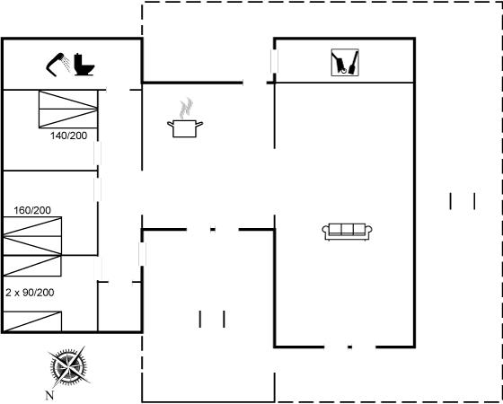 Der er i alt 3 soveværelser. Sovepladserne fordeler sig på: 4 sovepladser i dobbeltsenge. 2 sovepladser i enkeltsenge.