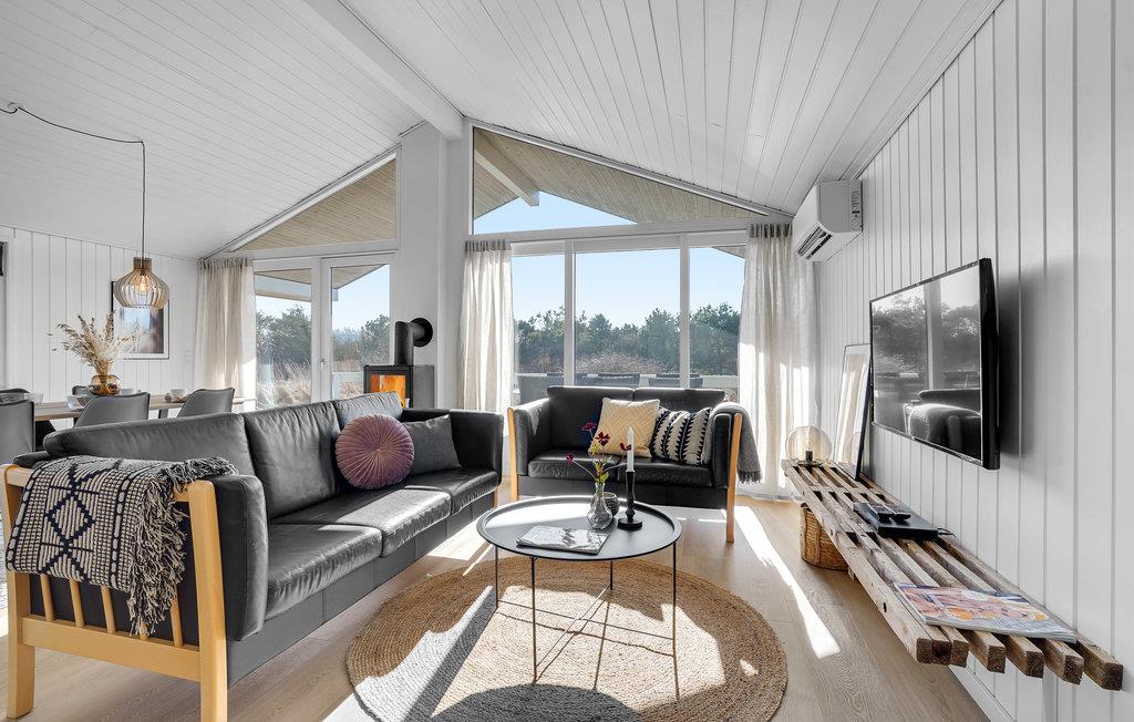 Huset har tre gode soveværelser, et stort badeværelse med lækkert spabad, sauna, og bruseniche samt et lækkert, veludstyret køkken fra 2021, hvor der også er renoveret bl.a. gulve og lofter. Når middagen skal tilberedes sikrer den gode køkken-alrum-indretning at 'ferie-kokken' kan være med i samtalen. På terassen med aftensol kan maden tilberedes på grillen, og sommersolen nydes indtil den går ned bag klitterne. I stuen er der plads til både leg og sofahygge ved SMART-TV'et, og brændeovnen spreder hyggelig varme i stuen på en kølig dag. Der er også varmepumpe for ekstra komfort. Elbilen kan oplades mens I holder ferie, her er nemlig installeret CEE-stik.