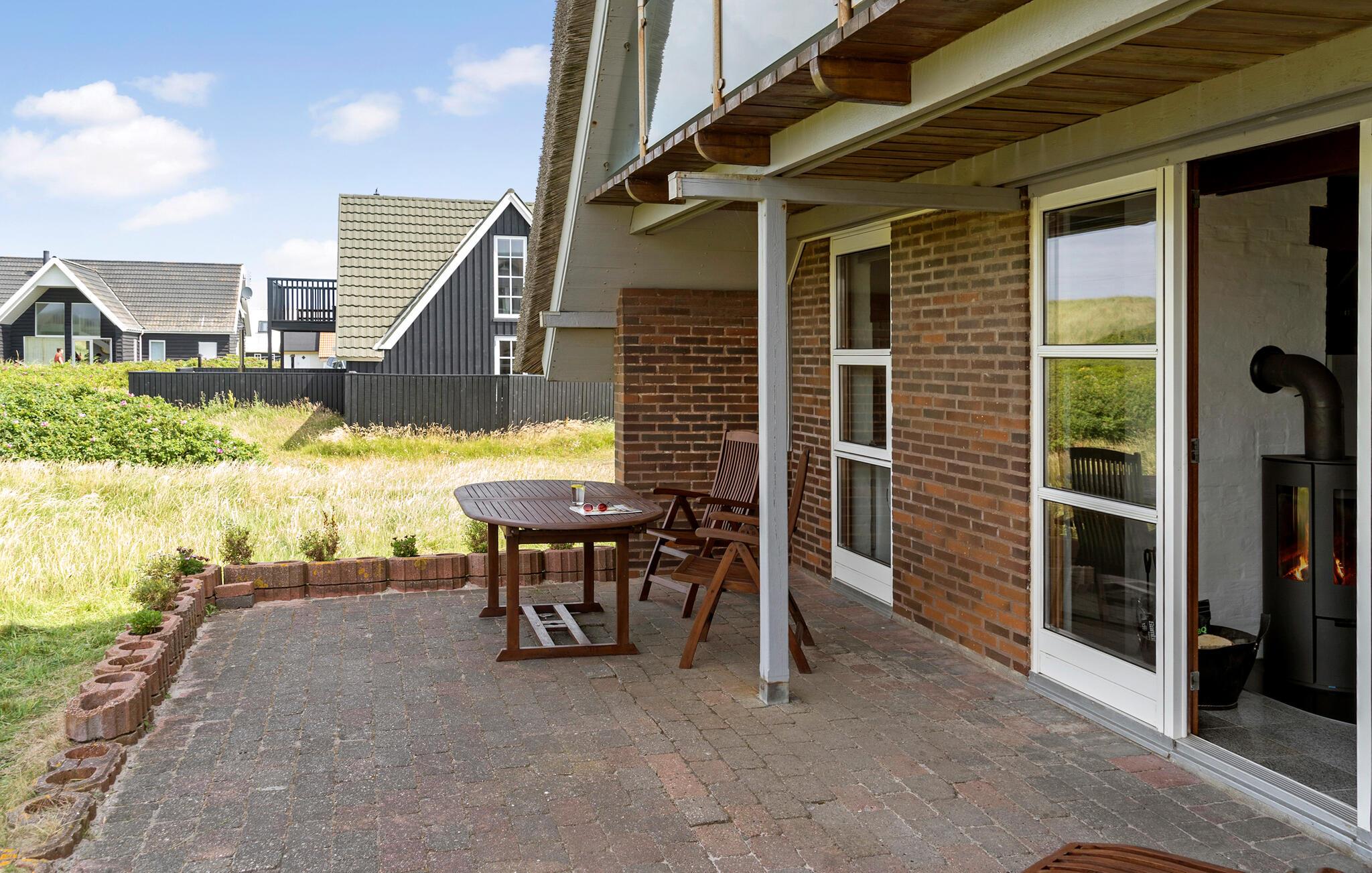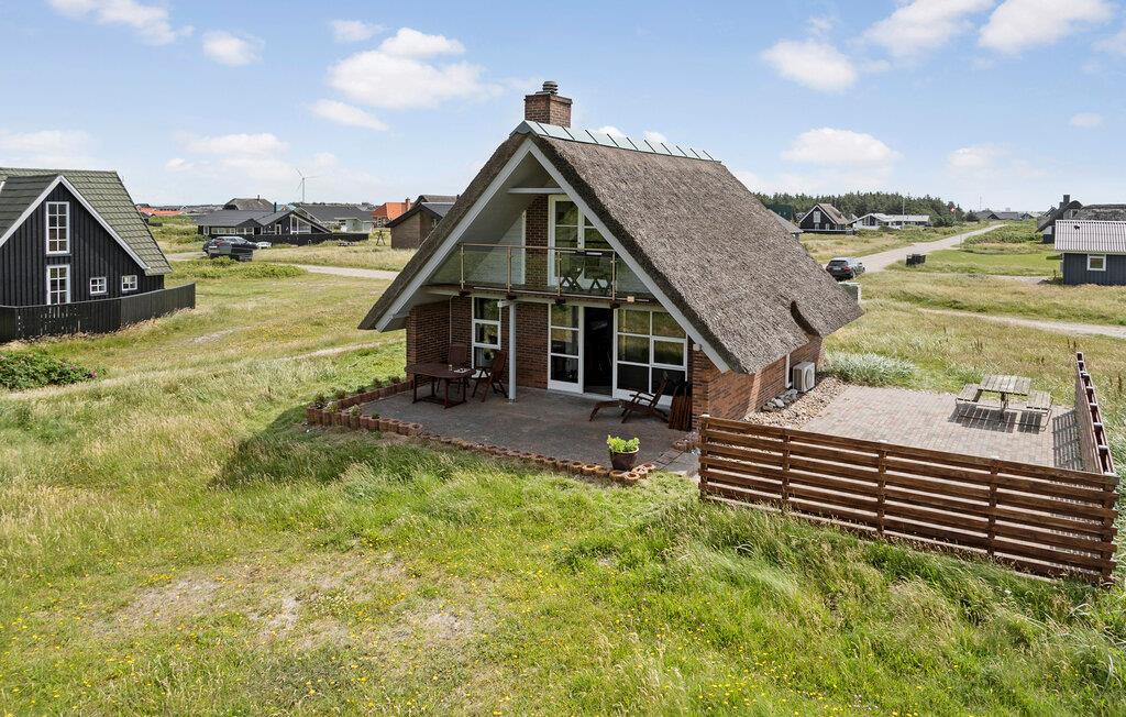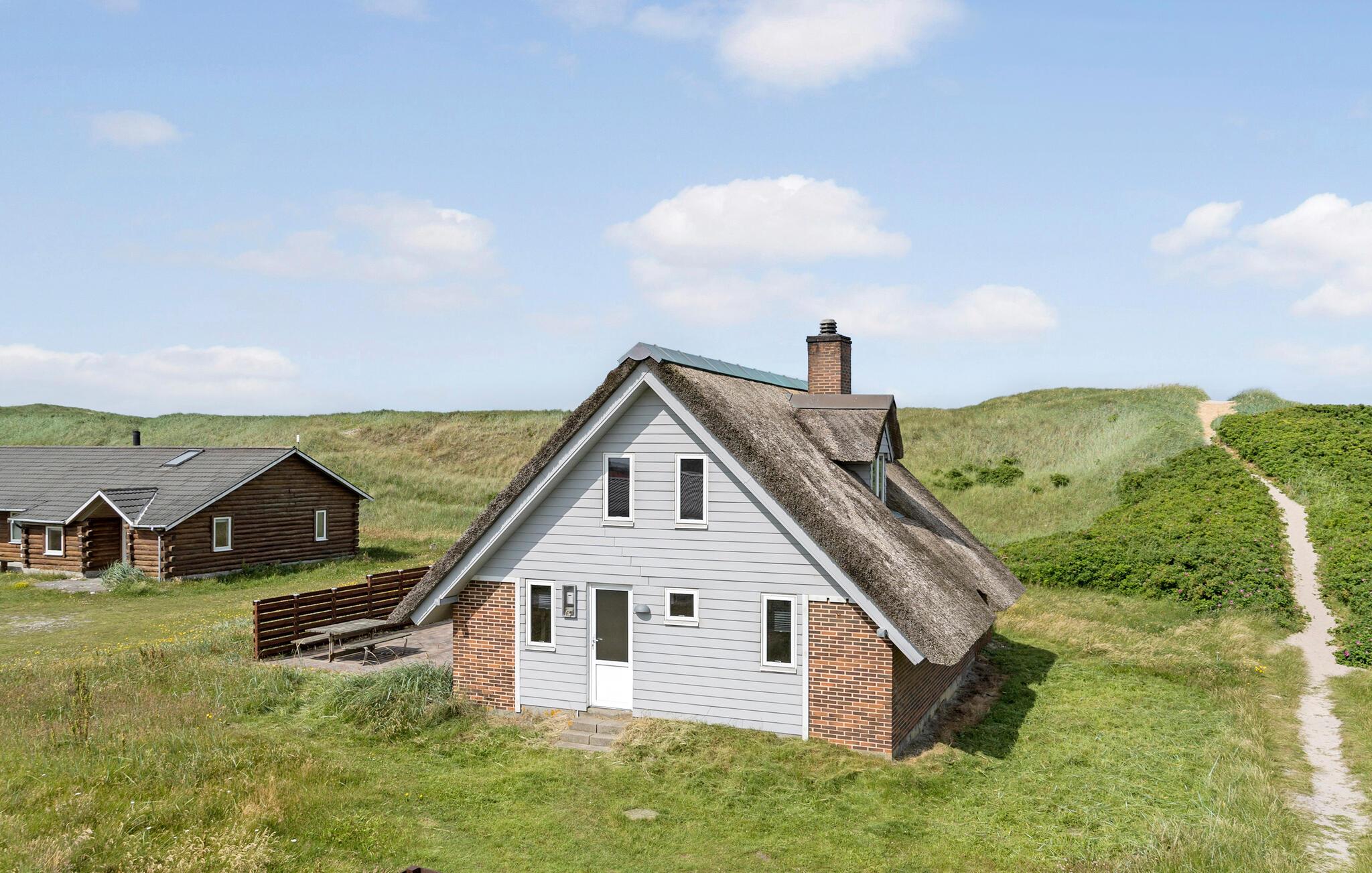 Nyd en skøn ferie i et velholdt stråtagshus i første klitrække til Vrist Strand med udsigt over Vesterhavet.