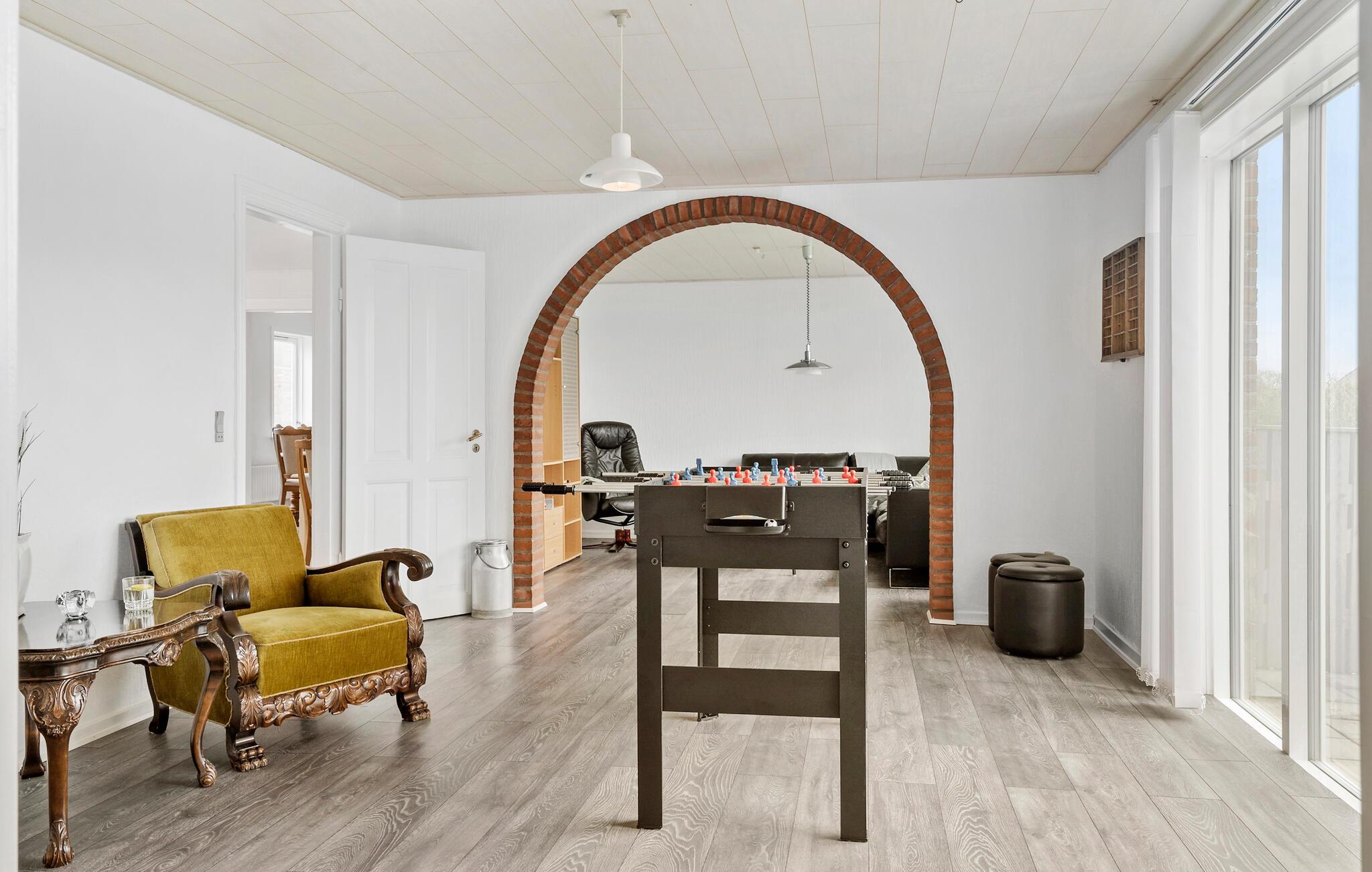 Tag en pause fra hverdagen, og nyd de mange fordele ved dette hus ved Vrist Strand, som giver gode betingelser for en afslappende familieferie. Kun få minutters gang fra Nordsøkysten er det det ideelle sted at finde ro. De store vinduer lader masser af lys ind i opholdsrummene og skaber en lys og behagelig atmosfære. Lad den fredelige stemning sænke sig over jer, og koble helt af. Køkkenet indbyder til fælles madlavning om aftenen, og måltiderne kan I nyde udenfor på den rustikke terrasse, hvor den friske luft og landlige idyl gør måltidet endnu bedre.