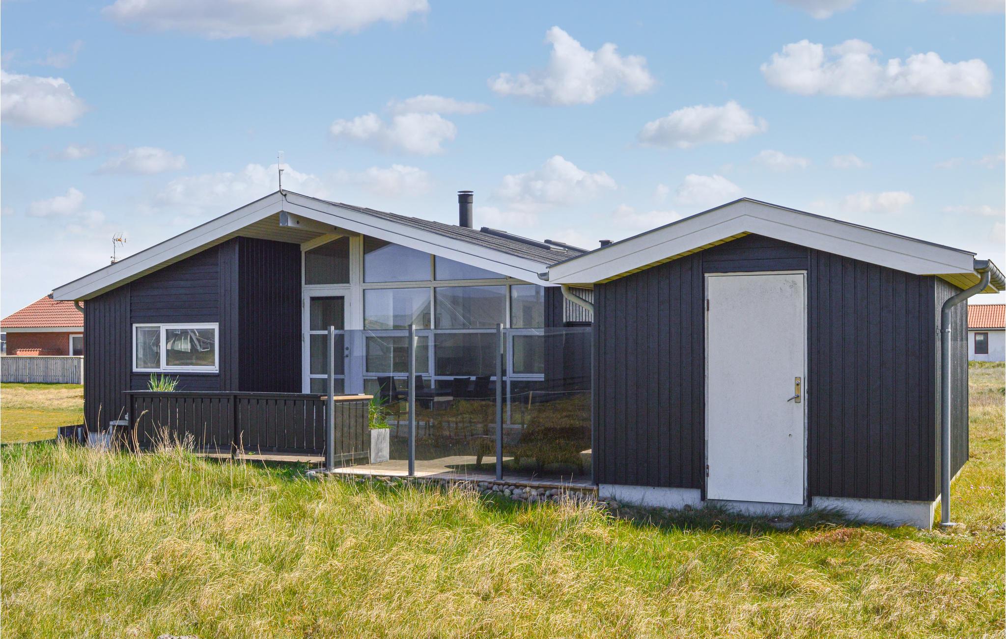 Dette velholdte sommerhus er godt indrettet til 6 personer. Huset ligger kun 5 minutters gang fra det brusende Vesterhav, og har flere lækre terrasser, så I kan nyde både morgen-, middag- og aftensolen. Huset er godt indrettet med 3 soveværelser - 2 med en dobbeltseng og det sidste med 2 enkeltsenge. I det store badeværelse findes både spabad og sauna, så I kan blive varmet godt igennem efter en dejlig gåtur ved Vesterhavet. Her findes yderligere et badeværelse med bruser. Køkkenet, spiseområdet og stuen ligger i åben forbindelse, og her sørger en brændeovn for hurtig opvarmning og god atmosfærre i huset, specielt på kølige aftener.