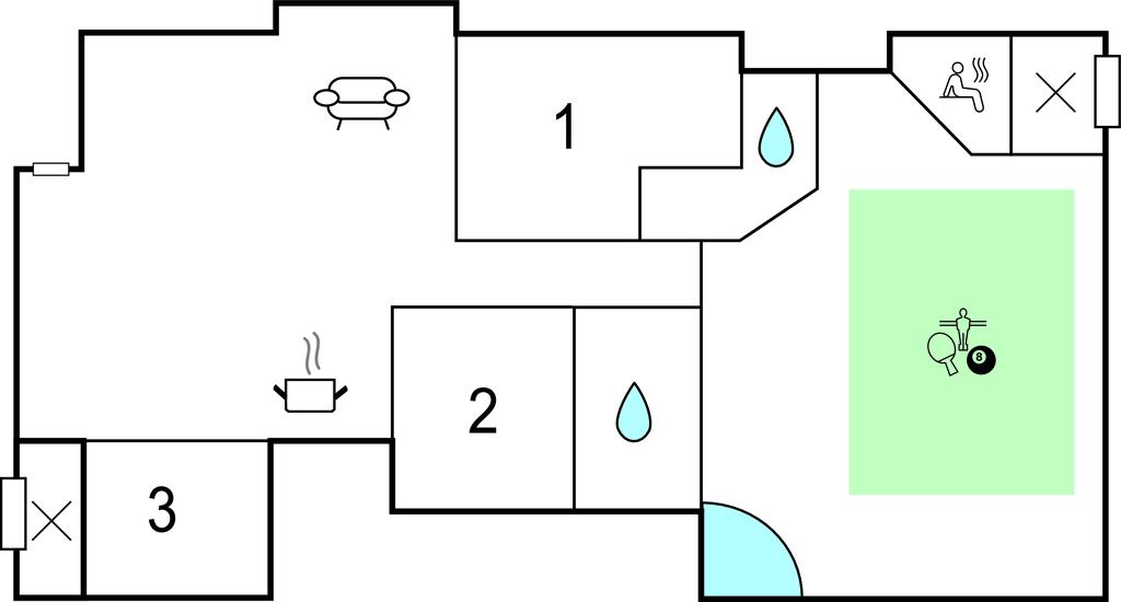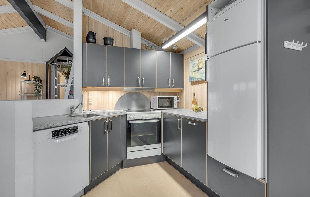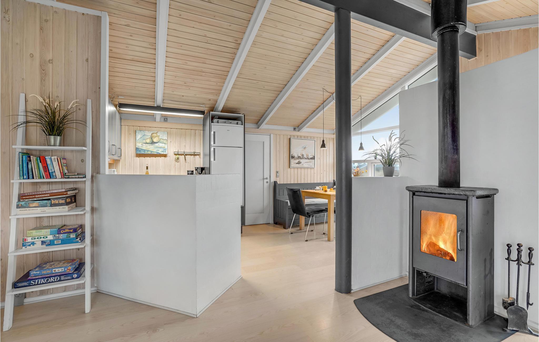 Huset er godt indrettet med et lyst køkken i åben forbindelse til stuen. I stuen er der opsat brændeovn. Huset har 3 soveværelser samt en hems med 2 madrasser. Der er 2 badeværelser, begge med bruser, og derudover findes der et aktivitetsrum med billiard, airhockey et spabad og en sauna. Fra terrassen har man udsigt til de flotte hvide klitter, og man kan nyde den salte friske vesterhavsluft.