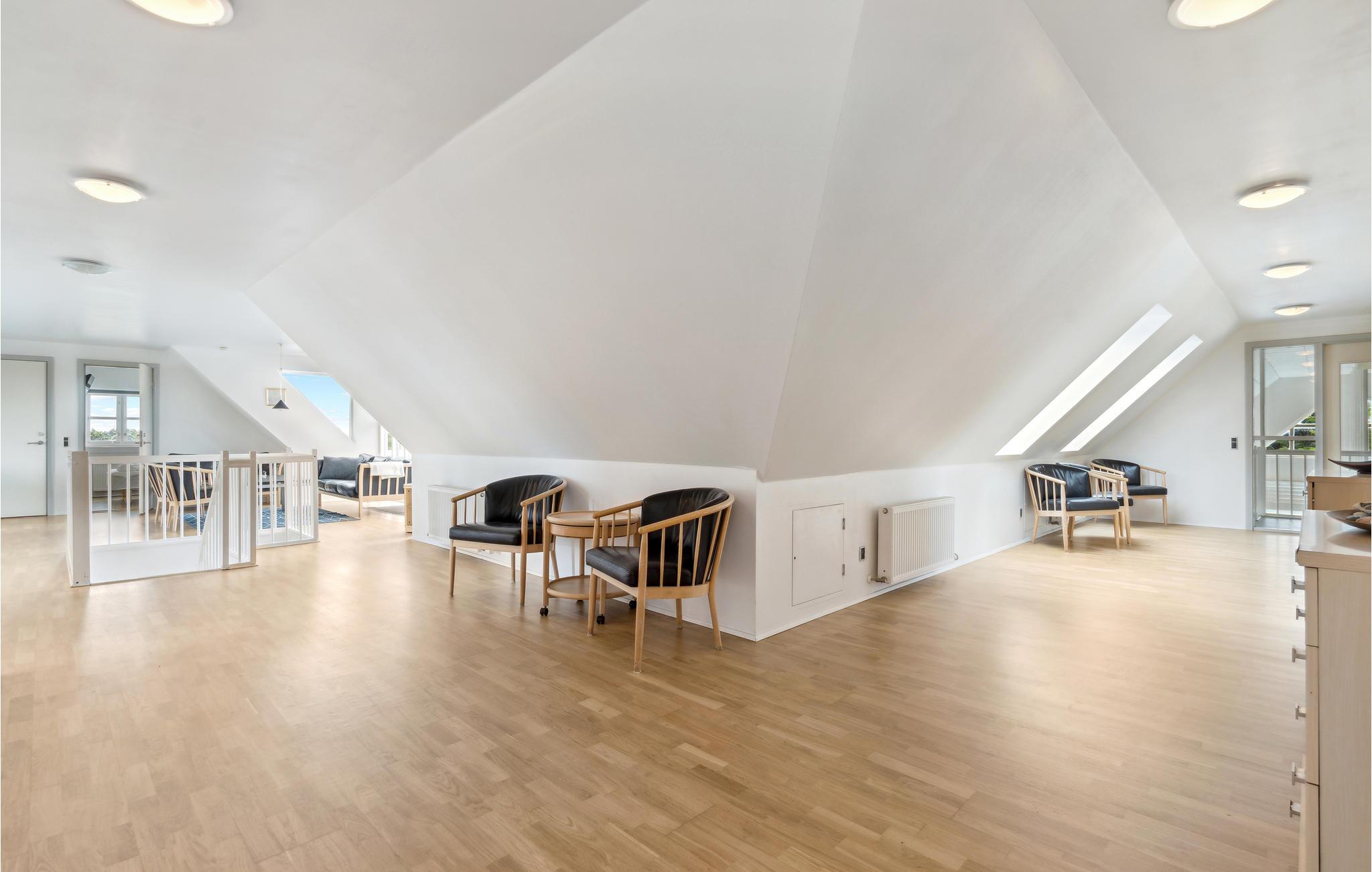 Som noget helt specielt er huset indrettet med en indendørs altan, hvorfra I har udsyn til de badende i poolrummet. Alle soveværelser har god plads, og er udstyret med dobbeltsenge og eget fladskærms-TV. De fleste af værelserne har egen udgang til terrasse eller balkon, hvor I kan nyde den utroligt smukke udsigt til klitterne og landskabet. Køkkenet er meget veludstyret og dimensioneret til husets størrelse med bl.a. 2 komfurer og opvaskemaskine. I de velindrettede og indbydende stuer er der opsat store fladskærms-TV, og parabolen sørger for både skandinaviske og tyske kanaler, bl.a. Viasat til de sportsinteresserede. Der er naturligvis også gratis internet, ligesom der er mulighed for at benytte husets AV-udstyr til eventuelle præsentationer.