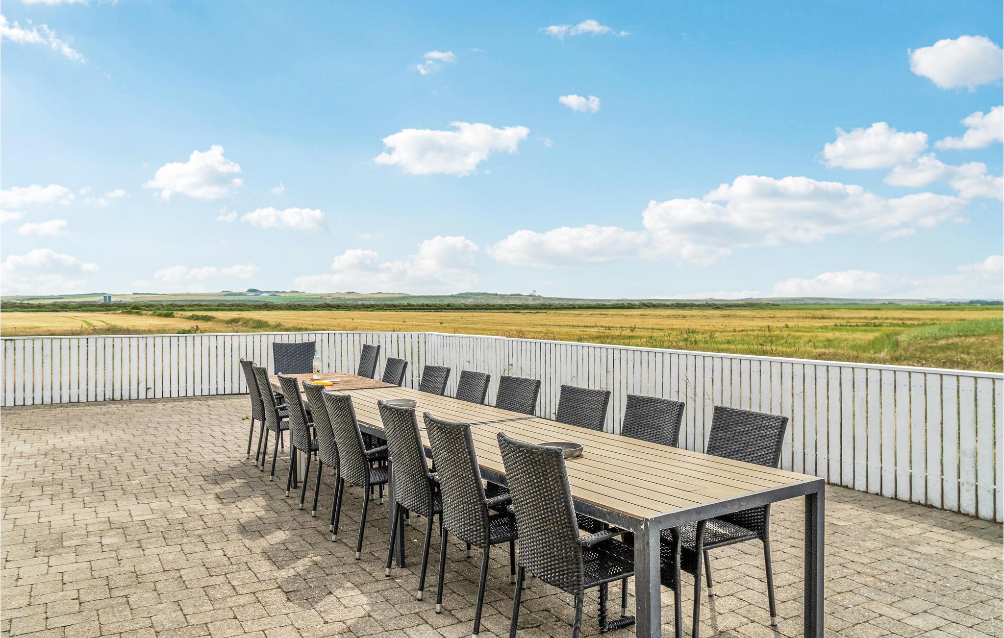 Vrist er omgivet af hav, sø, fjord og bakkede landskaber - her er naturen ren og uspoleret. Med kun 500 m til den fantastiske strand ved Vesterhavet ligger dette store, prægtige aktivitetshus, der opvarmes af energibesparende jordvarme. Ferieboligen rummer alt hvad hjertet kan begære af underholdnings- og udfoldelsesmuligheder. I aktivitetsrummet kan familie og venner dyste i både billard og bordtennis. Er I mere til herlige vandaktiviteter, lokker den store swimmingpool til adskillige timers leg. Det 8 personers spabad ligger højt hævet over poolen og indbyder til behagelig undervandsmassage.