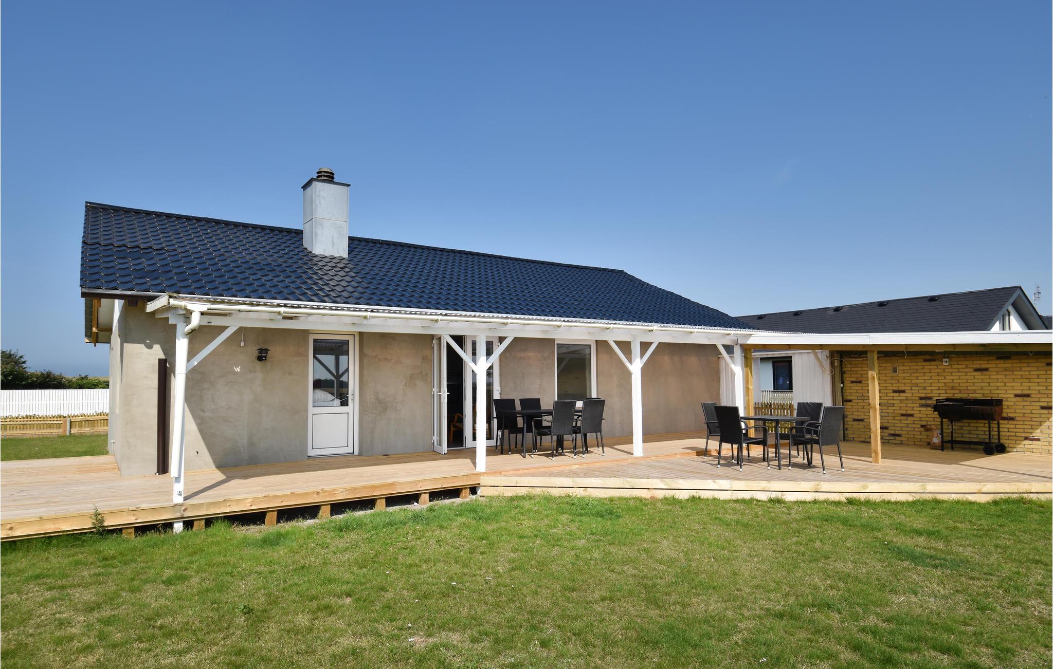 Huset er blevet gennemgribende moderniseret og fremstår i dag som et rigtig hyggeligt feriehus. Det er indrettet med 4 soveværelser, 3 med dobbeltseng og 1 med 1 enkeltseng og 1 køjeseng. Der er gulvvarme på alle flisegulve i huset, gg huset opvarmes med pillefyr. Varme er inkl. i lejen. Køkkenet ligger i åben forbindelse til spiseområdet samt stueområdet. Fjernsynet er udstyret med Appletv, men har ingen tyske programmer. Huset har både vaskemaskine og tørretumbler. Fra stuen er der udgang til husets store overdækkede terrasse og videre til den store og helt indhegnede grund, hvor der er god plads til boldspil og leg. Fra terrassen er der en smuk udsigt over de åbne marker bag huset. Til den anden side kan man se klitterne, og Vesterhavet ligger kun 400 m. fra huset.