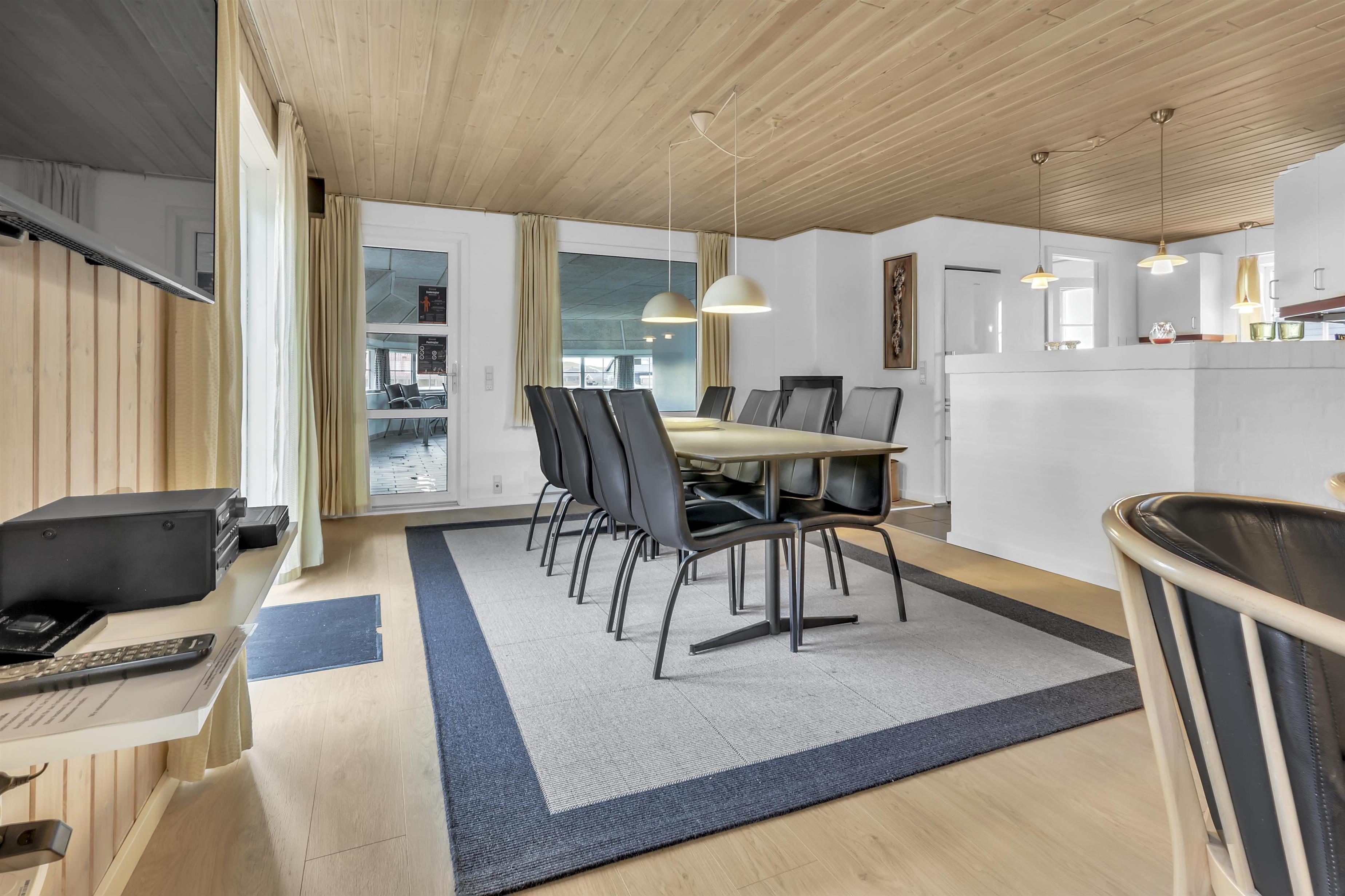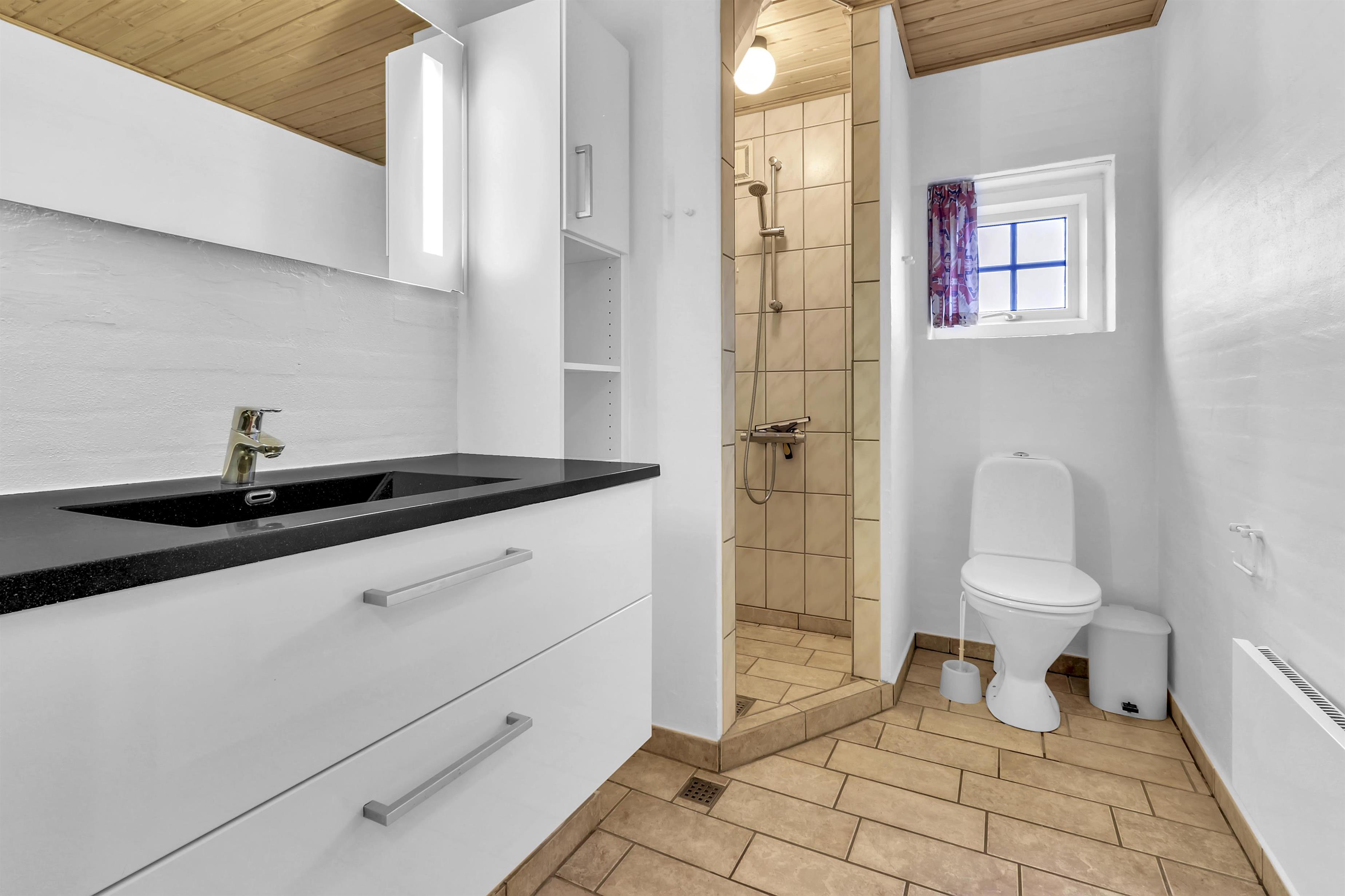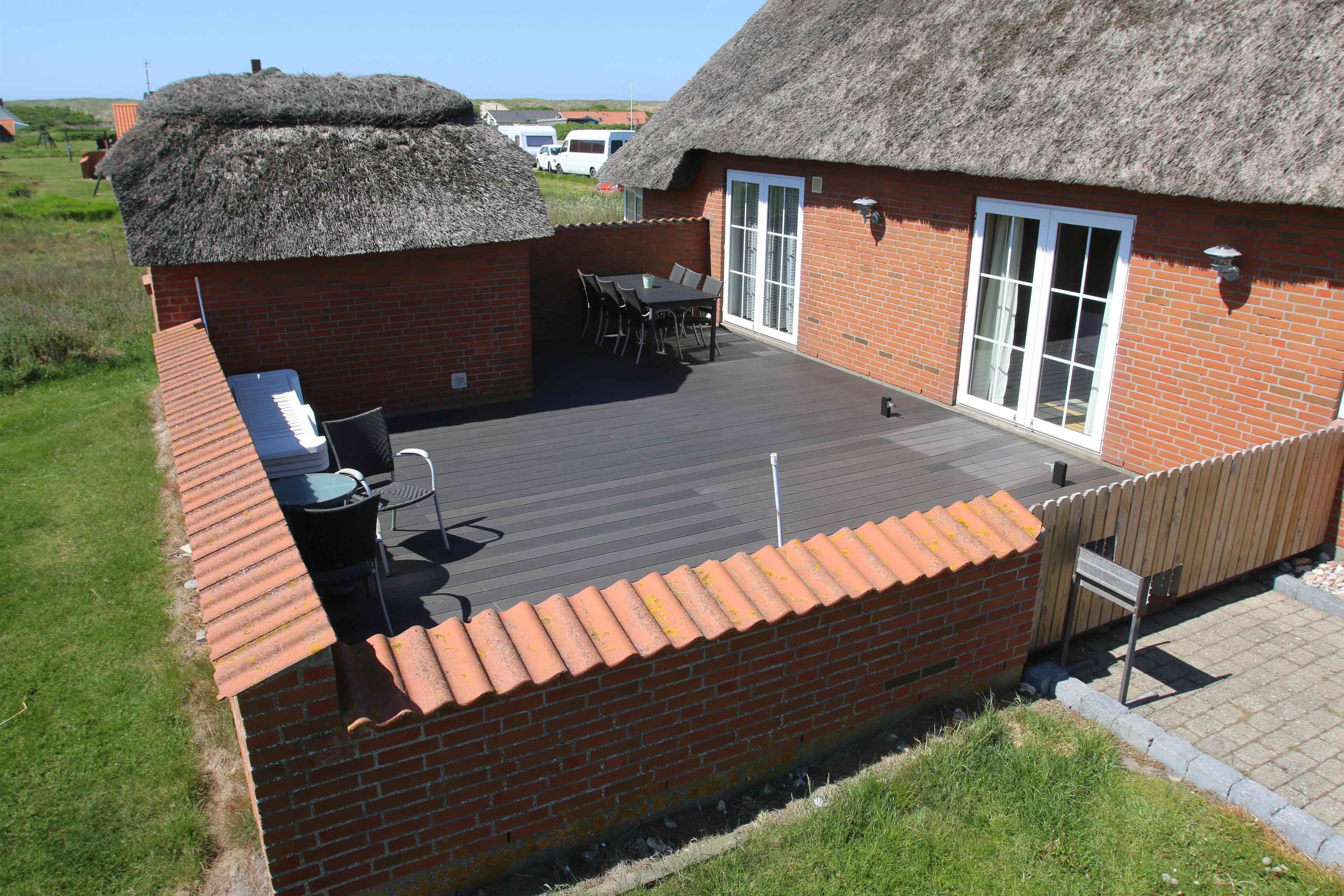 Udgang til dejlig indhegnet terrasse med havemøbler, liggestole og grill. I alt findes der ca. 60 m2 åbne og afskærmede terrasser – så der er altid mulighed for at finde en plads i solen. Også området omkring huset er en oplevelse. Udover den daglige gå tur til Vesterhavet er der rig mulighed for at opleve natur og dyreliv i den lille plantage, som ligger tæt ved huset. Hold formen ved lige og hent morgenbrød eller klar de daglige indkøb hos den lokale købmand kun 1.000 m fra huset. Kort sagt et hus som råder over unikke muligheder, og som har størrelsen og faciliteterne til at nyde vennernes eller familiens selskab og få batterierne genopladet.