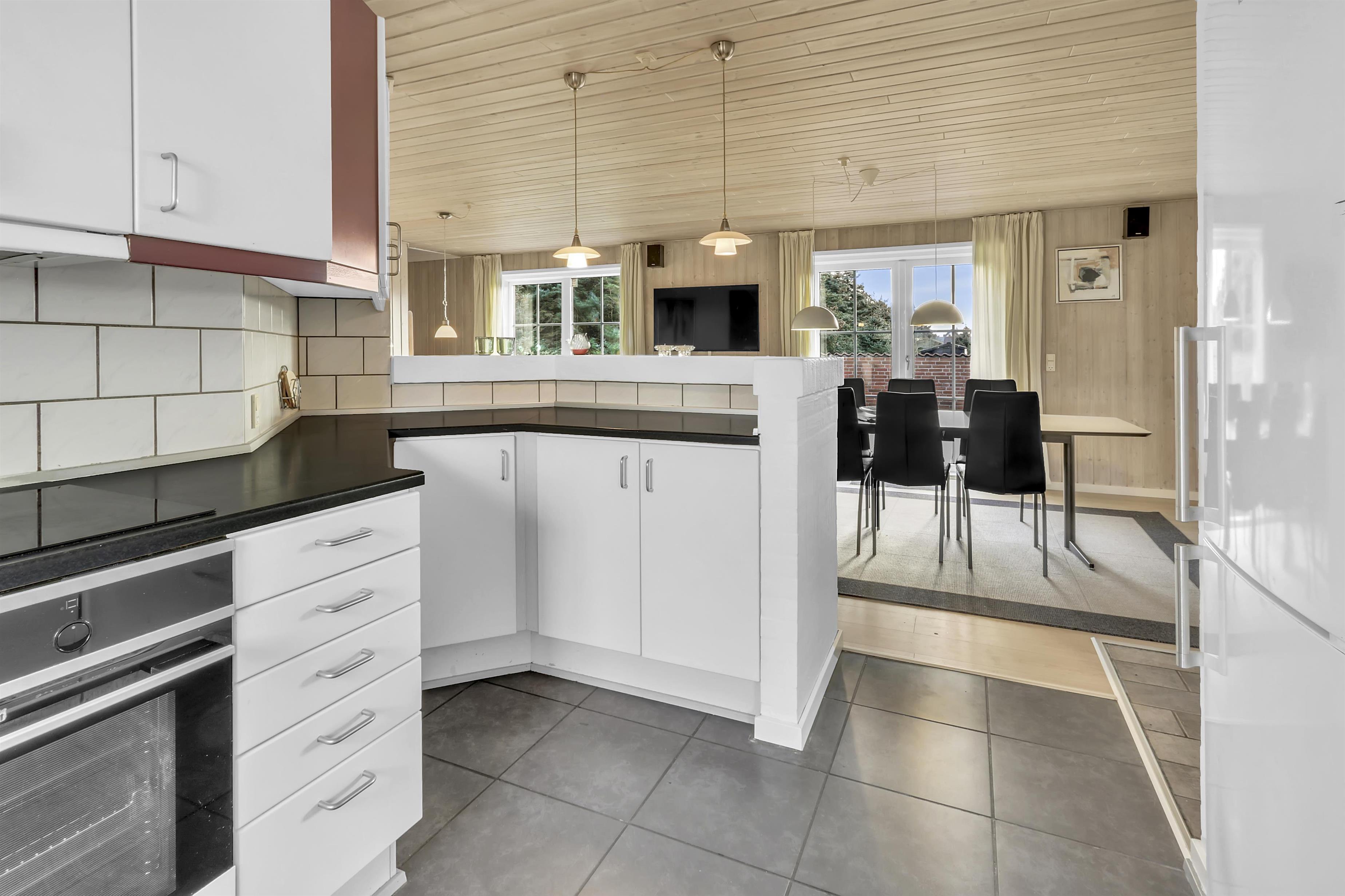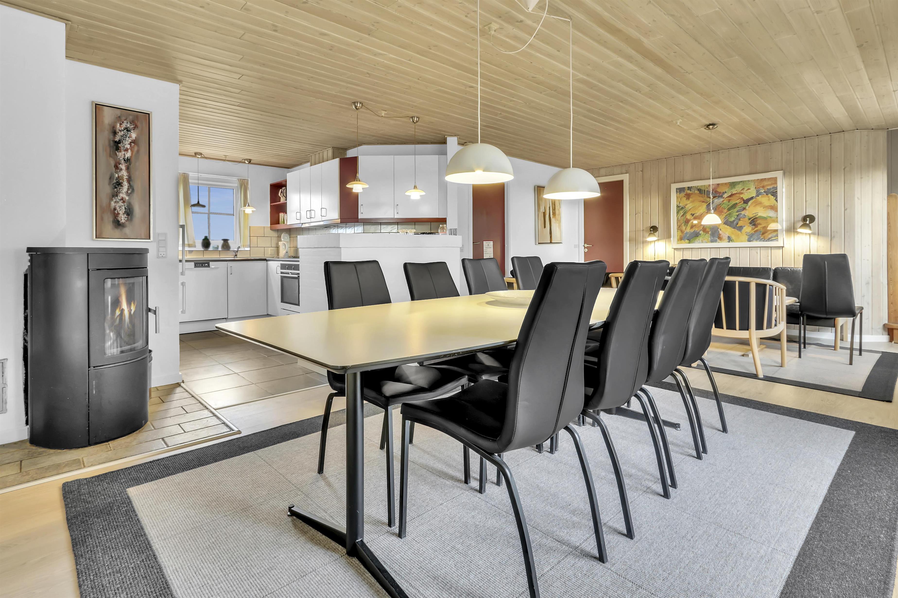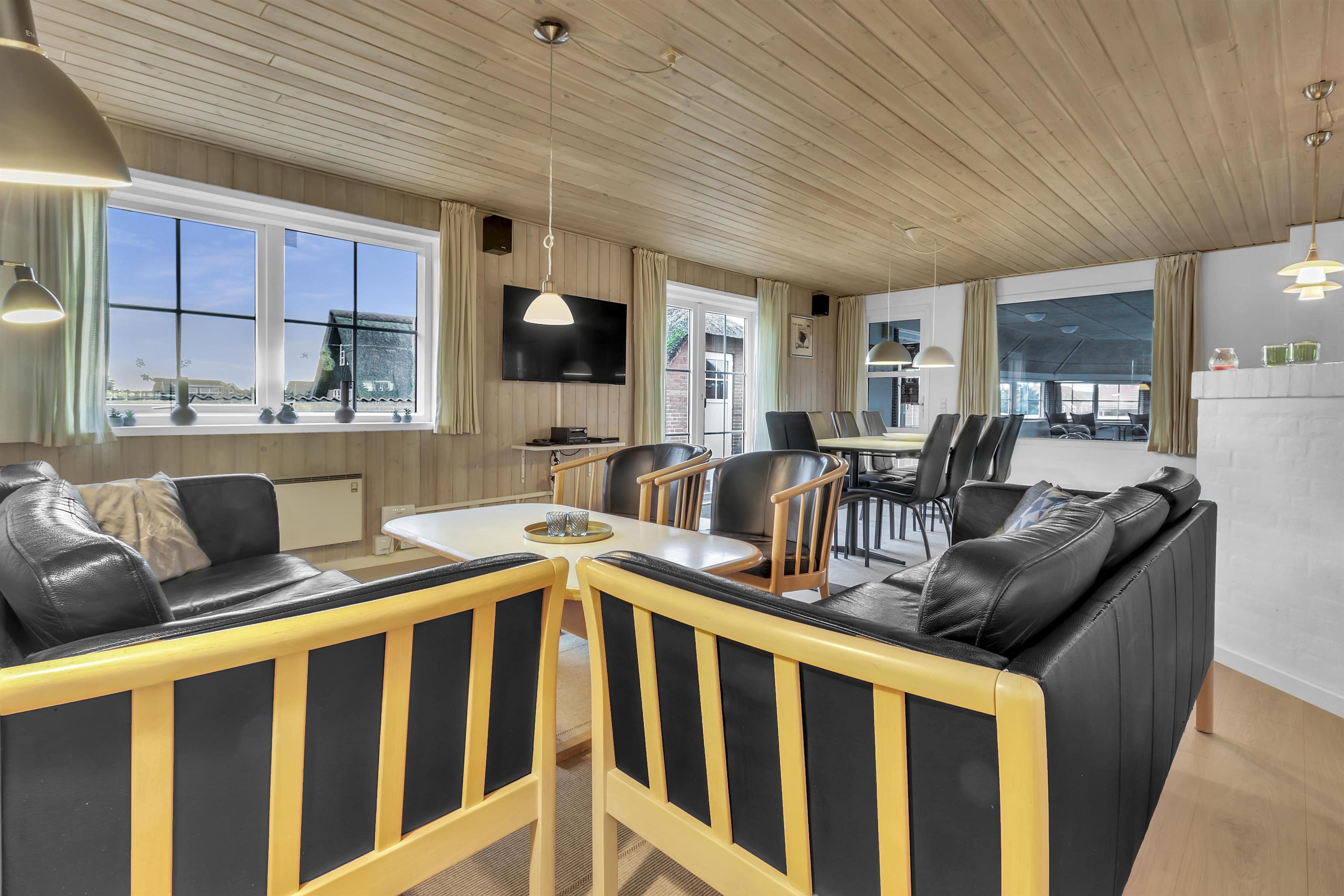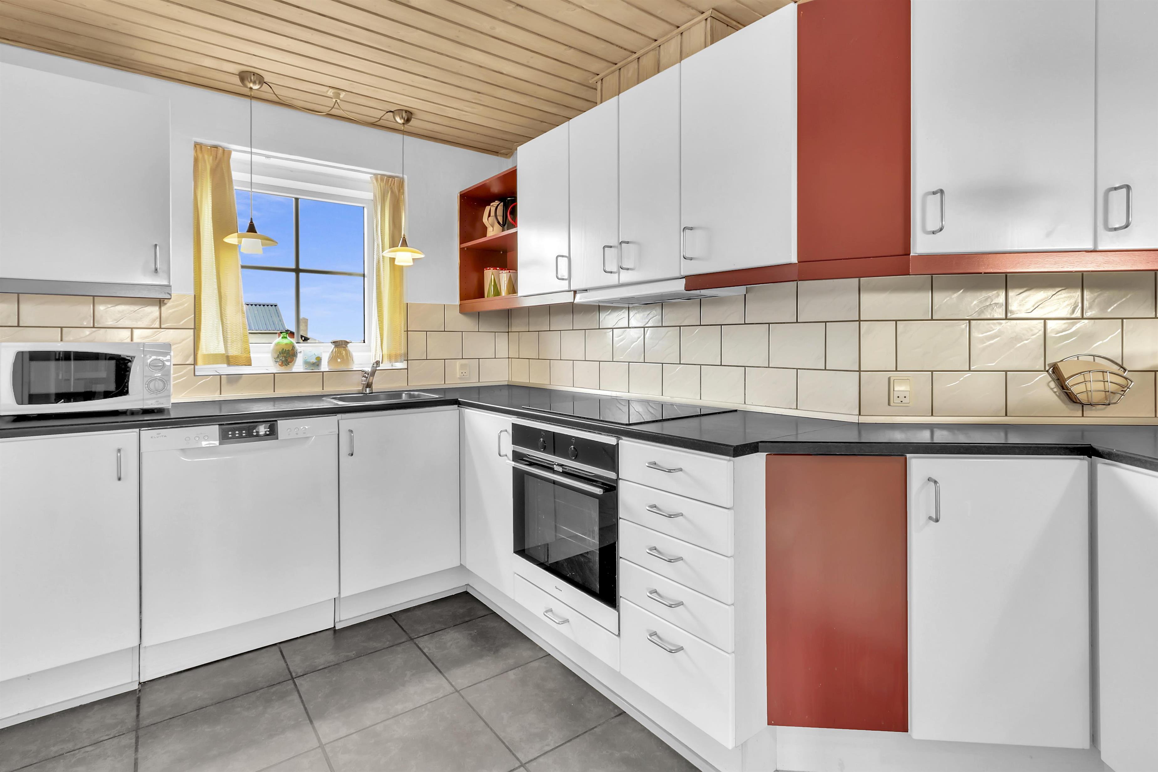 Udgang til dejlig indhegnet terrasse med havemøbler, liggestole og grill. I alt findes der ca. 60 m2 åbne og afskærmede terrasser – så der er altid mulighed for at finde en plads i solen. Også området omkring huset er en oplevelse. Udover den daglige gå tur til Vesterhavet er der rig mulighed for at opleve natur og dyreliv i den lille plantage, som ligger tæt ved huset. Hold formen ved lige og hent morgenbrød eller klar de daglige indkøb hos den lokale købmand kun 1.000 m fra huset. Kort sagt et hus som råder over unikke muligheder, og som har størrelsen og faciliteterne til at nyde vennernes eller familiens selskab og få batterierne genopladet.