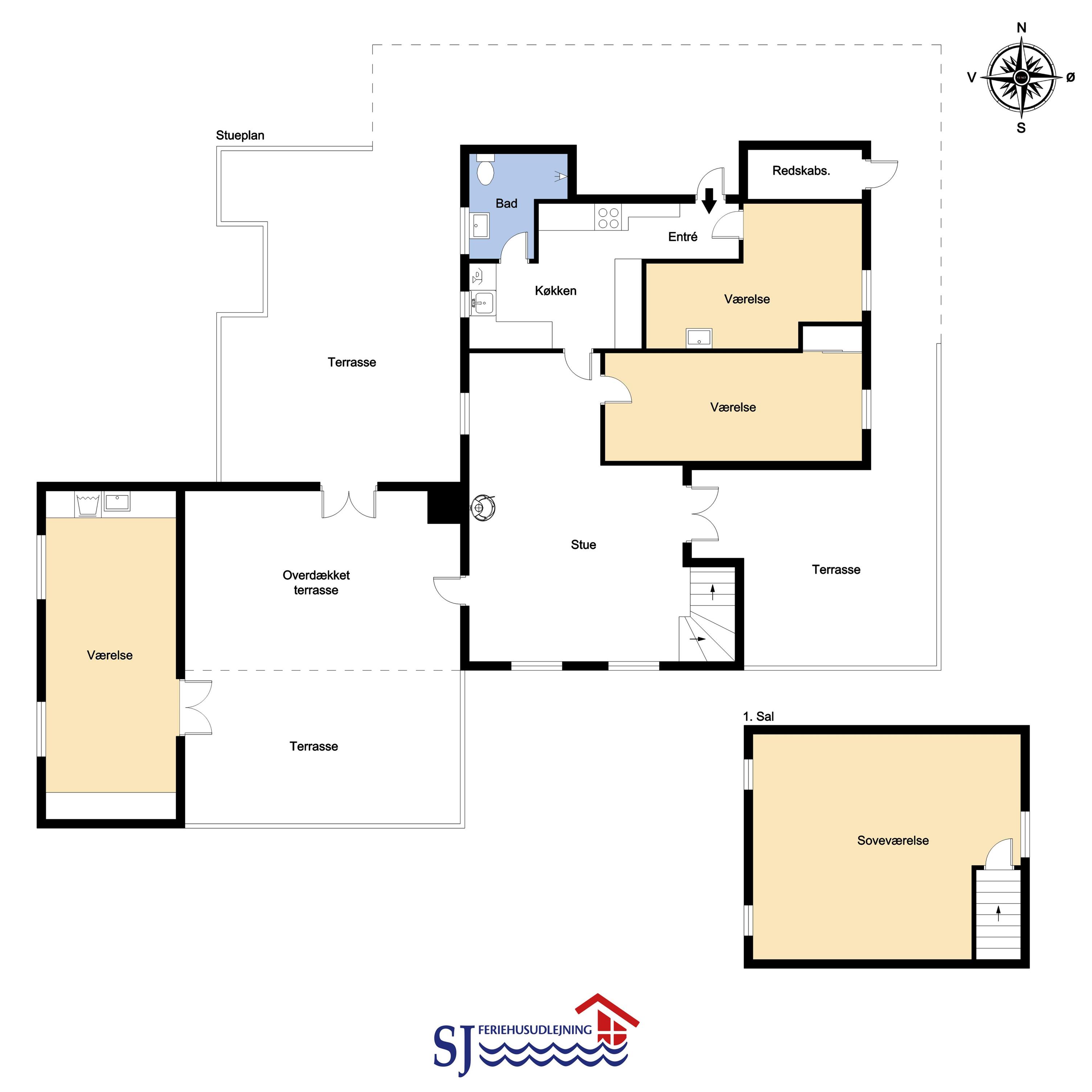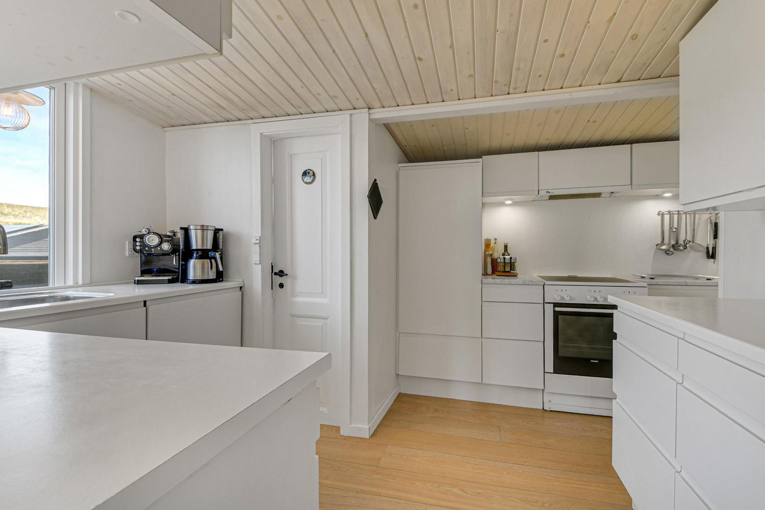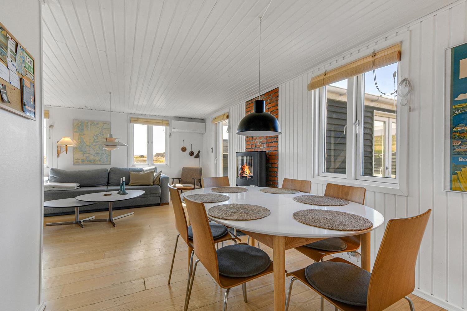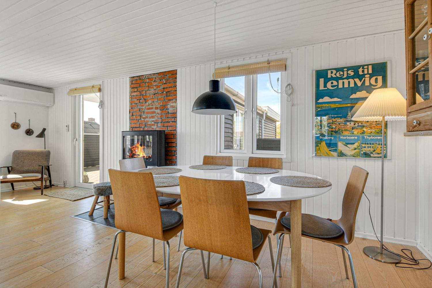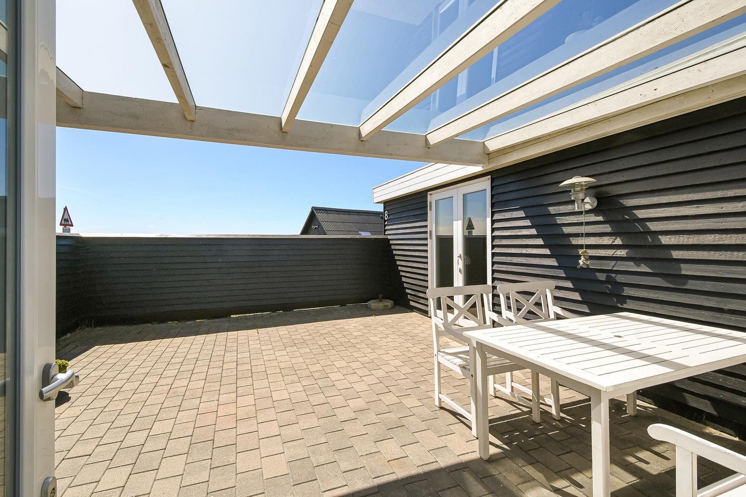 Huset ligger meget tæt på Vesterhavet - kun 100 meter fra stranden på en 1042 m2 klitgrund. Der er flere gode terrasser, både åbne og en delvis overdækket og indhegnet med havemøbler, solvogne og gasgrill. Husets beliggenhed i gåafstand til stranden er helt unikt. Vesterhavet er hver dag et besøg værd. Her er der flere muligheder for at udfolde sig, enten bade, samle rav, fiske eller vandre en tur langs vandkanten. Ønsker man noget andet i ferien eller en afveksling så besøg den gamle handelsby Lemvig som har flere specialforretninger og en dejlig havnepromenade med en legeplads til børnene. Huset er beliggende i nærheden af Vejlby Klit Torv hvor der er en købmandsforretning som har sæsonåbnet samt en lille Cafe som ligeledes har åbent i sæsonen. Et rigtig hyggeligt feriehus med en fantastisk beliggenhed.