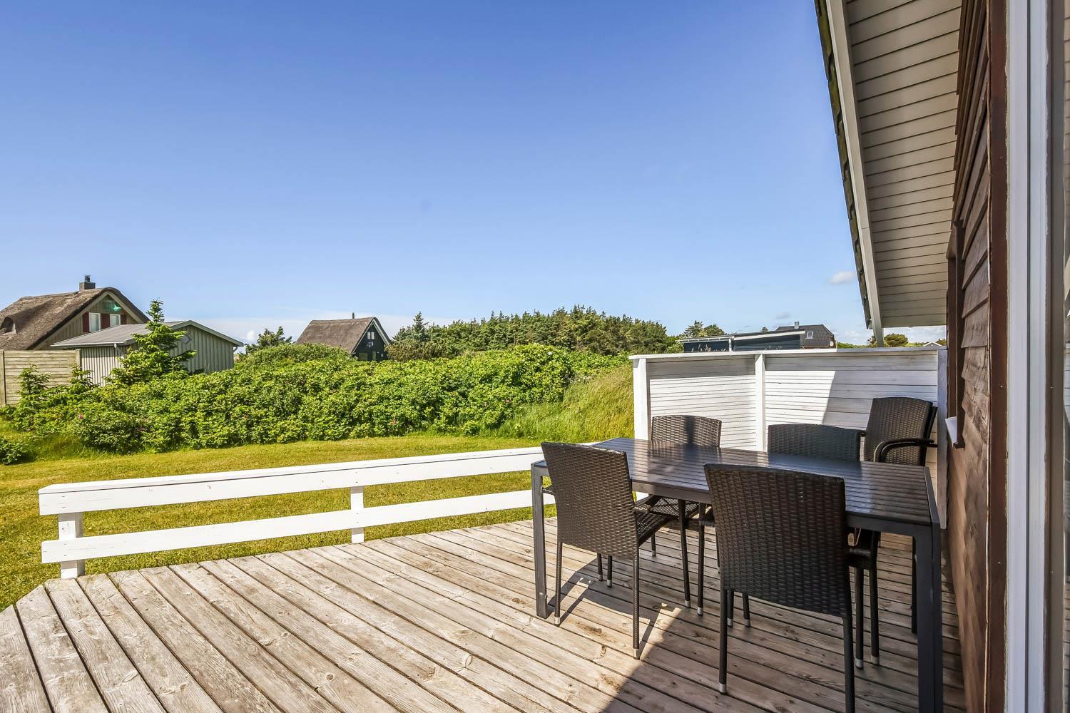 Terrassen er bland andet vestvendt og det gør at man kan nyde aftensolen på de mange sommeraftener. Her er ligeledes grill, havemøbler og 2 solvogne, så man behøver ikke bevæge sig langt for at komme ud at nyde Vesterhavsnaturen. Med 300 meter til havet og 2200 meter til Rema og Brugsen i Harboøre er beliggenheden gunstig for komfortabel tilgang til både natur, strandaktiviteter og de nødvendige indkøb, så I kan få mest mulig ud af ferien. Dette hus er absolut et godt valg for den store familie eller hvis man vil afsted 2 familier.