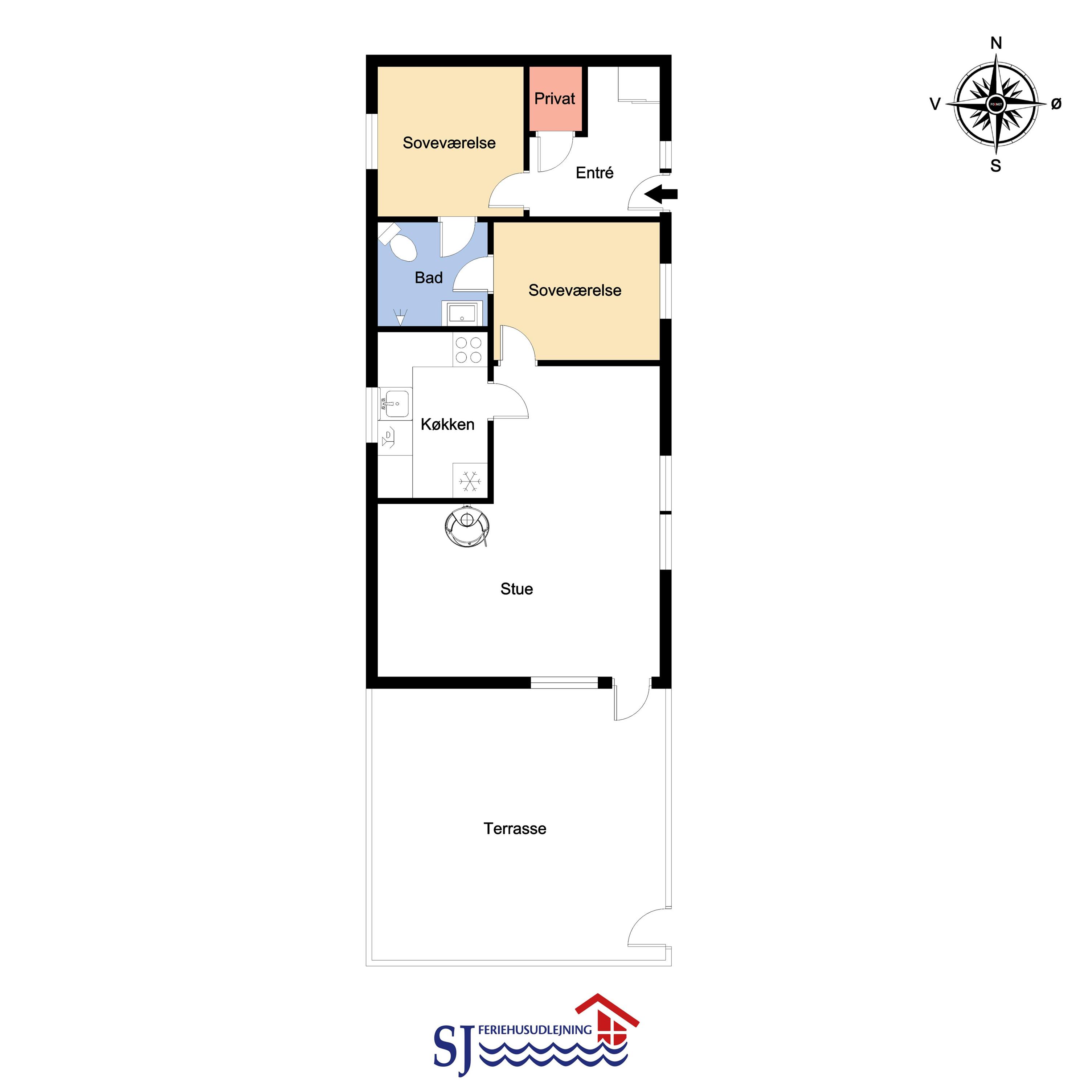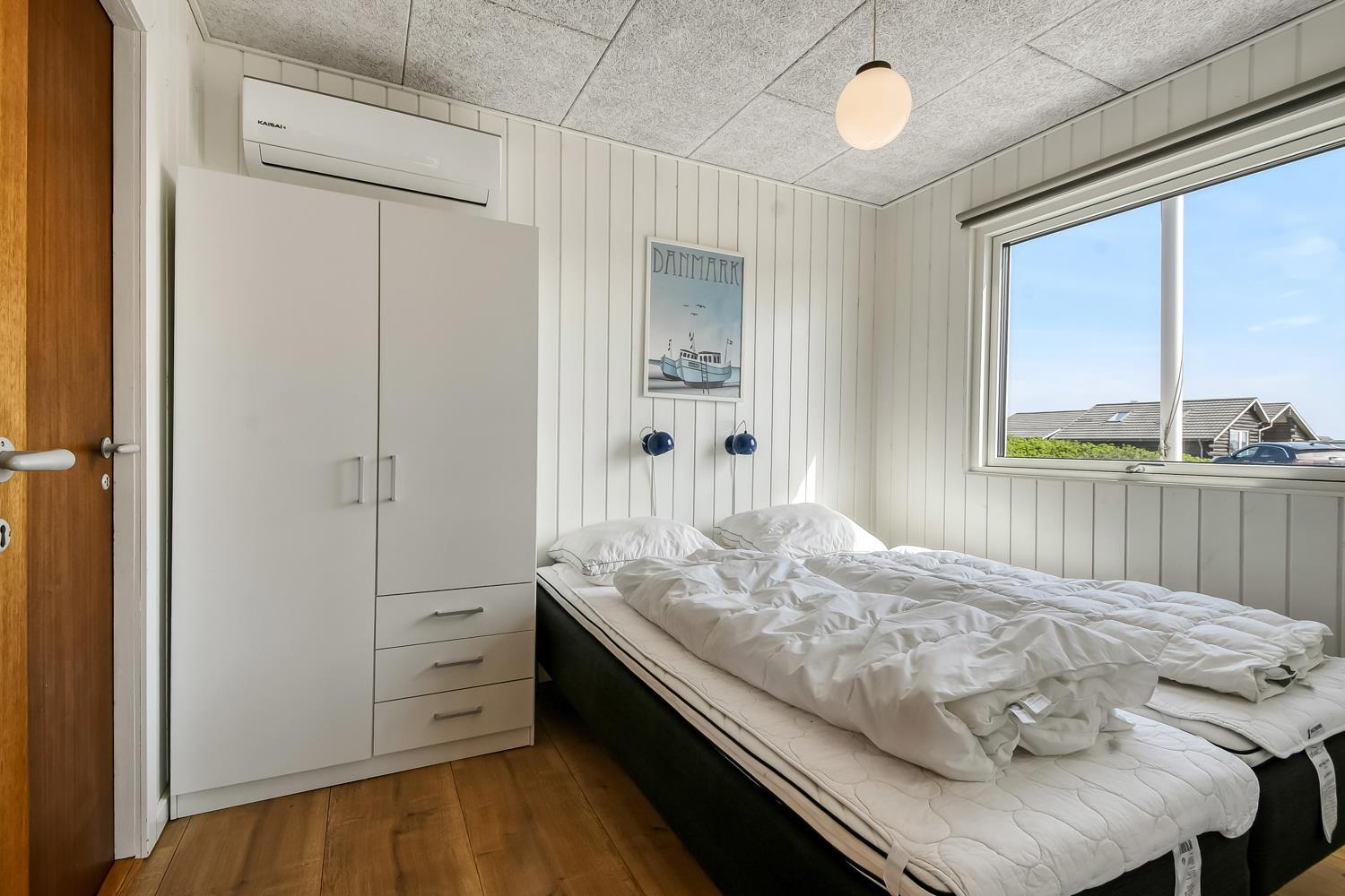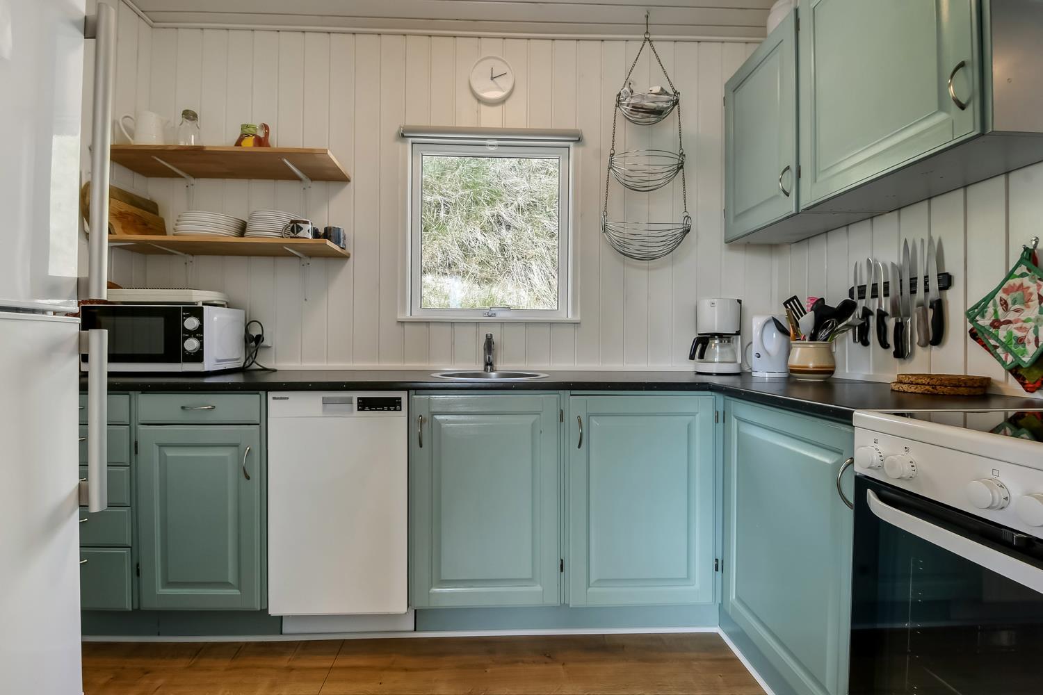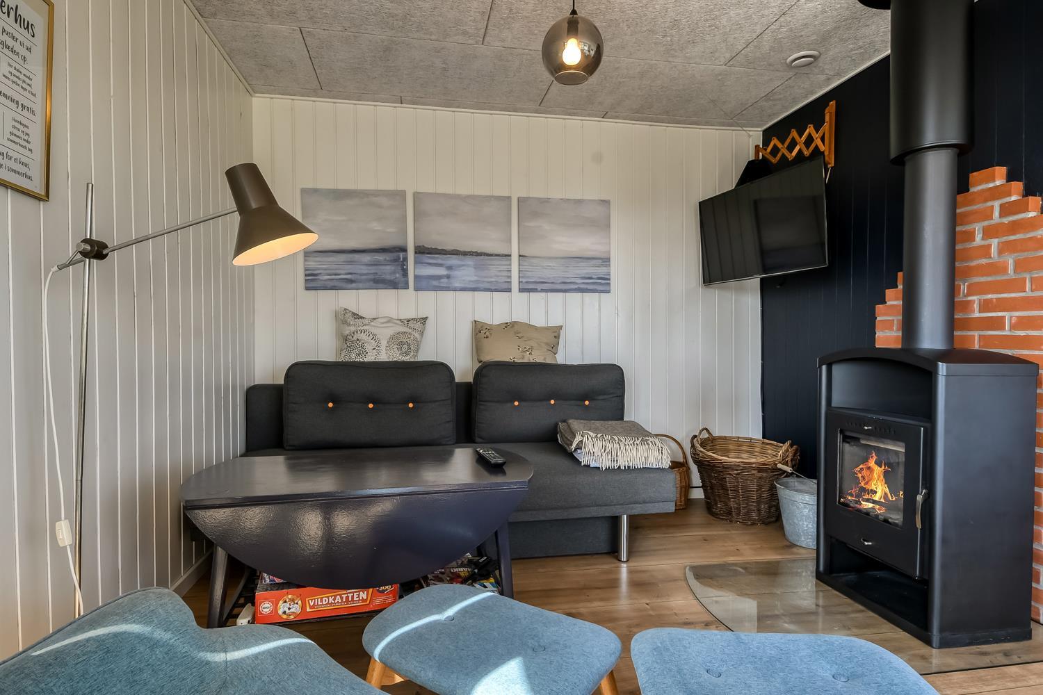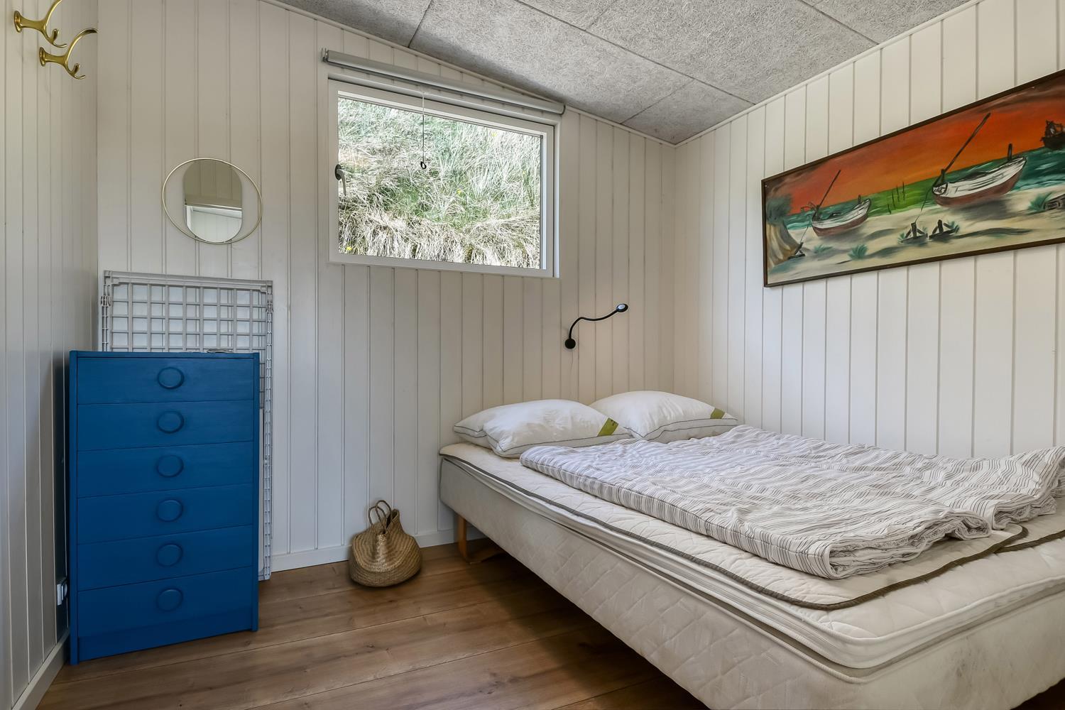 Mindre sommerhus på 60m2 med 2 soverum (1DS, 1Doppelt sovesofa). Opholdsstue lædermøbler, spiseplads, Smart-TV med danske og tyske programmer samt mulighed for streaming af TV / radio / Apps, apple-TV, radio, CD-afspiller, brændeovn samt udsigt til klitterne. Nyt Køkkenhjørne med komfur med glaskeramiske kogeplader, emhætte, mikroovn og køleskab. Badeværelse med bruser, toilet, håndvask, vaskemaskine og klinkegulv. Har man el-bil eller en Plug-In hybrid, så er der til huset et ladestik. Husdyr ikke tilladt.
