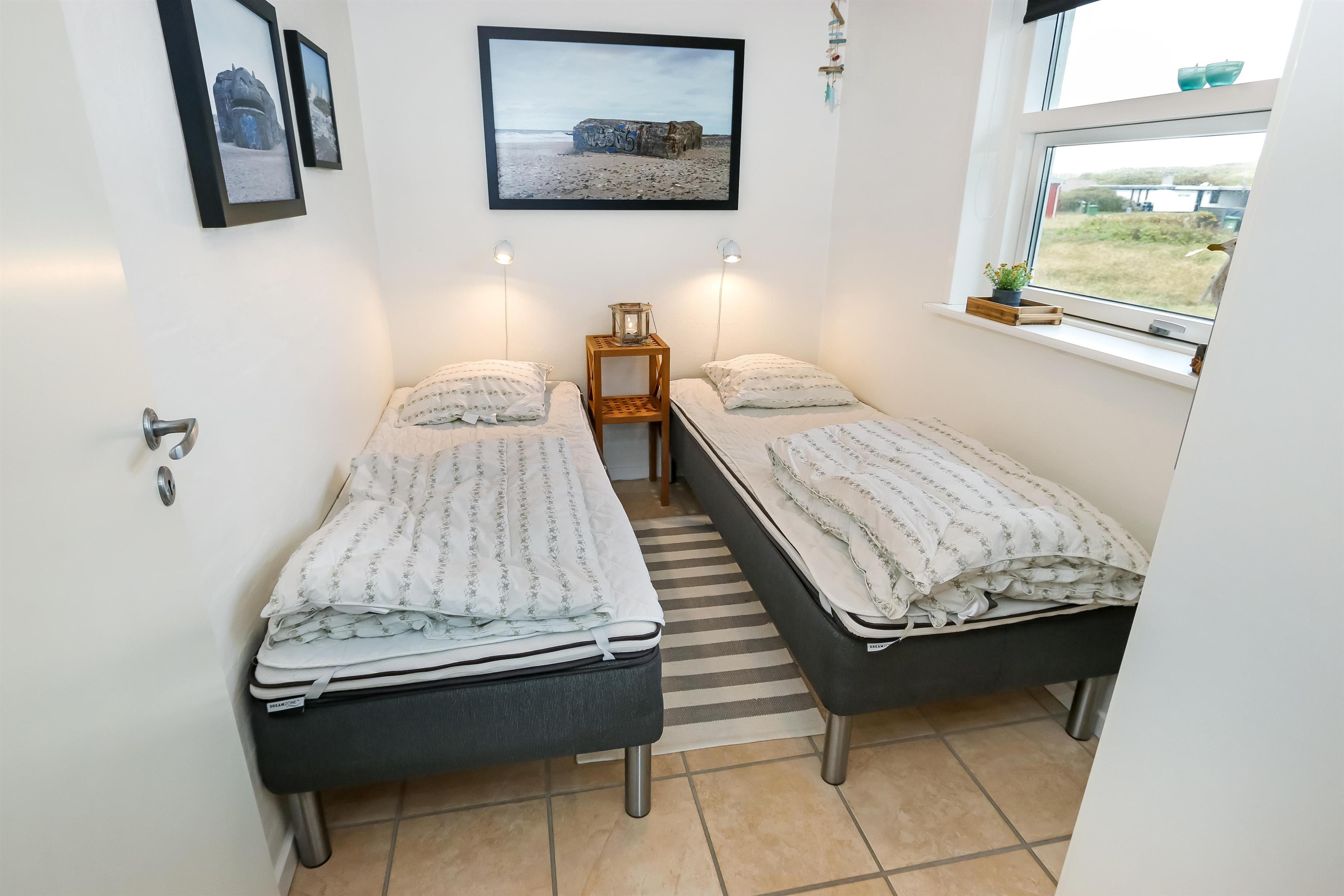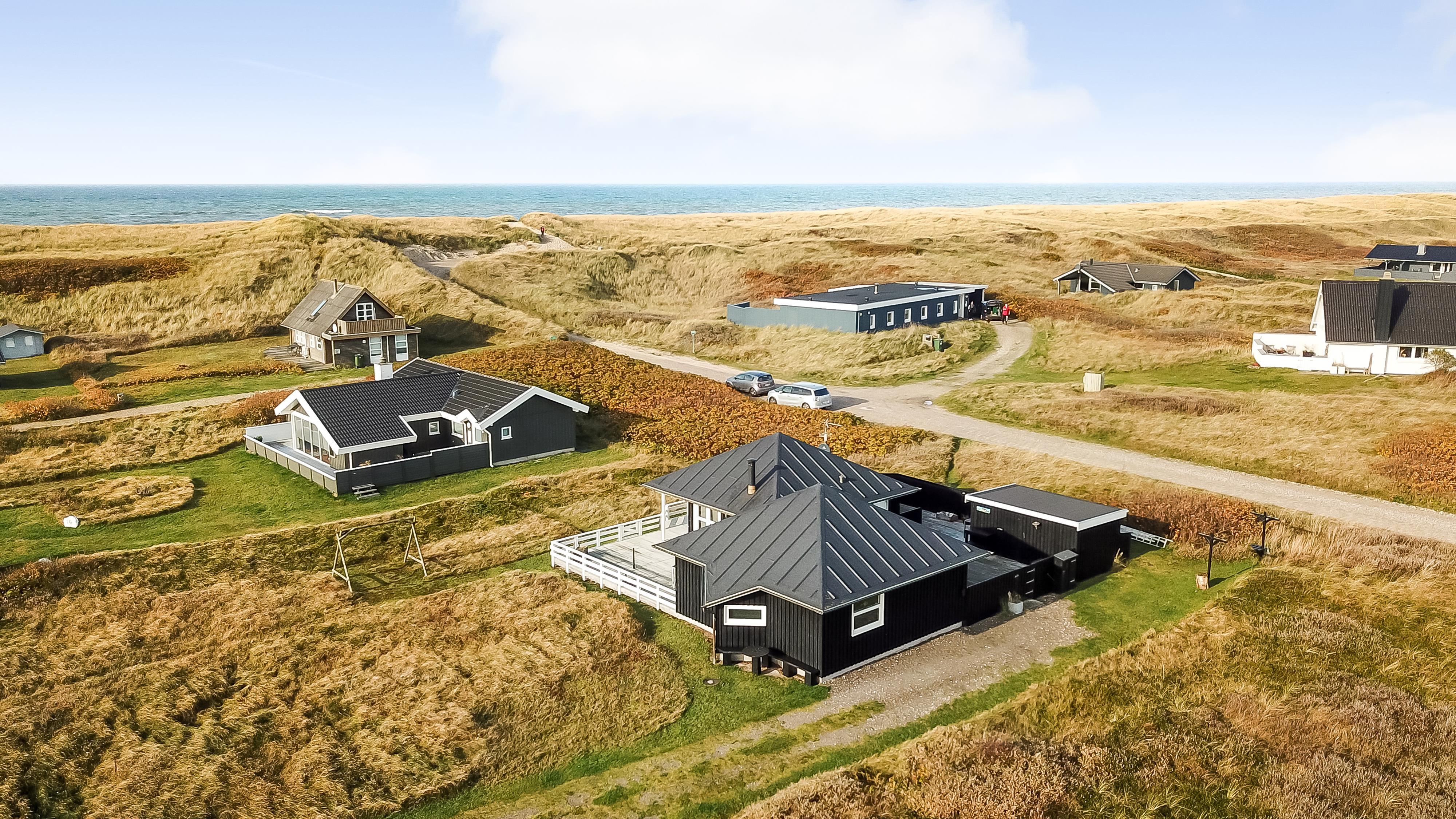 Unikt, arkitekttegnet feriehus til 4 personer fra 2005 med internet beliggende kun 150 m fra Vesterhavet. Det oplagte valg til det kvalitetsbevidste par eller familie som, ønsker høj kvalitet og et hus, som med sit særpræg ikke ligner de andre.