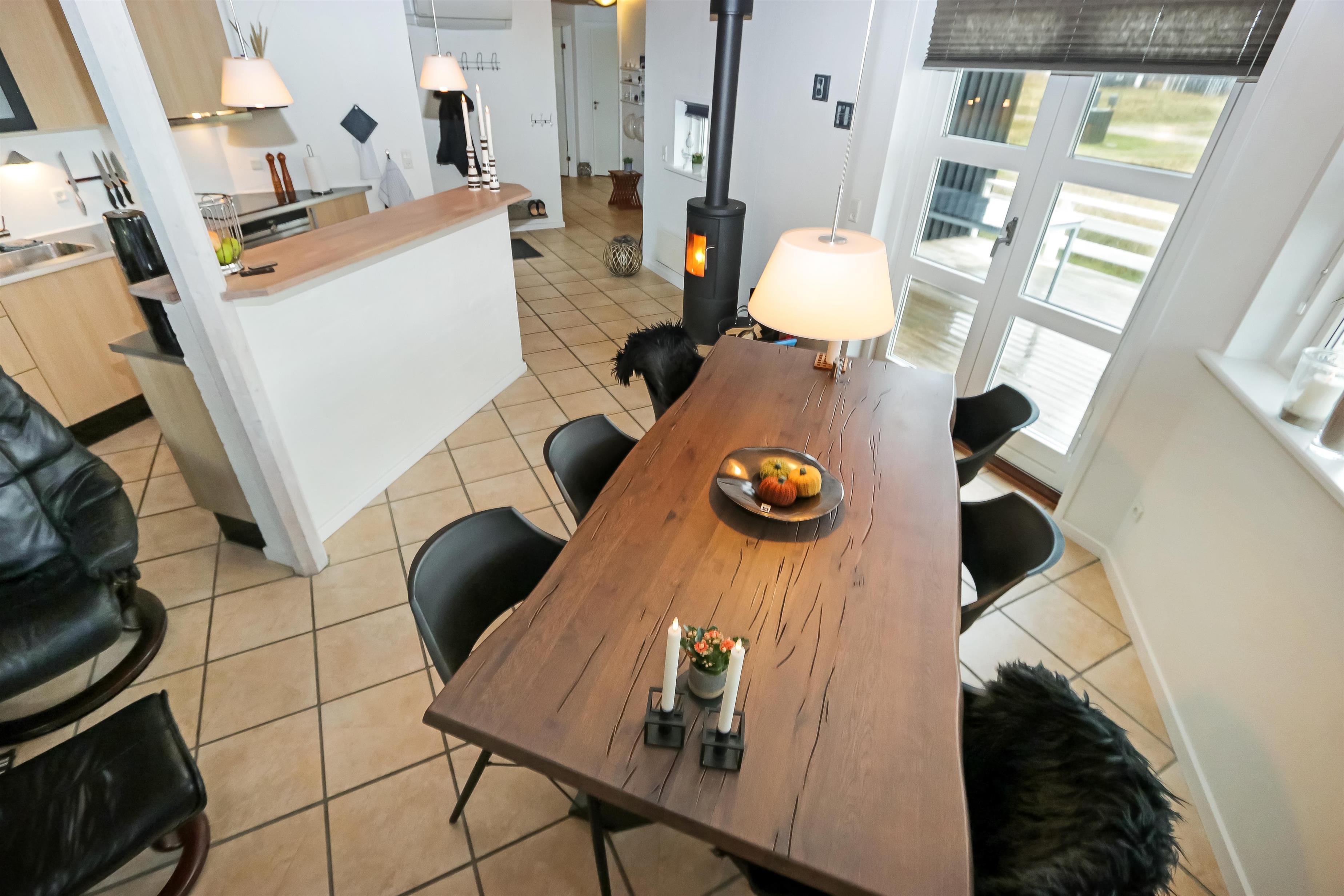 Flot indrettet feriehus på ca. 90 m2 med 2 lyse og venlige værelser (1DS, 2S). Huset er moderne indrettet og har et lækker, godt udstyret samtalekøkken med bl.a. opvaskemaskine, keramiske kogeplader, indbygningsovn, mikroovn og flot køle-fryseskab. Dejlig opholdsstue med lædermøbler, stort fladskærms-TV med både danske og tyske kanaler som samtidig fungere som det perfekte infotainmentsystem med soundbar og mulighed for afspilning af både CD og DVD samt radiokanaler. Super badeværelse med gulvvarme, spabad, bruseniche og toilet. Det er naturligvis også et ekstra badeværelse med bruseniche, toilet, håndvask og gulvvarme. Lille, separat rum med vaskemaskine og tørretumbler. Udhus med grill, legetøj til børnene, det perfekte afsætningsrum. Der må ikke ryges eller komme husdyr i huset. Benyt den opsatte varmepumpe som sammen med brændeovnen sørger for prisvenlig opvarmning og for, at man aldrig fryser på de kølige aftener. Har man el-bil eller en Plug-In hybrid, så er der ved Ladeboks til Type 2 ladestik, der kan lade op til 11 kWh.