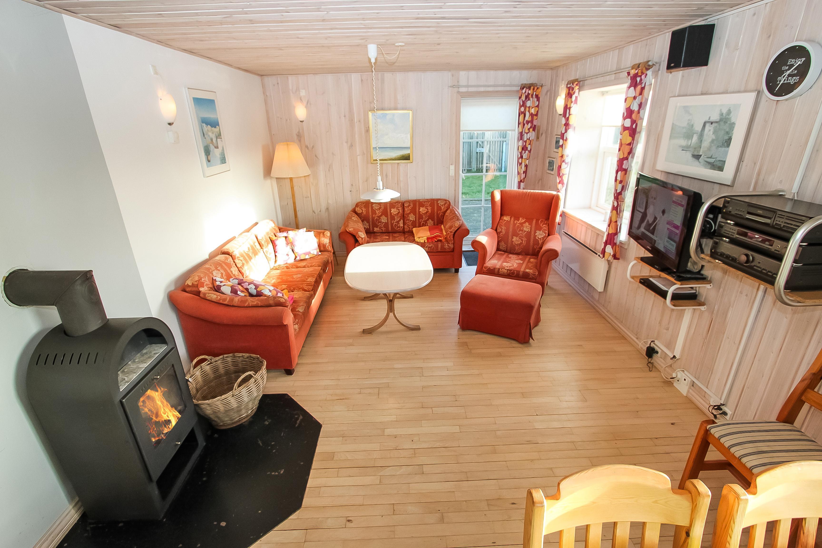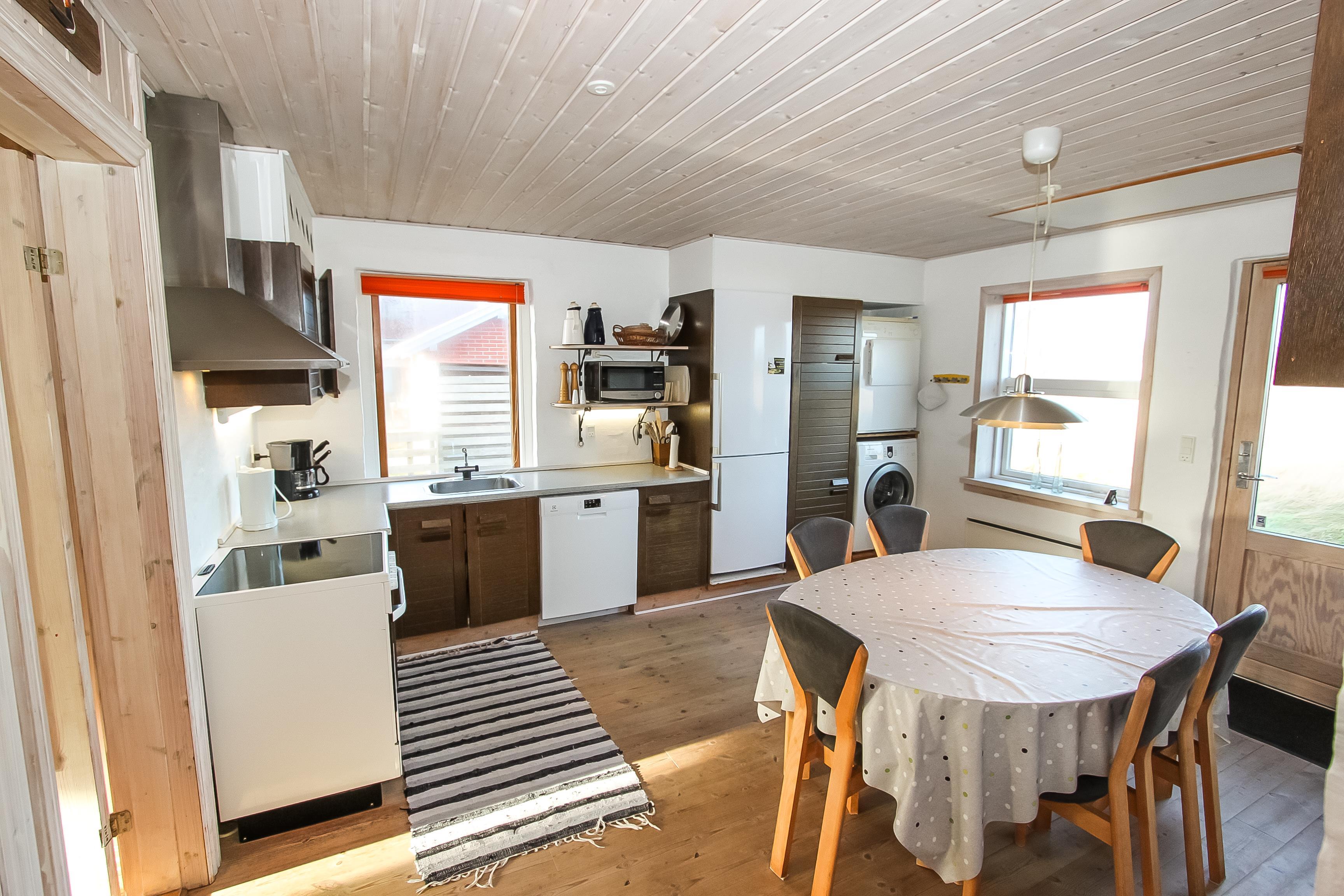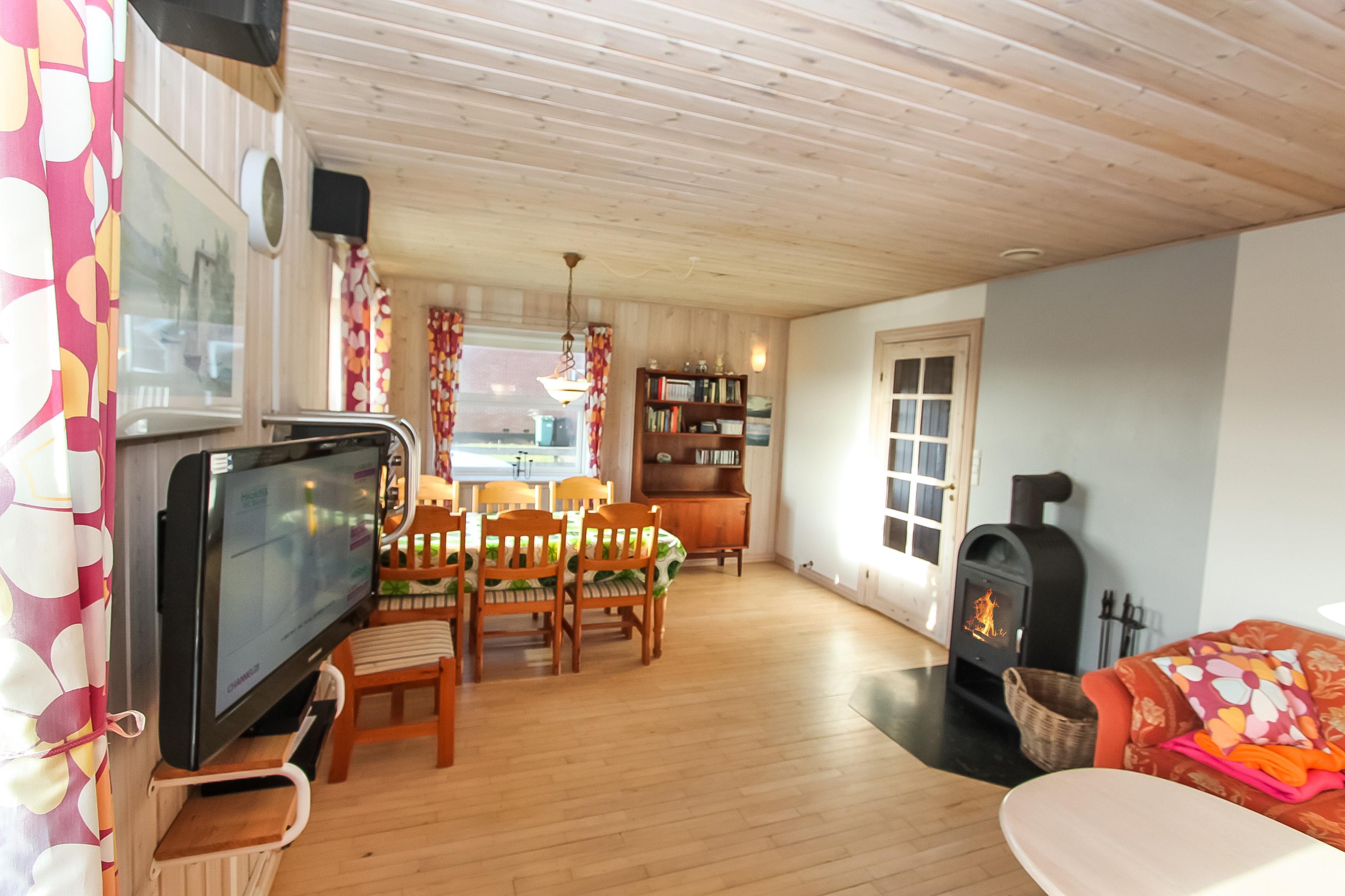 Dejligt sten på 111 m2 som er flot renoveret i 2014. 3 gode soverum (1DS, 1DS, 1DS). Alle soverum har eget TV med DVD og god opbevaringsplads. Opholdsstue med polstermøbler, TV danske og tyske programmer, DVD / CD / radio, spisebord og brændeovn til ekstra hygge på kolde aftener. Hyggeligt køkken med spiseplads, glaskeramisk komfur, emhætte, mikroovn, opvaskemaskine, køleskab med fryseboks, masser af service køkkengrej og vaskesøjle med vaskemaskine og tørretumbler. Hele huset har praktiske hårde gulve. Dejligt badeværelse med klinkegulv med gulvvarme, toilet, håndvask og spabad. Ekstra badeværelse ligeledes med klinkegulv med gulvvarme, bruser, håndvask og toilet. Entré med aflægge- og afhængeplads til både tøj og fodtøj m.m. Barneseng og højstol til børnene. Ikke Ryger hus. Max 1 husdyr tilladt.