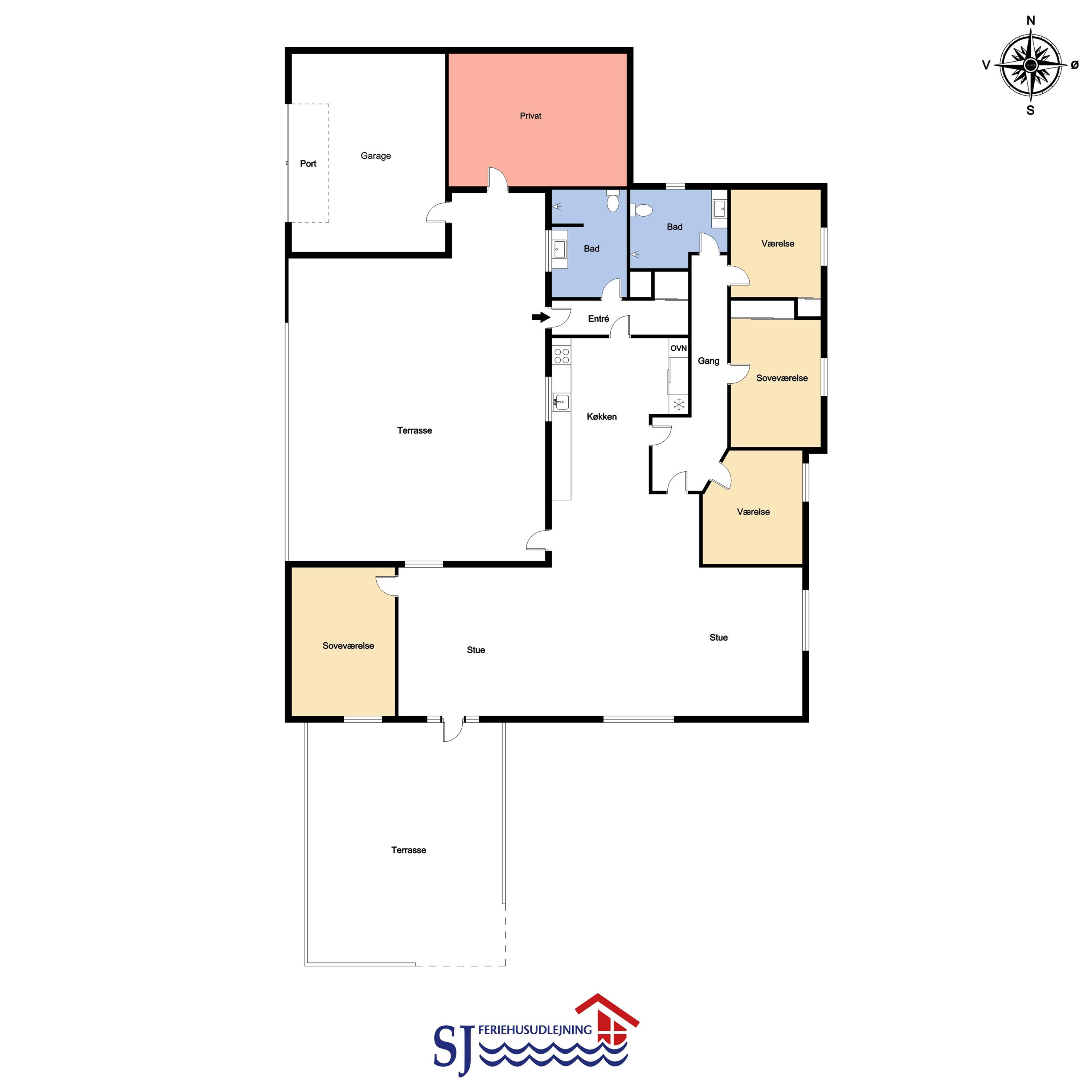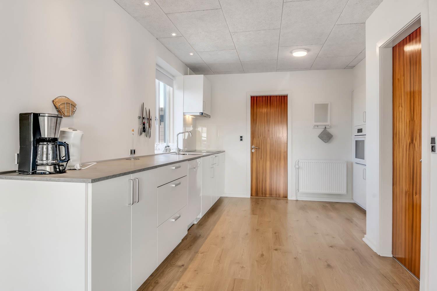 Feriehus på 145 m2. Huset er bygget i 1967 – men er i 2021 blevet totalt istandsat. Huset er minimalistisk i sit udtryk og praktisk indrettet. Entrè med ekstra afliggeplads byder velkommen. Kombineret opholdsstue og køkkenhjørne som er holdt i lyse og venlige farver. Opholdsstuen med, nye lækre lædermøbler, spisebord, Smart-TV med danske og tyske programmer samt mulighed for streaming af TV / radio / Apps samt billardbord. Ideelt til aktivitet hen over hele dagen. Varmepumpen hjælper med at reducere udgiften til varmeregningen. Praktiske og rengøringsvenlige hårde gulve i hele huset. 4 gode soverum med gode nye senge (1DS, 1DS, 1DS, 1DS). Helt nyt og lækkert køkkenhjørne med alt i service / køkkengrej samt komfur med glaskeramiske kogeplader, emhætte, opvaskemaskine, køleskab og mikroovn. Flot, nyt badeværelse klinkegulv med gulvvarme, toilet, håndvask, bruser samt vaskemaskine og tørretumbler. Ekstra badeværelse med klinkegulv med gulvvarme, toilet, håndvask og bruser. Fryser i udehus. Ikke ryger hus. Husdyr ikke tilladt.