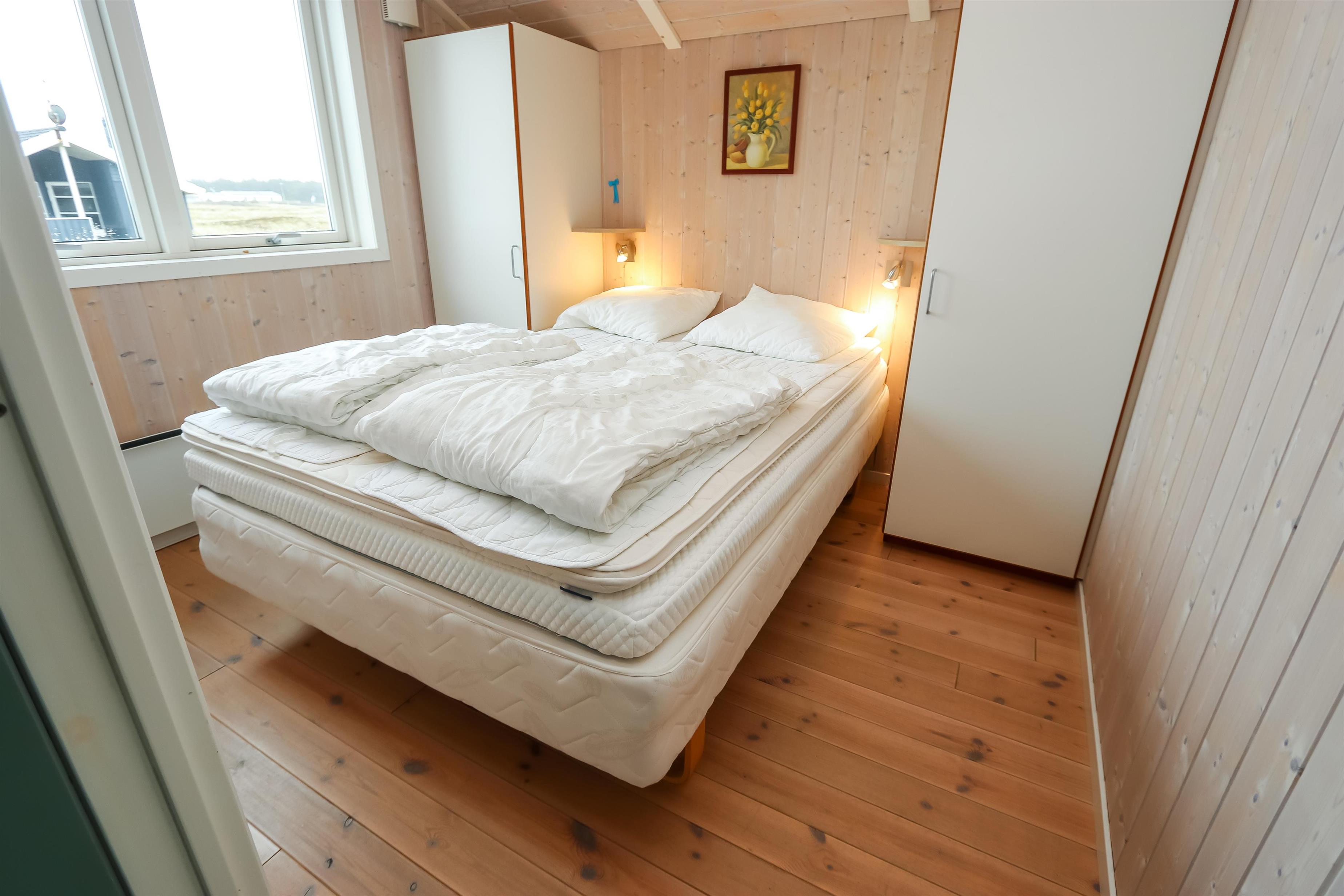 Godt feriehus på 99 m2 bygget i 2005 og løbende renoveret. Der er 3 soverum i huset (1DS, 1ES, 2ES). Desuden er der en hems, hvor der er 2 sovemuligheder. Husets stue er indrettet med lædermøbler af god kvalitet og indeholder desuden TV med danske og tyske programmer, DVD og CD-afspiller samt trægulv. Husets brændeovn og varmepumpe er medvirkende til at forbrugsomkostninger er lavere. Dejlig køkken med glaskeramisk komfur, opvaskemaskine, emhætte, mikroovn og køle-/fryseskab. Gulvet i køkkenafdelingen er linoleum. Der er 2 badeværelser i huset. Det ene badeværelse er med toilet, håndvask, bruser, spa og adgang til sauna. Det andet badeværelse er med toilet og håndvask. Der forefindes vaskemaskine og tørretumbler. Har man el-bil eller en Plug-In hybrid, så er der Ladeboks ved huset. Huset er et ikke ryger hus og husdyr er ikke tilladt.