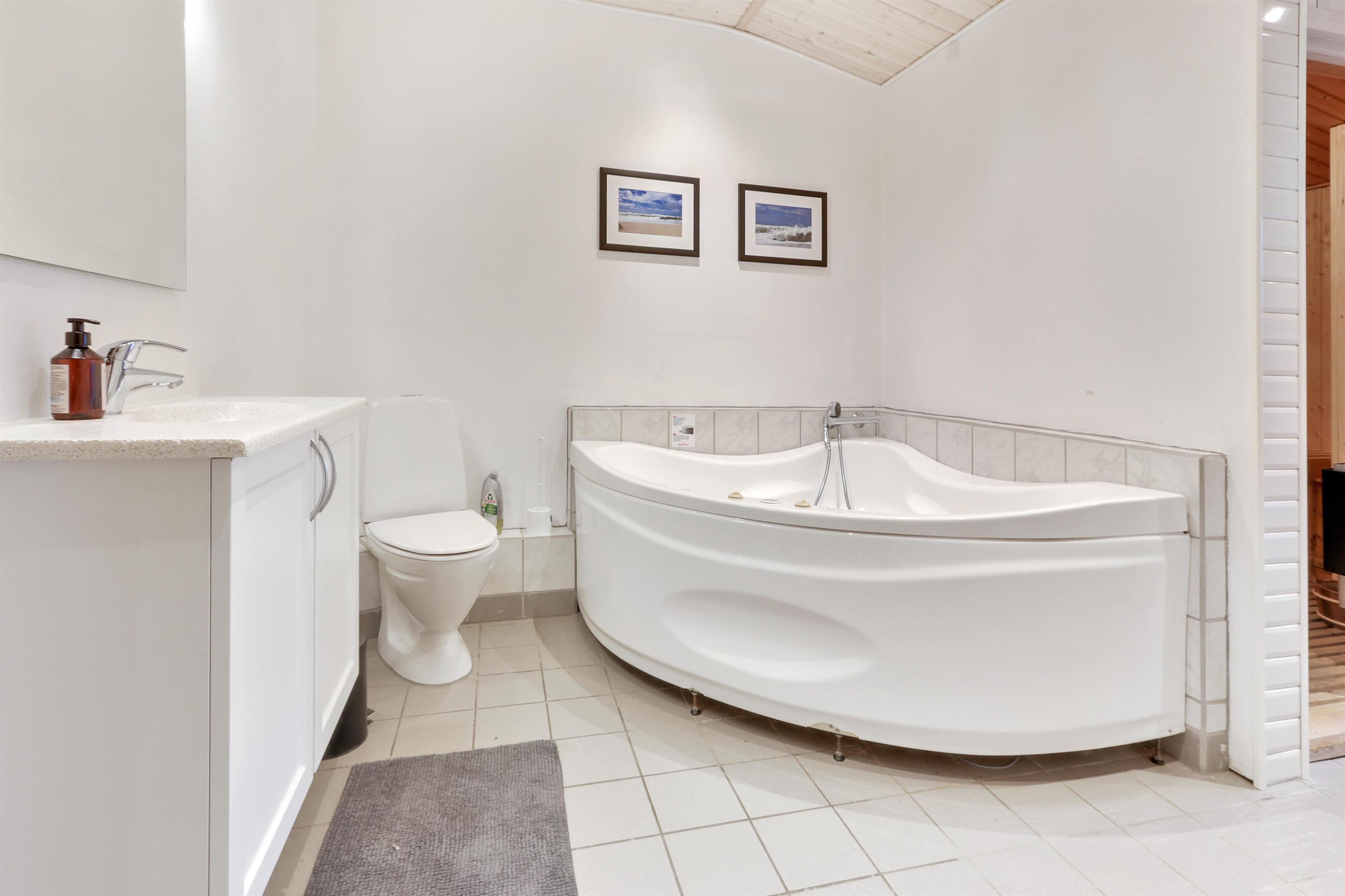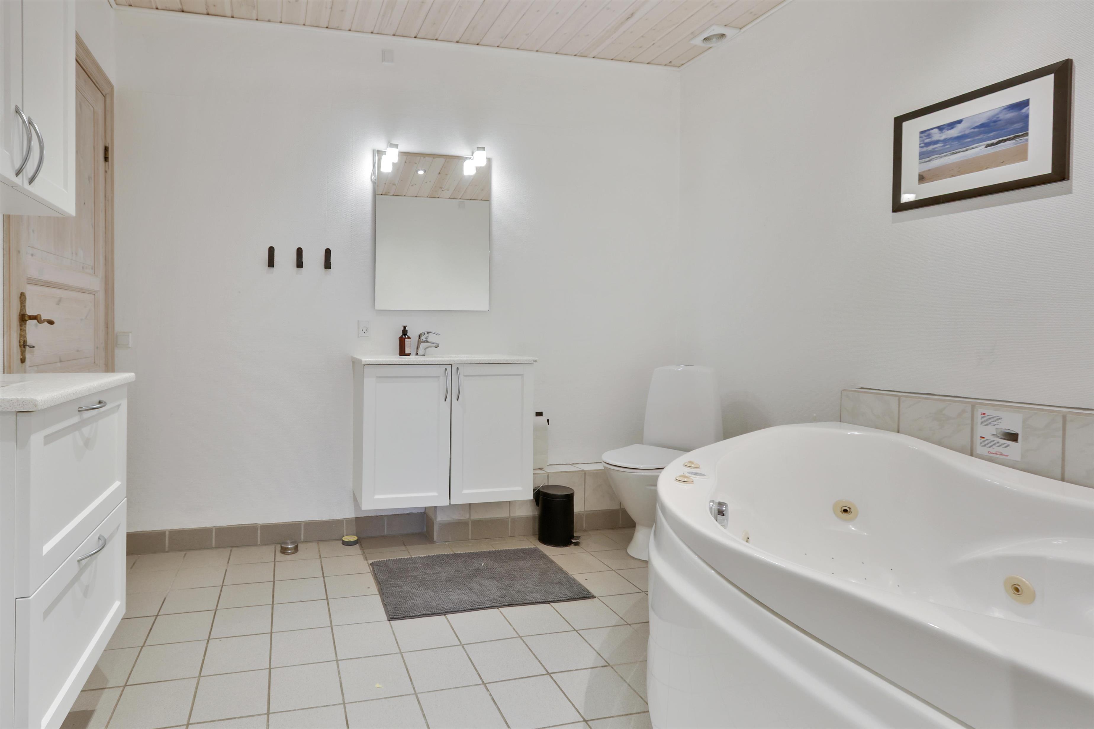 Huset har to badeværelser, hvoraf det ene er indrettet som en lækker wellnessafdeling med både jacuzzi og sauna – perfekt efter en lang dag ved stranden eller i den friske vestenvind. Der er fibernet og gode vaskefaciliteter. Huset er et ikke-rygerhus, og ét husdyr er tilladt.