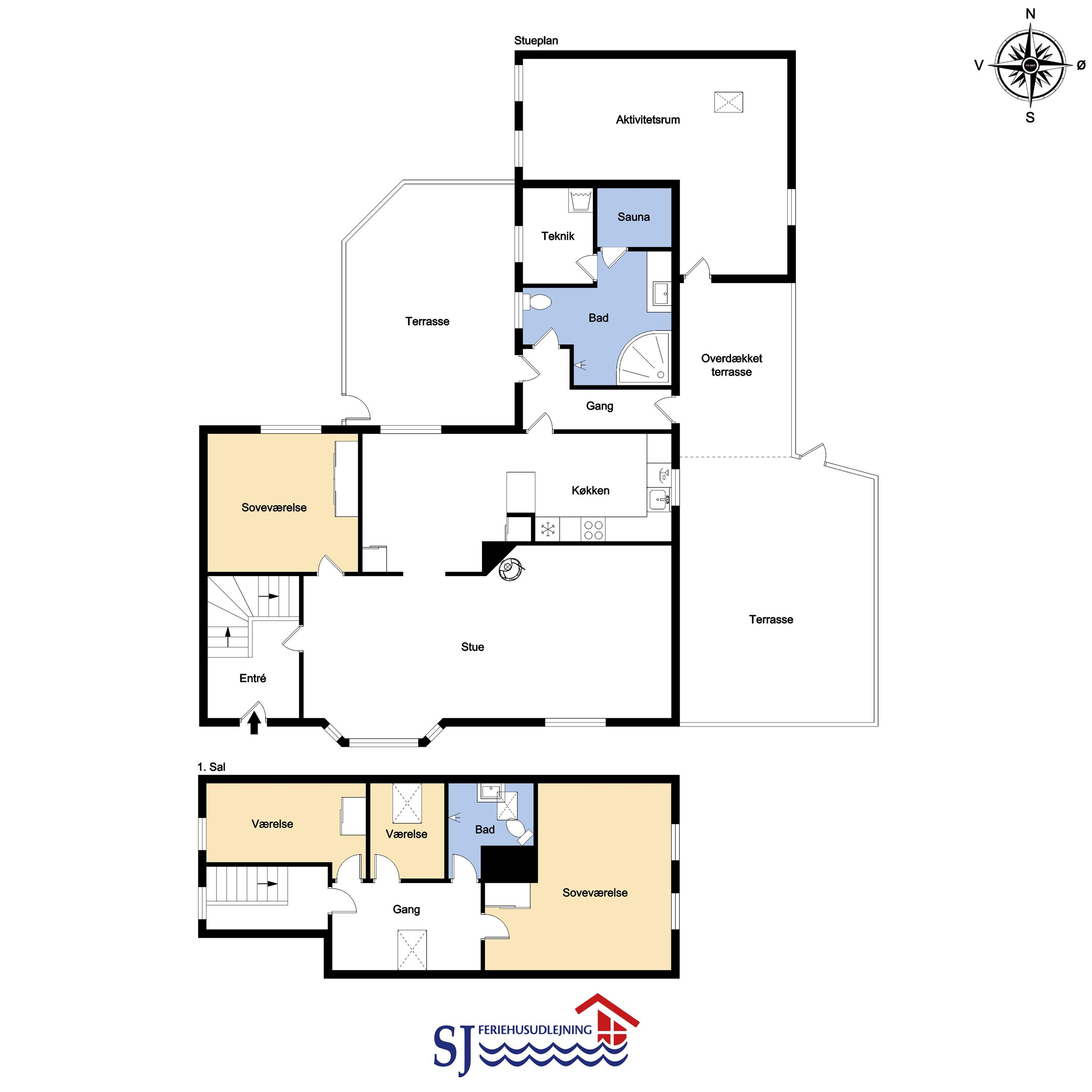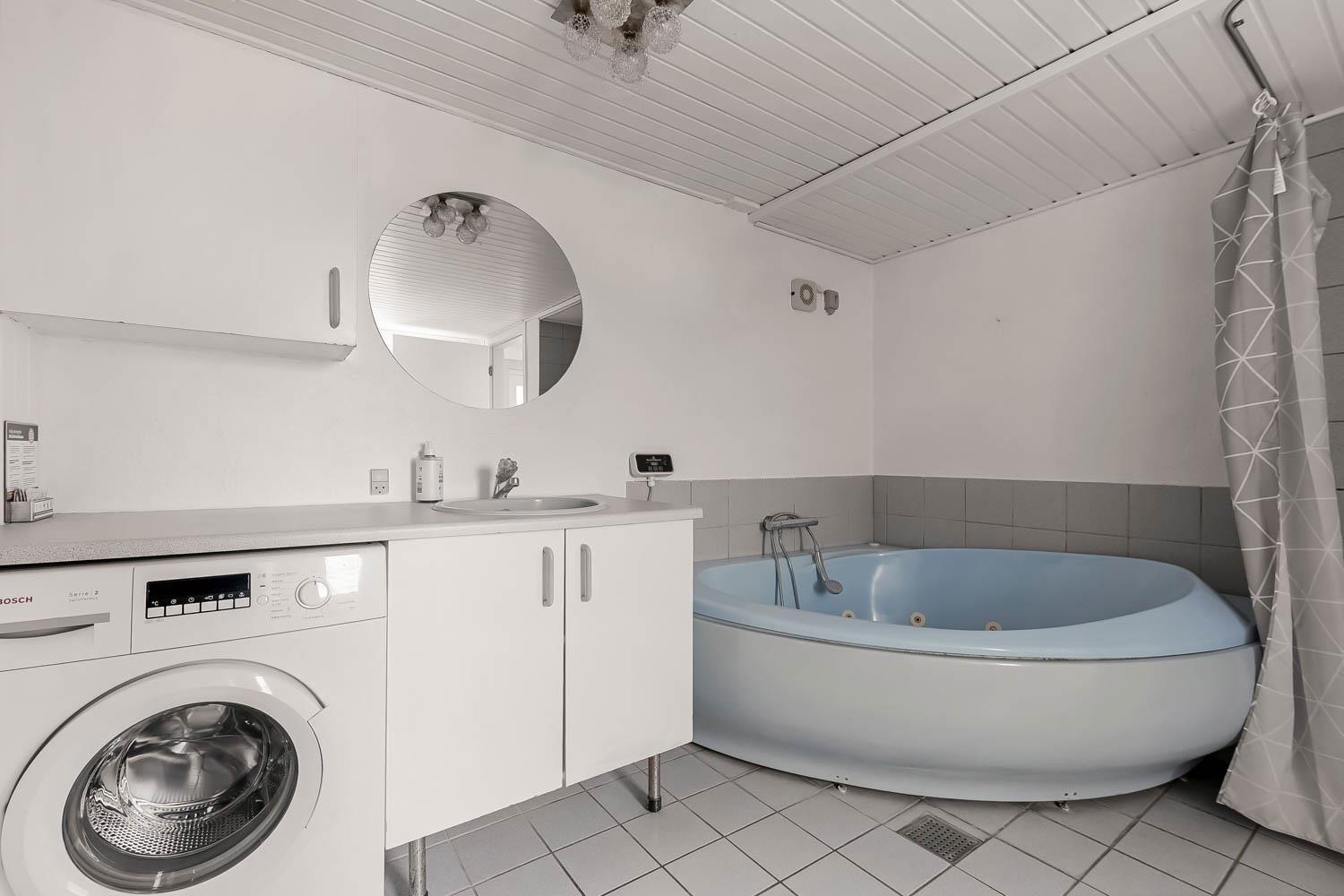 Pænt og praktisk indrettet 2 etagers stenhus som er delvis renoveret i 2022. I gangen er der adgang til husets badeværelse som er pænt indrettet med toilet, håndvask, bruser, spabad og adgang til sauna. Køkkenet som ligger på den anden side ad gangen er indrettet med en spiseafdeling i den ene ende. Køkkenet er med glaskeramisk komfur, køle-/fryseskab, opvaskemaskine og mikroovn. Fra køkkenet er der indgang til husets stue som er pænt indrettet med lædermøbler, F-TV med danske og tyske kanaler fra fiber, CD og radio. Dejlig brændeovn til træpiller, kan købes ved huset samt økonomisk varmepumpe, som sammen sørger for hygge, samt muliggør et altid varmt og rart hus, uanset vejr og årstid. I stuen er der også et spisebord med stole, Fra stuen er der indgang til et soveværelse med 1 DS, ligeledes er der udgang til en gang hvor trappen op til 1. sal er. På 1. sal er der en lille fordeler gang, hvor der er adgang til 3 soveværelser: 1DS + 2S + 1E. Der er desuden et ekstra badeværelse på 1. sal med toilet, håndvask og bruser. Ekstra rum med bordtennis. Ikke rygerhus. 1 hund er tilladt.