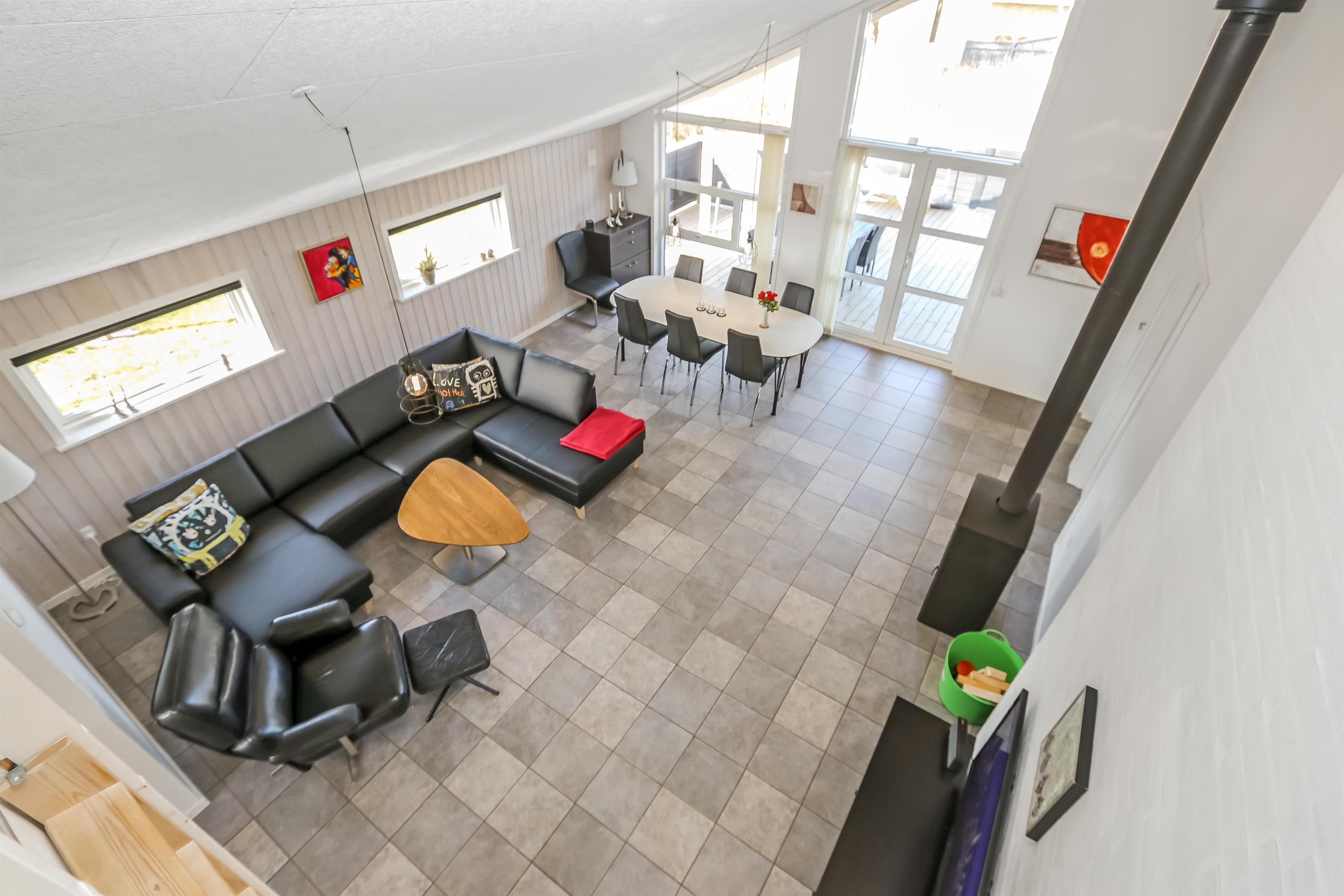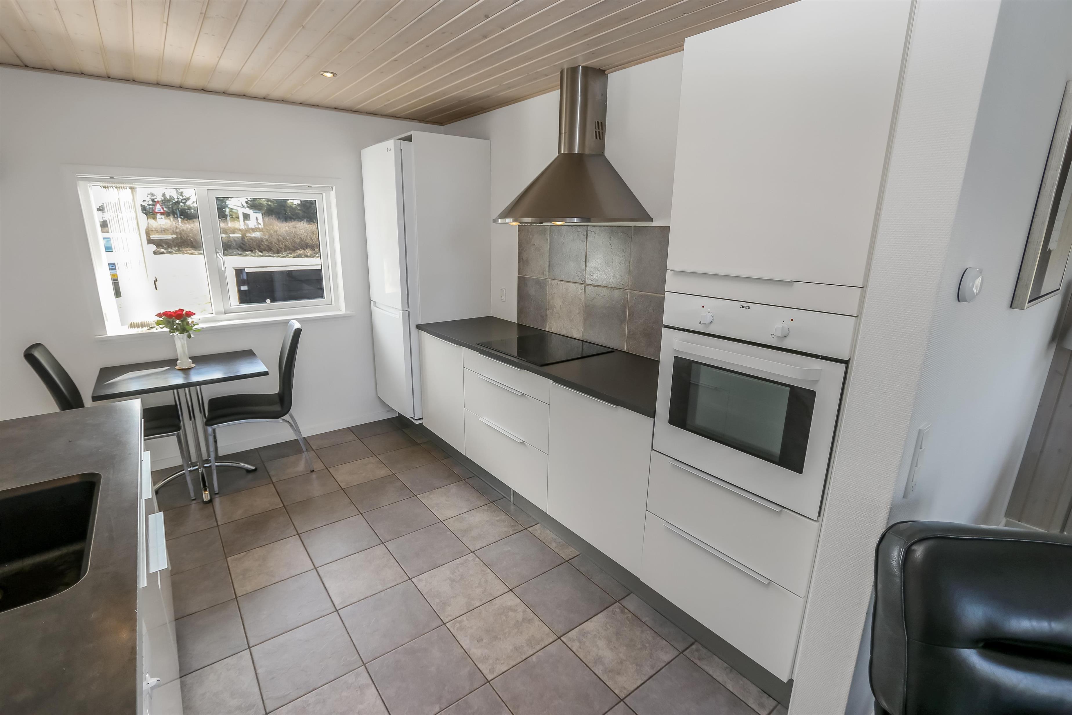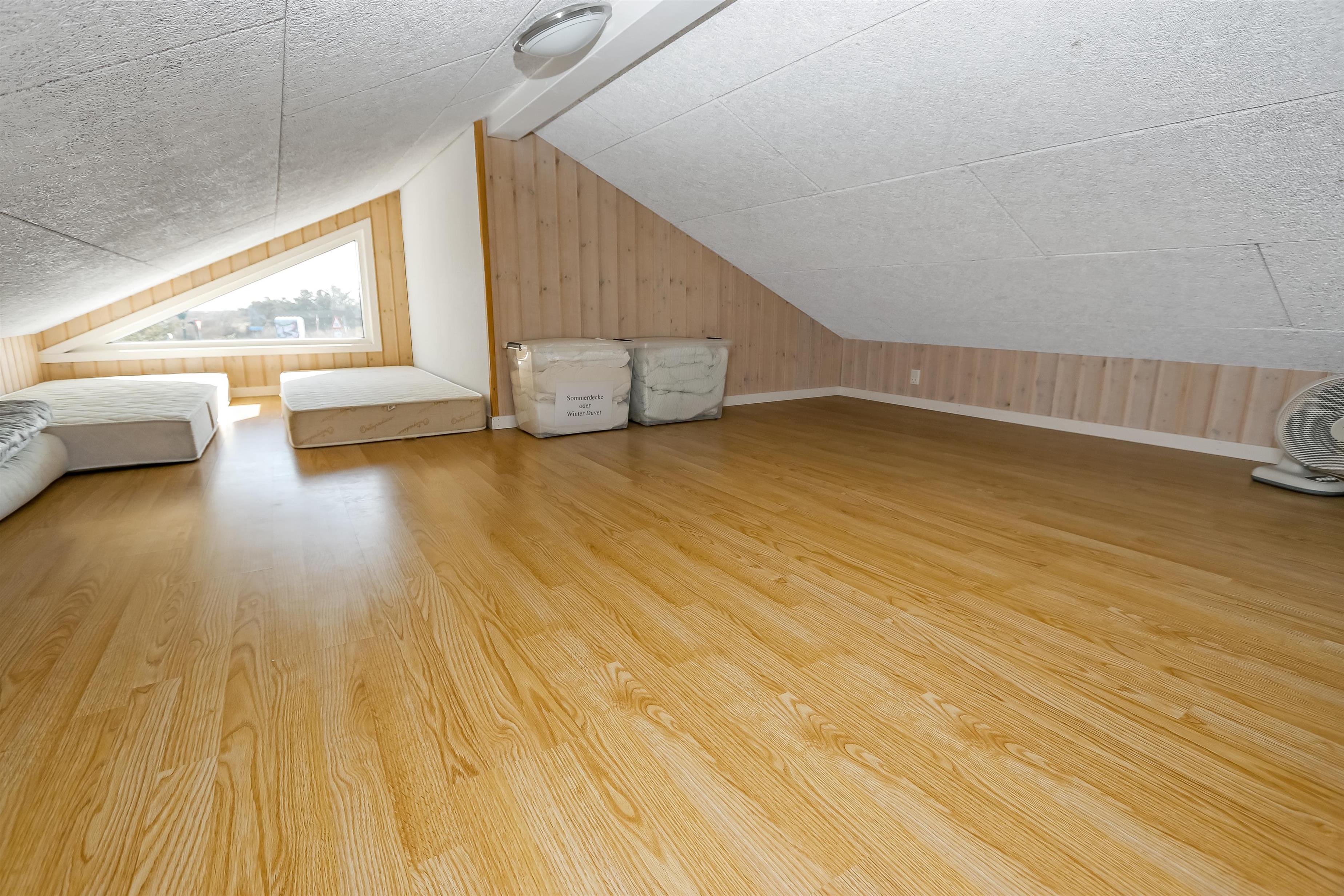 Huset er bygget i 2011, lavet i træ og lever op til hvad man forventer af et moderne sommerhus. Her er 2 store soveværelser med skabsplads, et værelse med 2 enkeltsenge, samt en stor hems, hvor der er 2 sove muligheder. Herudover er der også en barneseng og en barnestol i huset, samt mulighed for at sætte sikkerheds gitter op omkring brændeovnen. Der er behagelig gulvvarme i hele huset. Der er 1 badeværelse og 1 gæstetoilet. På det store badeværelse, er der spabad, sauna, bruseniche, håndvask og toilet. Lige ved siden af, er det lille gæstetoilet med håndvask, toilet samt vaskemaskine og tørretumbler. Opholdsrummet er med køkken, spisestue og stue, som er indrettet i et stort rum, med pænt møblement. Her er også husets brændeovn, som giver god varme og hygge når det er lidt køligere. Køkkenet er veludstyret med køkkengrej og service og har en moderne ø, som gør det til en nemt samtale køkken. Der er blandt andet også glaskeramisk/induktions kogeplader, mikroovn, indbygnings ovn, opvaskemaskine, køleskab og separat fryser på 107 liter. Spisestue afdelingen er med spisebord og stole. Stuen har en dejlig stor sofagruppe og Tv. Se tv på dansk og tysk eller stream din ynglings serie via husets Cromecast. Derudover er der en bluetooth-højtaler, CD og DVD afspiller. På værelserne er der box madrasser med topmadrasser, samt sengetæpper. På alle værelserne er der skabe til tøj. Huset opvarmes med en elvarmepumpe. Dette gør at huset er meget energivenligt og halverer varmeudgiften i forhold til et konventionelt sommerhus. Har man el-bil eller en Plug-In hybrid, så er der Ladeboks ved huset til Type 2 ladestik, der kan lade op til 11 kWh.
